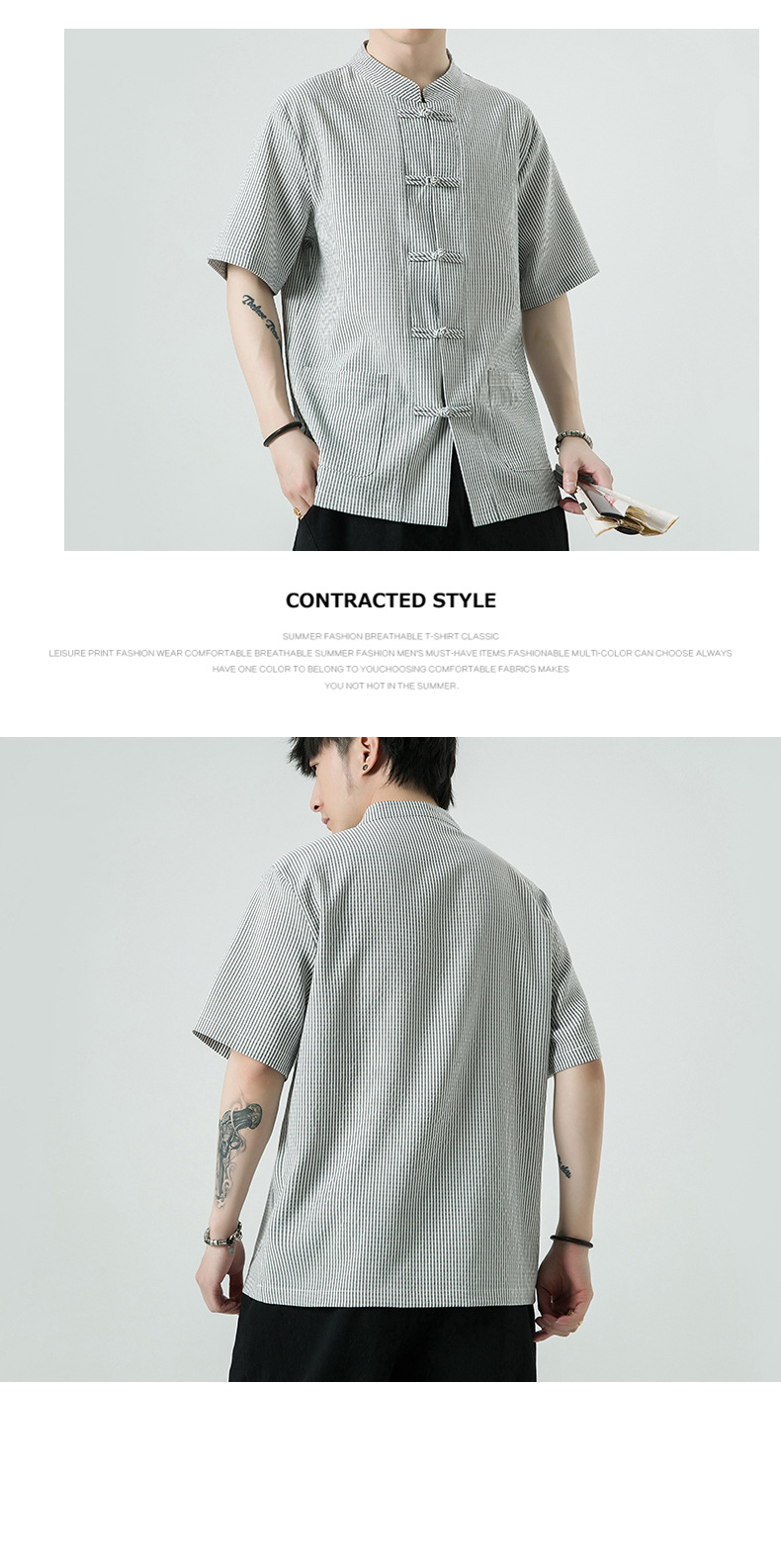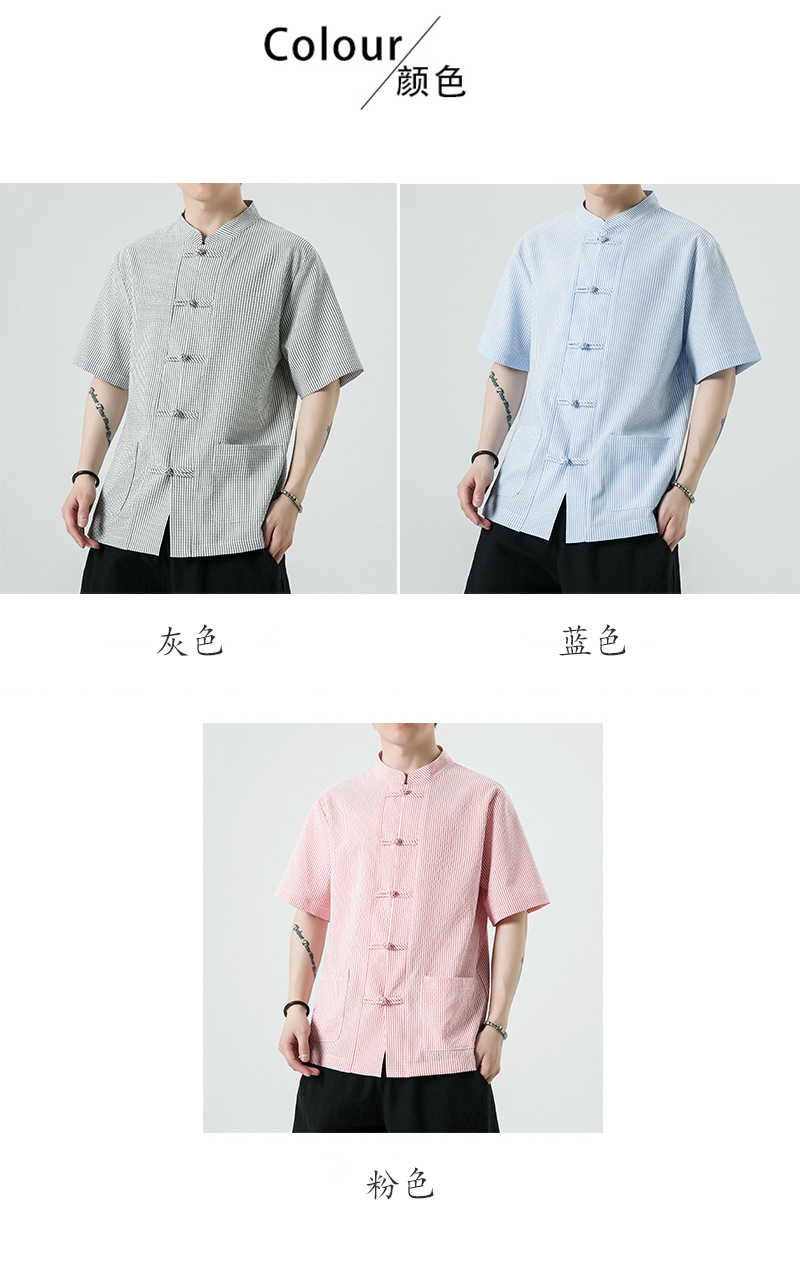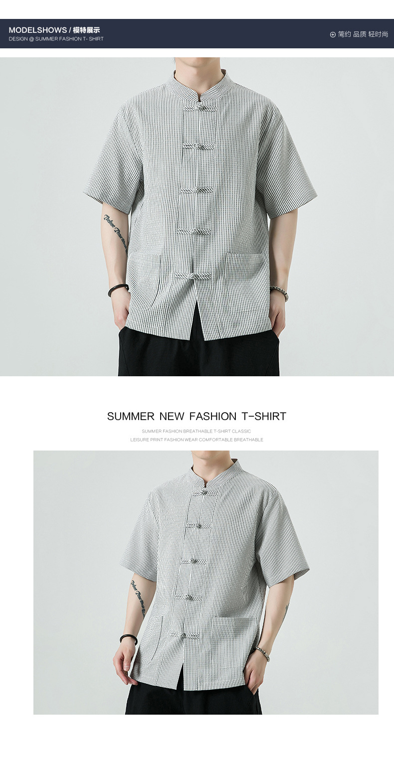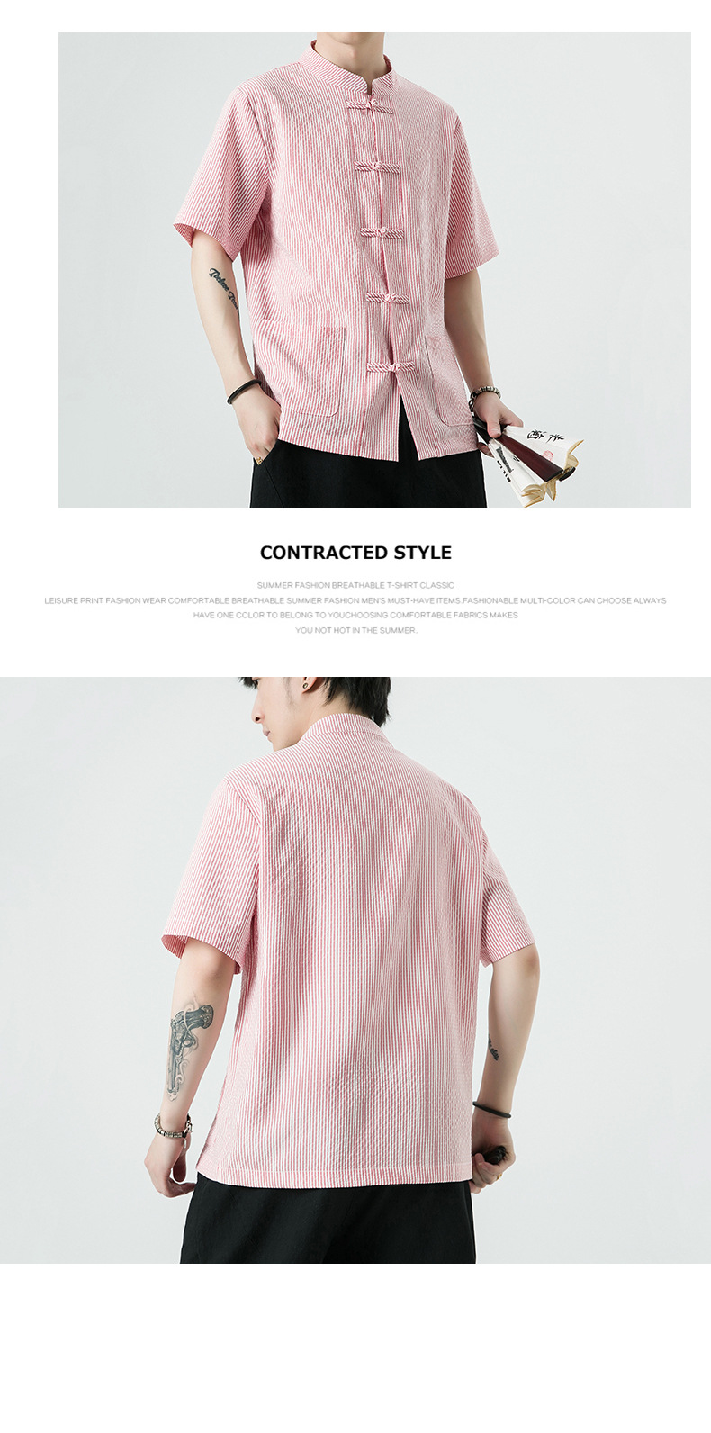 2023 여름 중국 스타일 코튼 리넨 스트라이프 반팔 셔츠 남자 일본식 플러스 사이즈 버튼 중국 당나라 원피스 셔츠스토어 가기