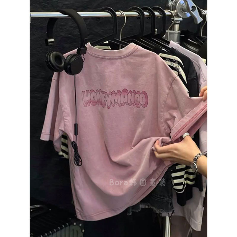 소년 반팔 티셔츠 2025 새로운 여름 어린이 트렌디 브랜드 프라이드 스트리트 티셔츠 빅 아동복 핑크 코튼 톱 6스토어 가기