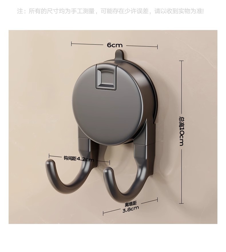 • 흡착식 더블 후크 - 건메탈 그레이 [3개입]