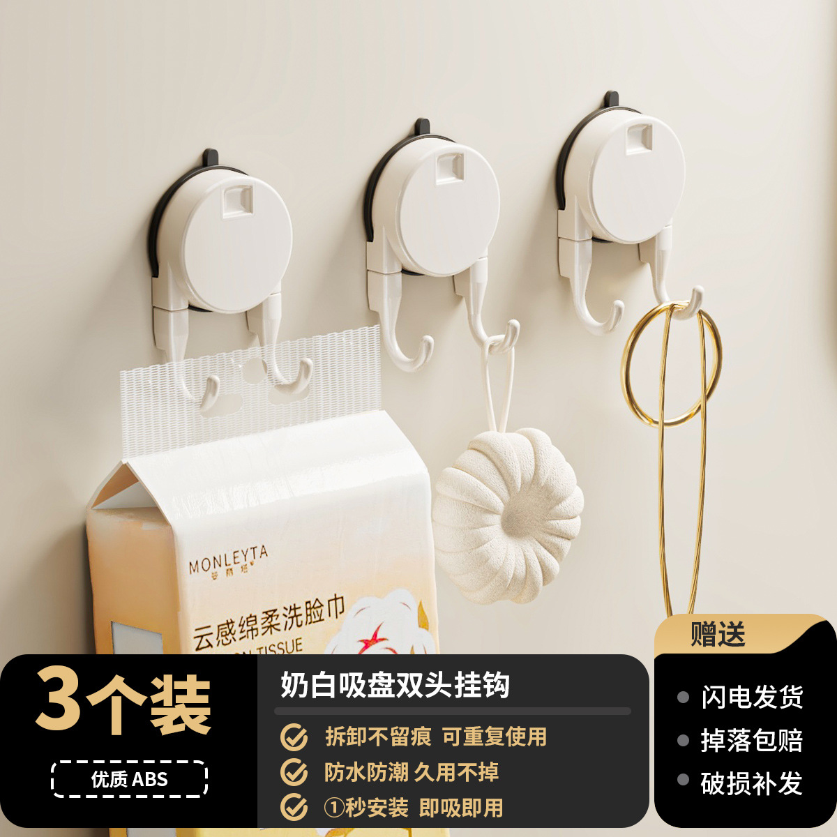 • 흡착식 더블 후크 - 밀크 화이트 [3개입]