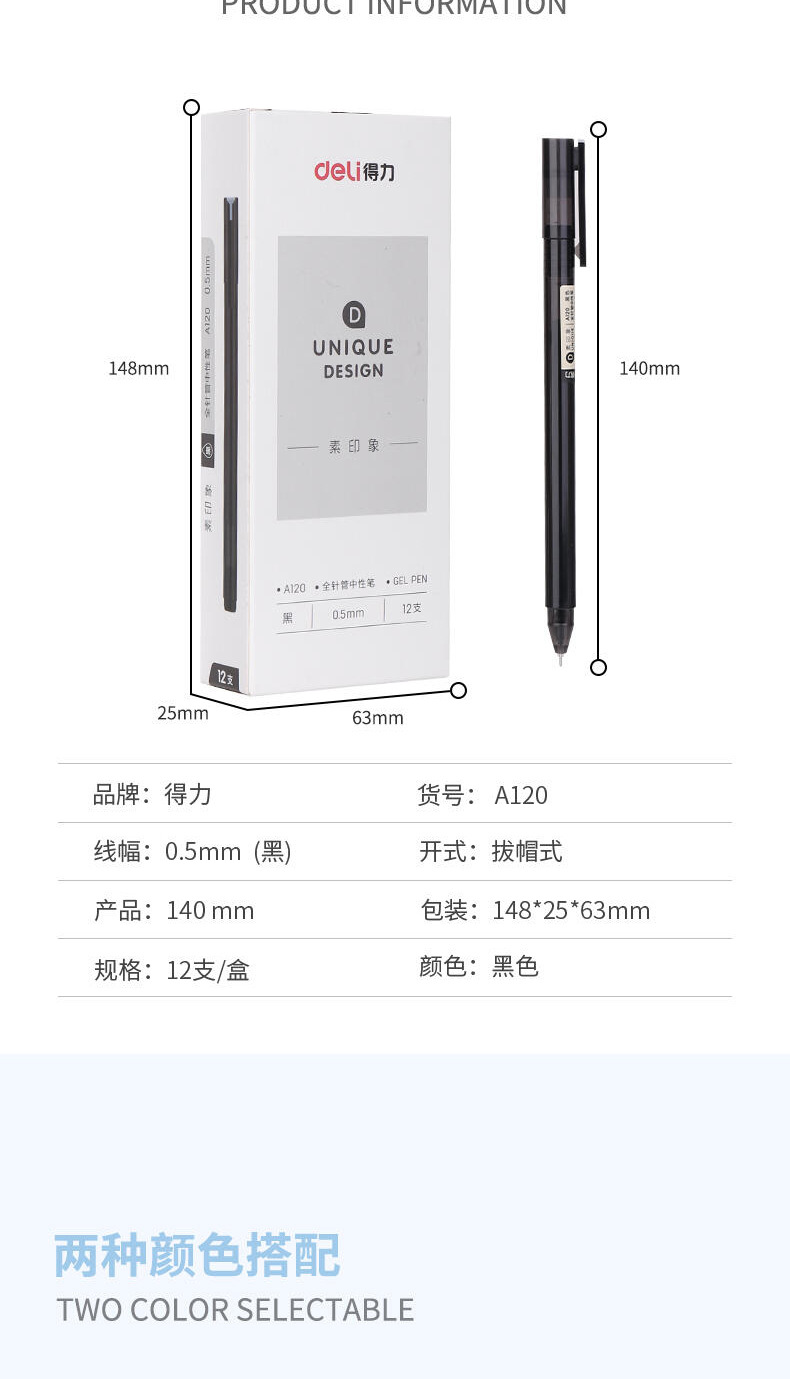 델리 A120 젤 펜 간단한 학생 바늘 머리 0.5 빨간색과 파란색 테스트 펜 블랙 오피스 사인 펜