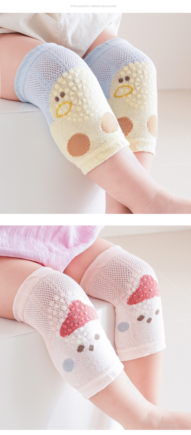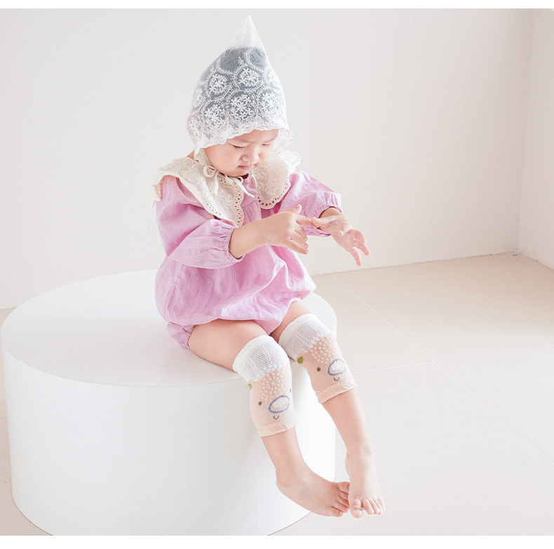 25 개의 아기 무릎 패드 봄과 여름 새로운 분배 미끄럼 방지 무릎 보호대가 면화 만화 메쉬 통기성 크롤링 무릎 패드를 빗질했습니다.스토어 가기