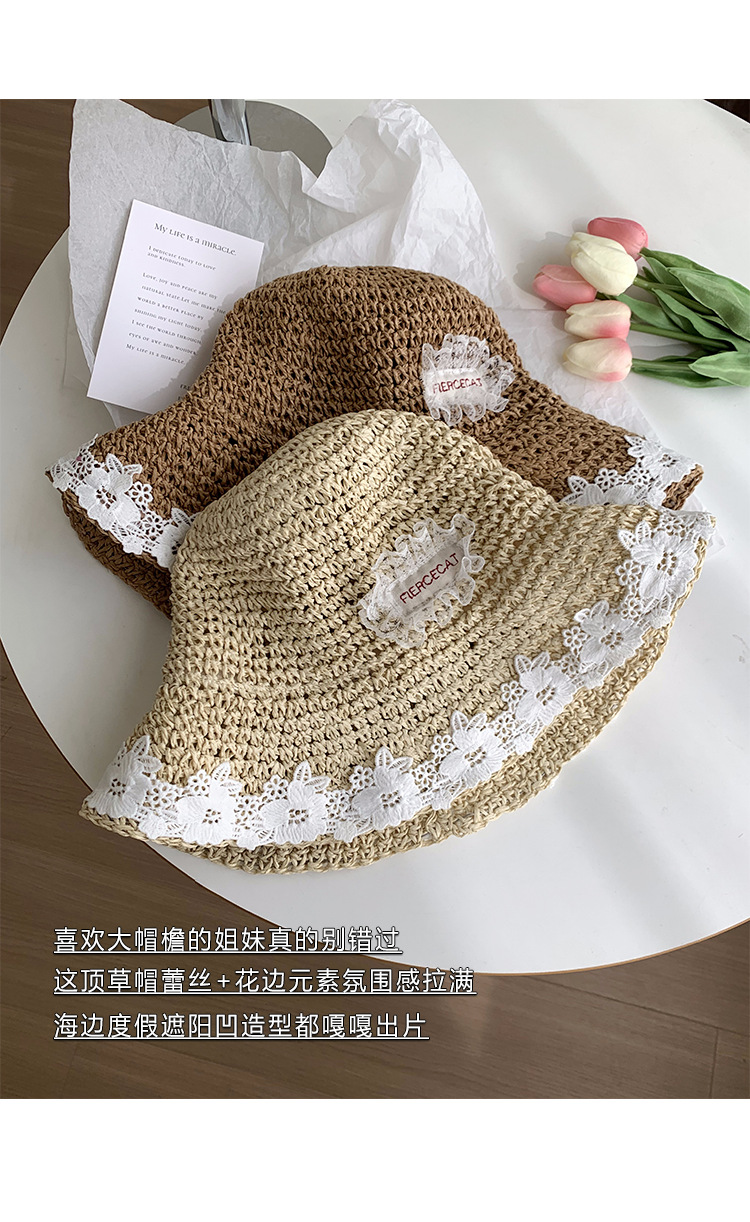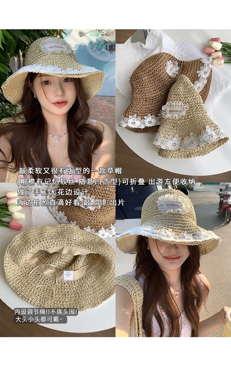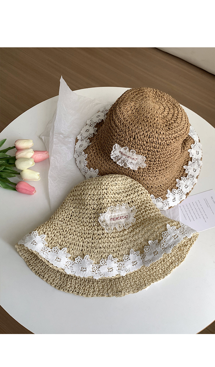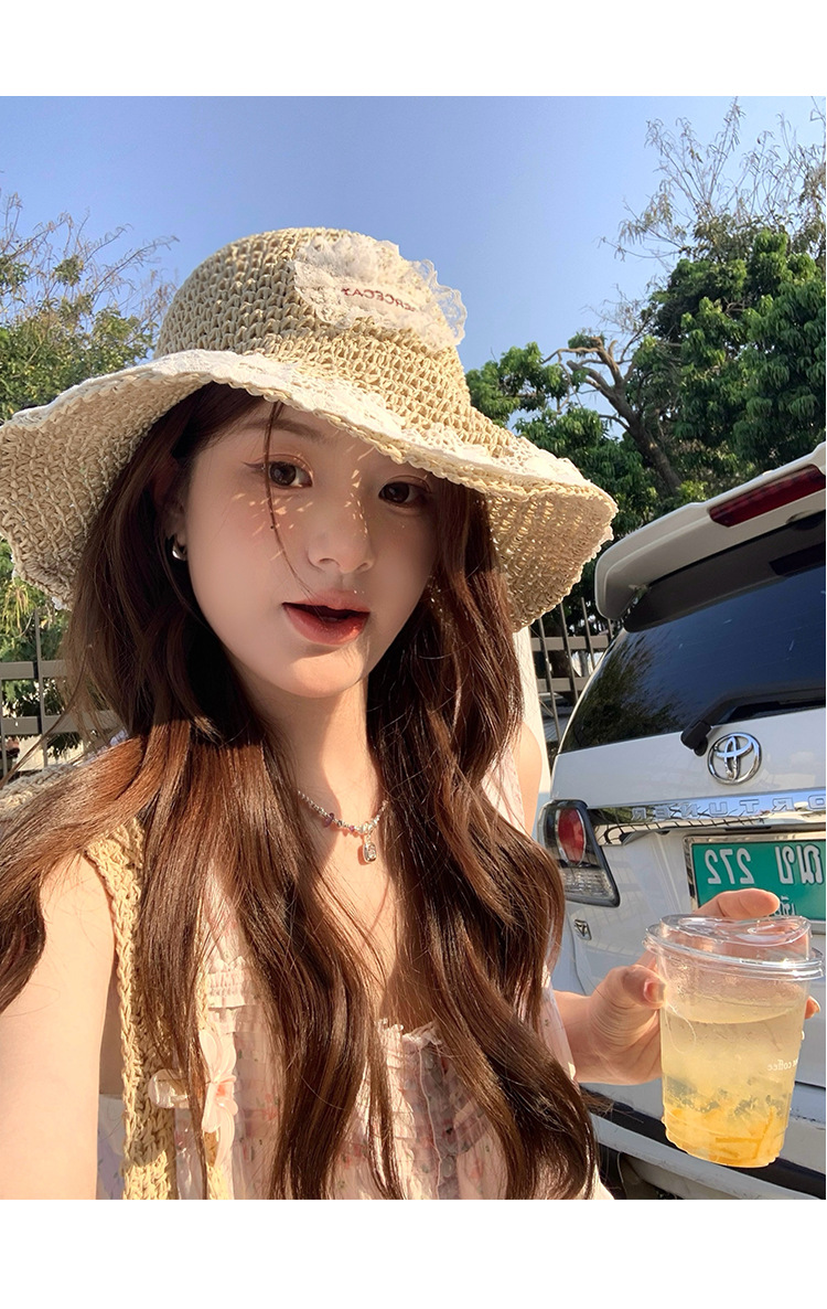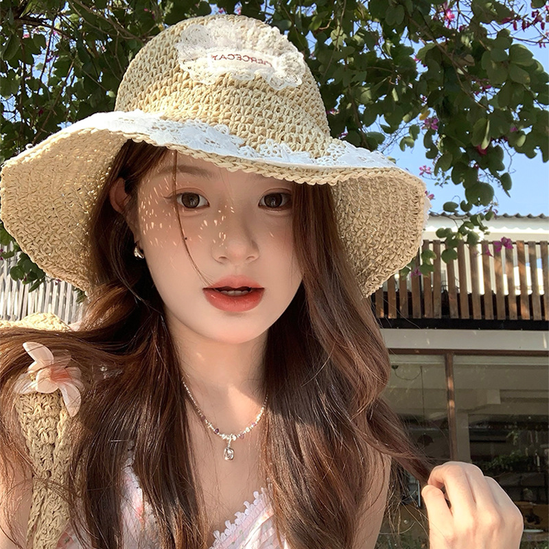 레이스 밀짚 모자 여자 2025 년 여름 새로운 도착 해변 해변 모자 할로우 통기성 햇살