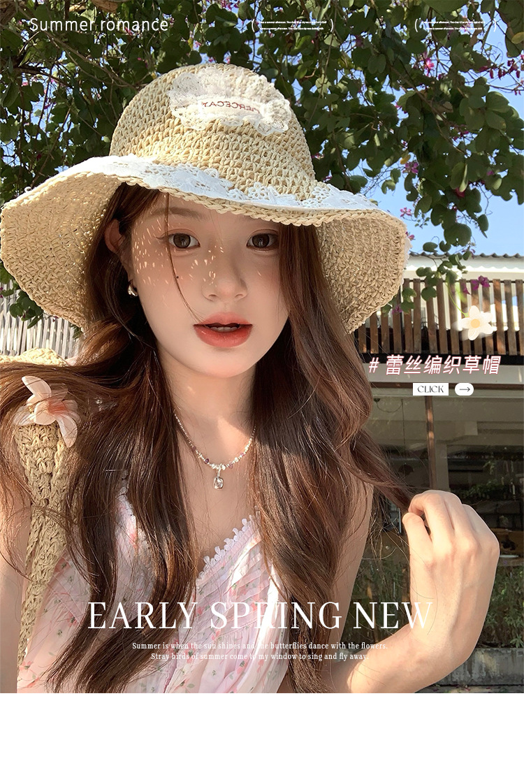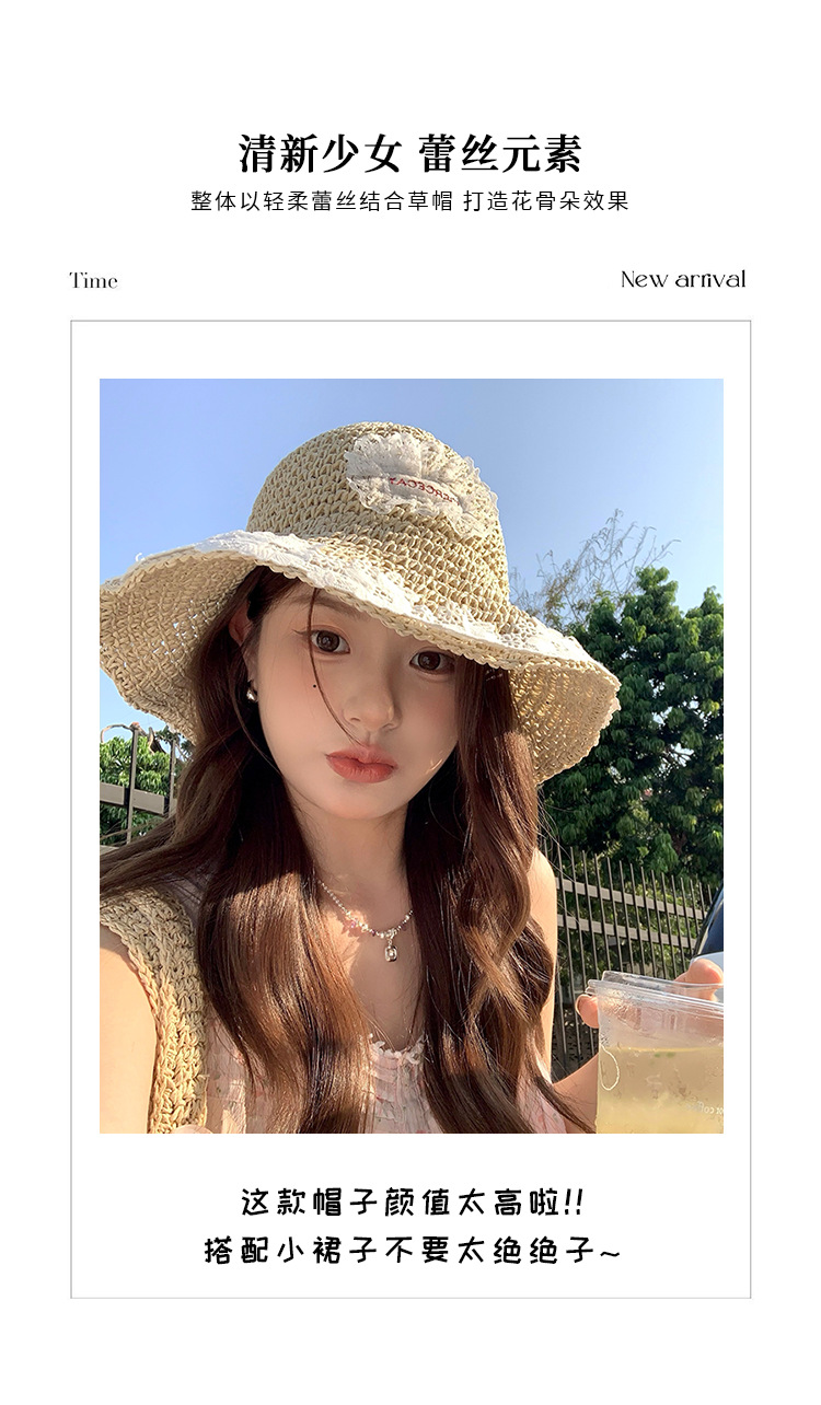 레이스 밀짚 모자 여자 2025 년 여름 새로운 도착 해변 해변 모자 할로우 통기성 햇살스토어 가기