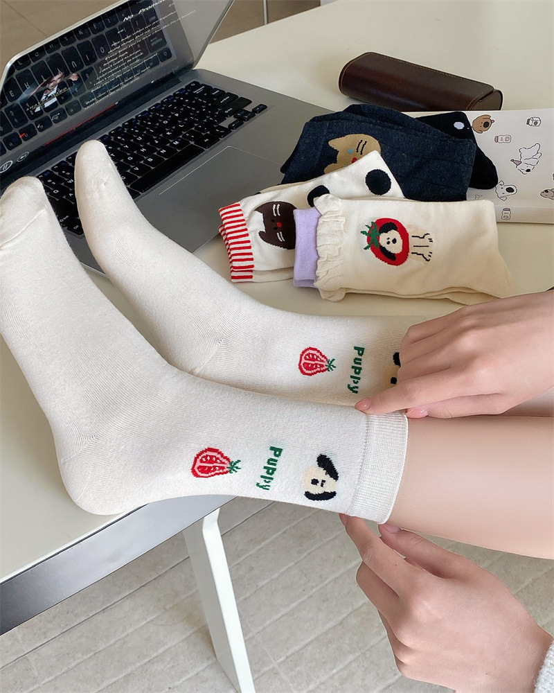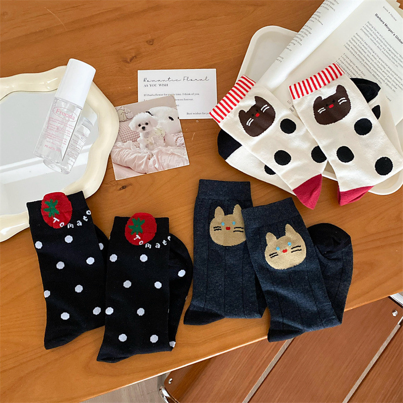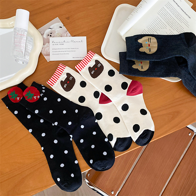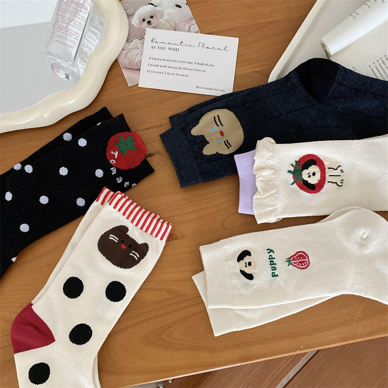 토마토 강아지 양말 여성 Ins 유행 디자이너 틈새 스타일 한국 스타일 만화 귀여운 소녀 양말스토어 가기
