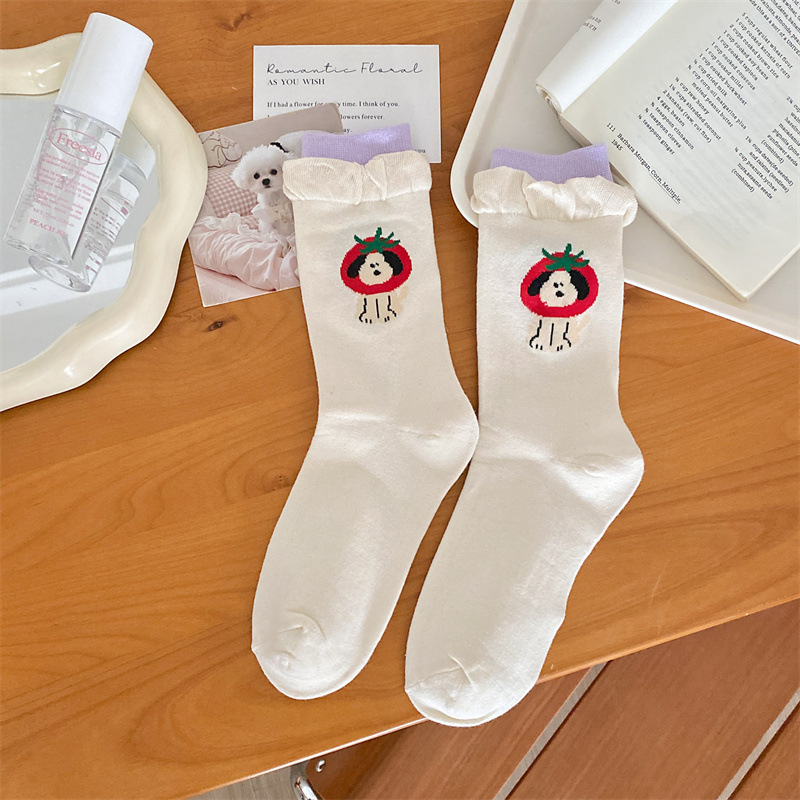 토마토 강아지 양말 여성 Ins 유행 디자이너 틈새 스타일 한국 스타일 만화 귀여운 소녀 양말