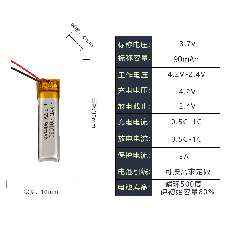 배터리 401030 폴리머 리튬 배터리 90mAh 삼원 리튬 배터리 블루투스 헤드셋 충전식 배터리 3.7V