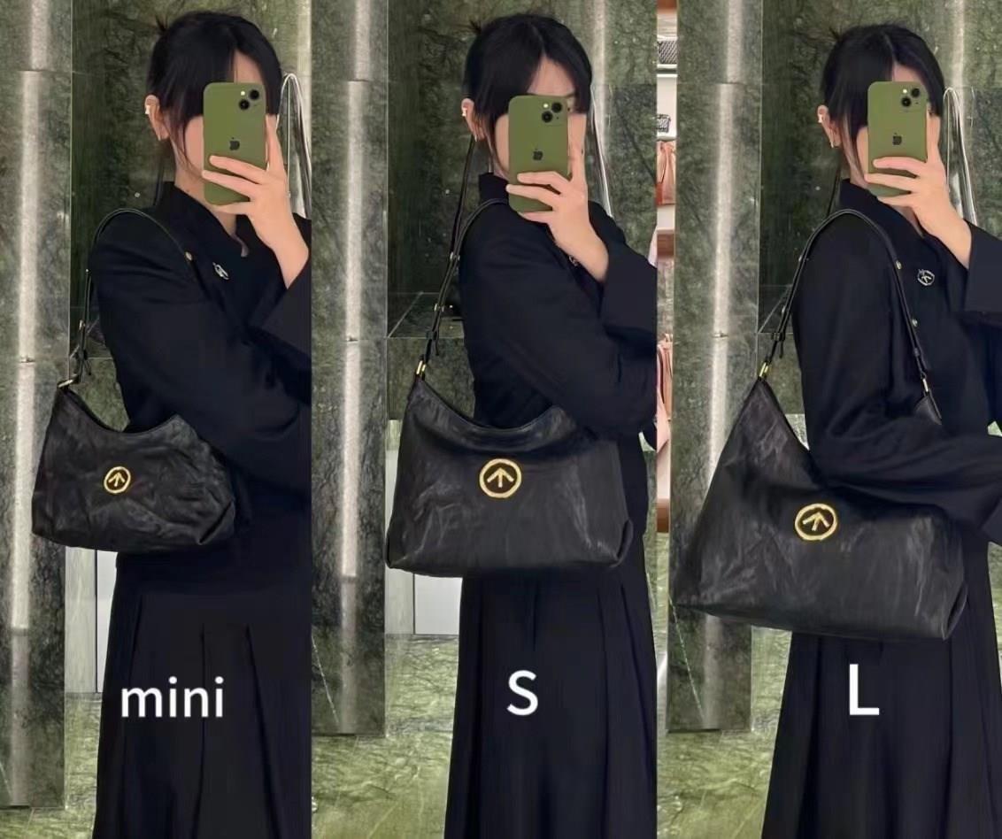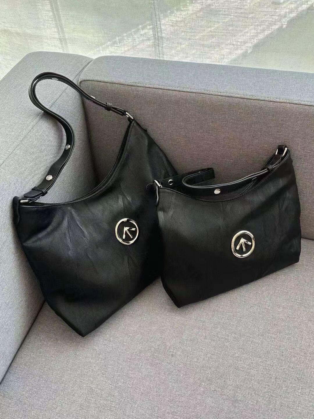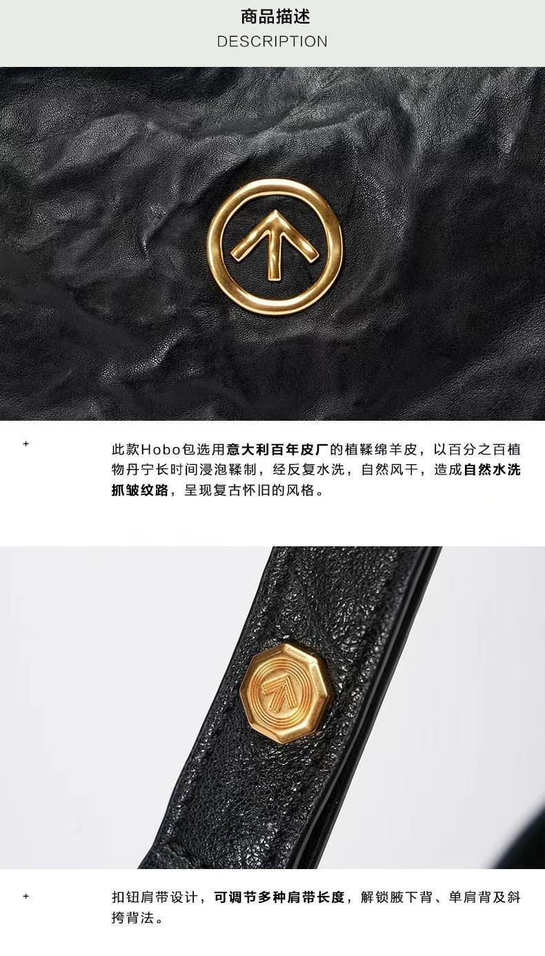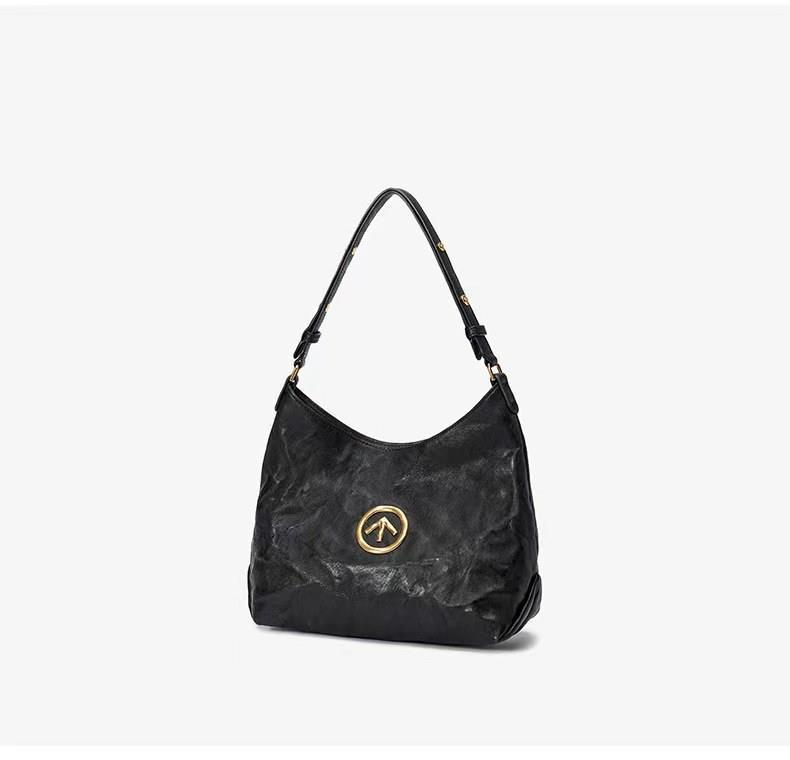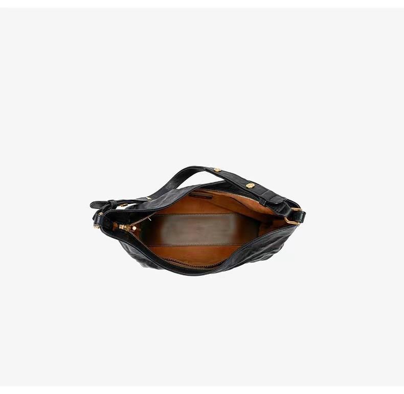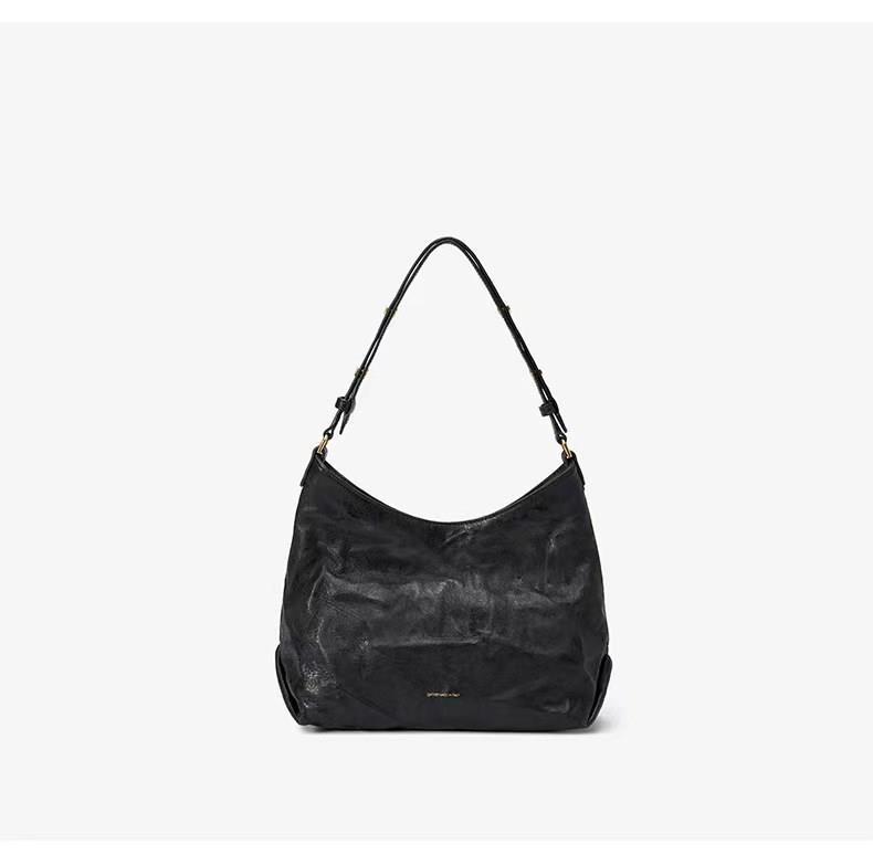 GROTTO 섹스리스 호보 스몰 사이즈 블랙 스톤 주름진 손 어깨 크로스 바디 언더암 소프트 가죽 화살표