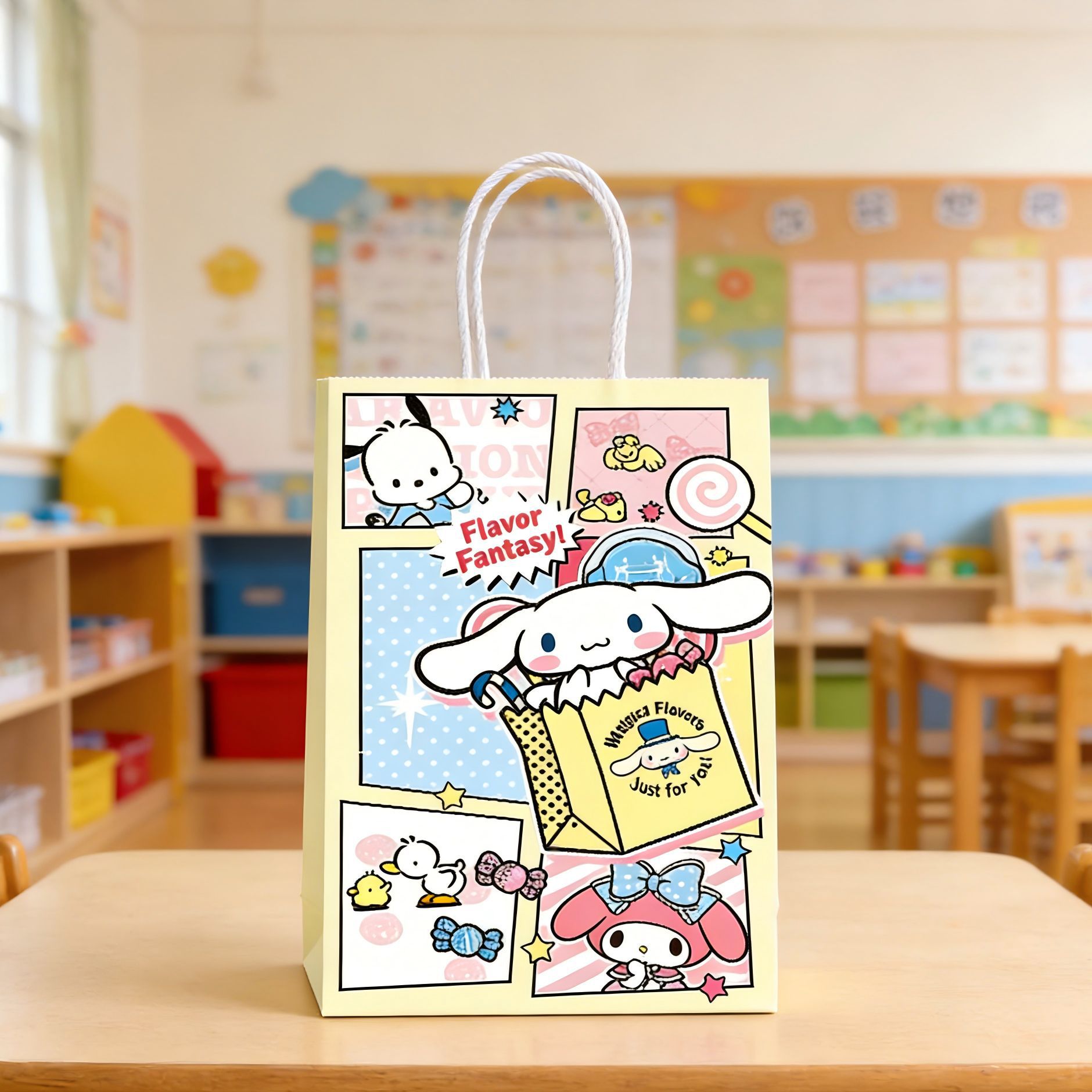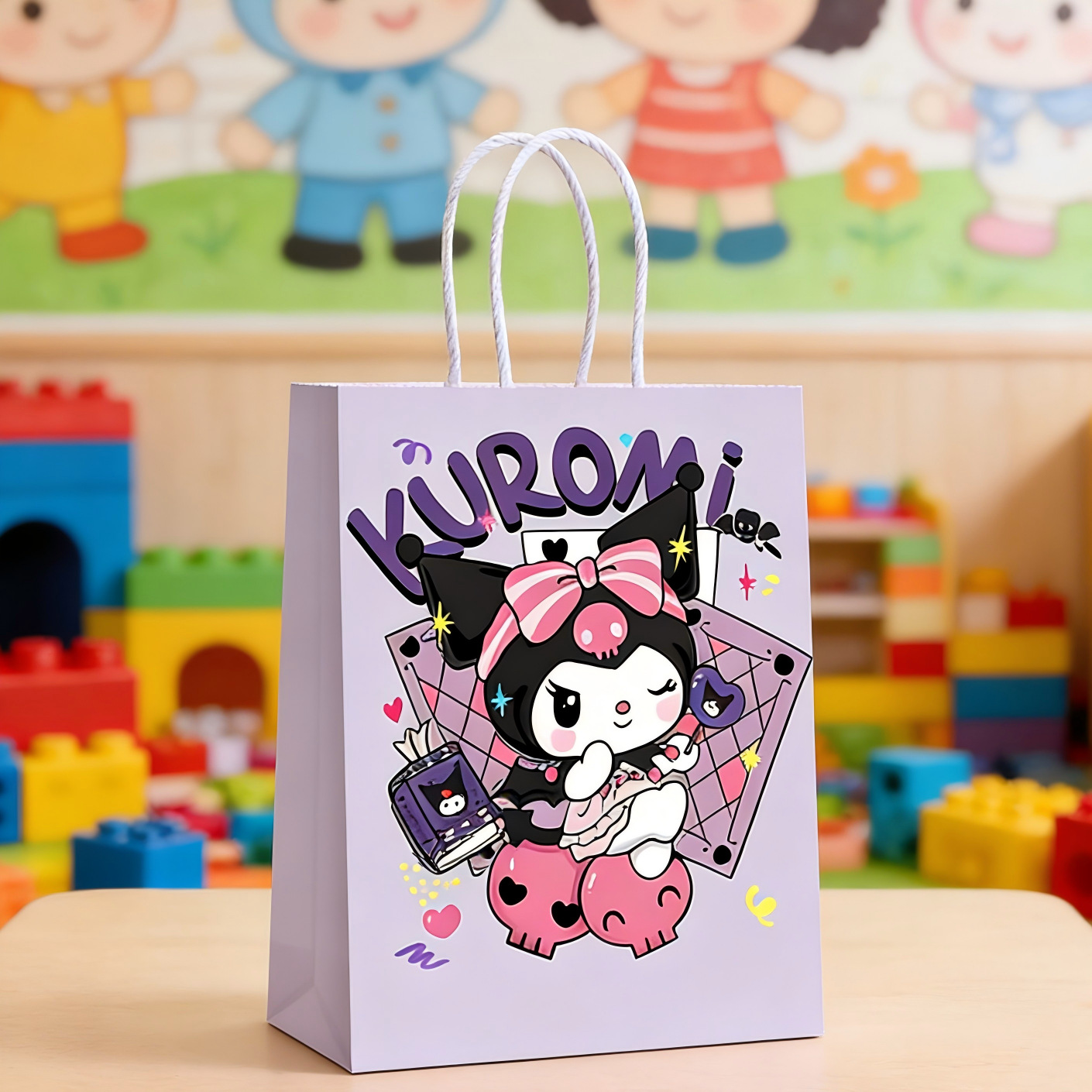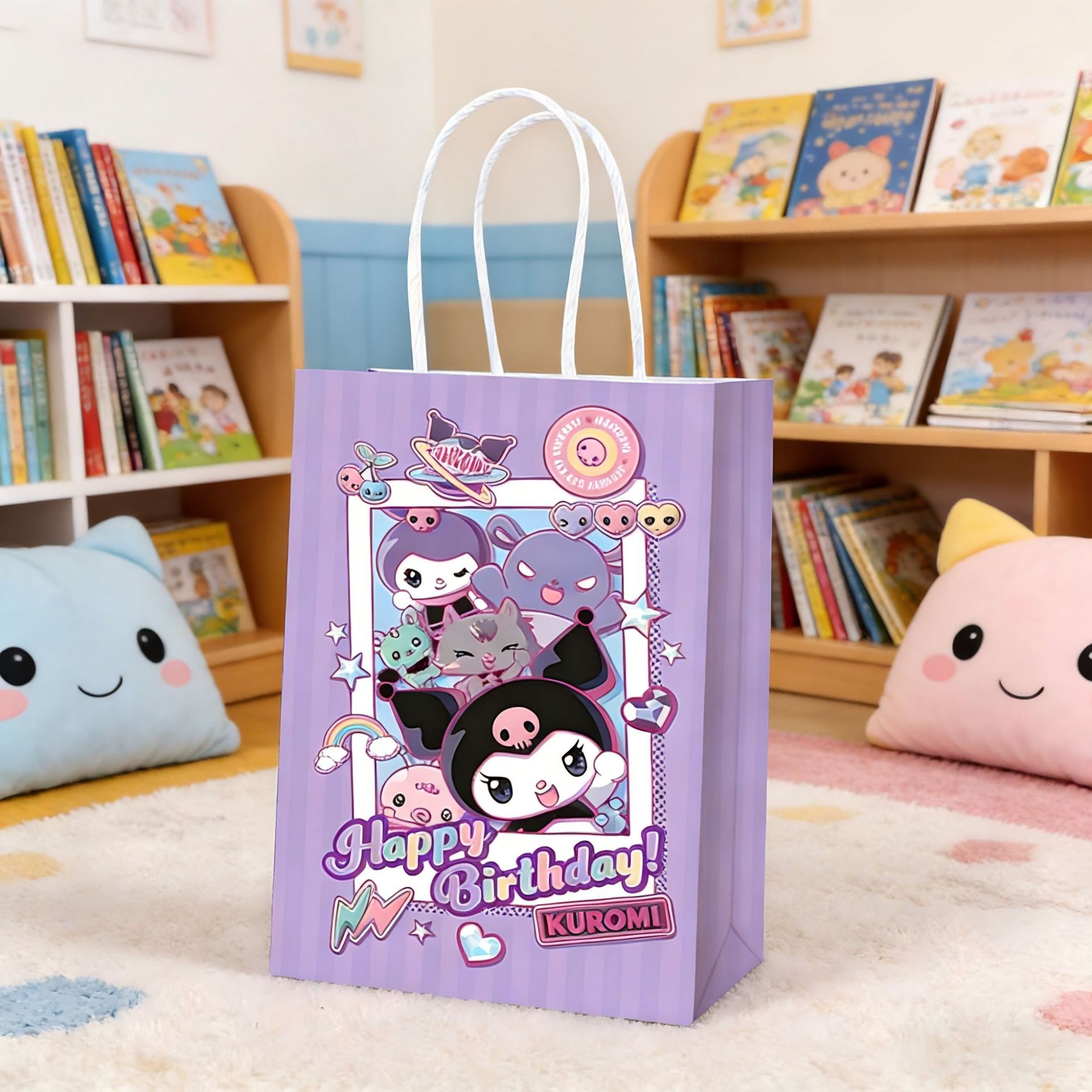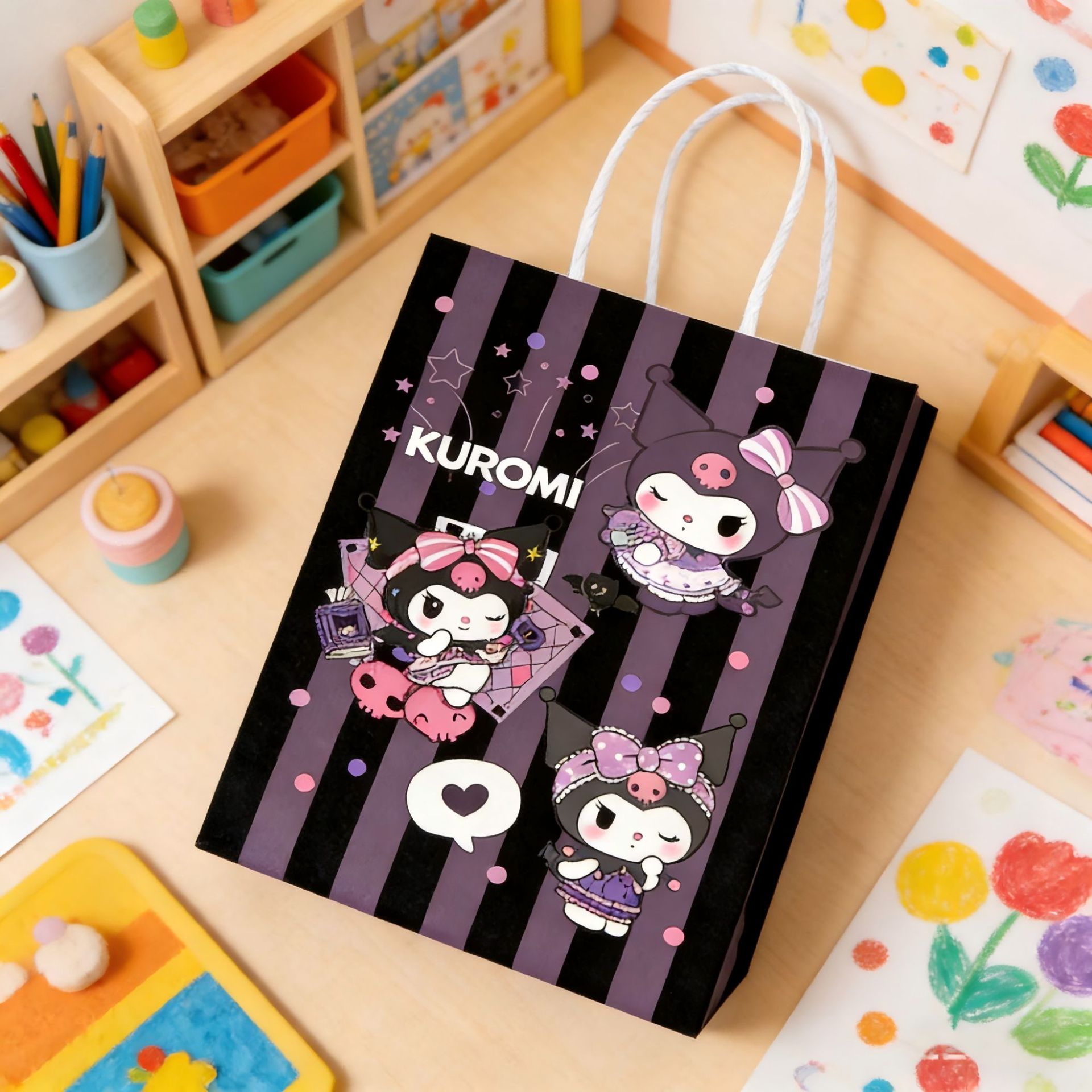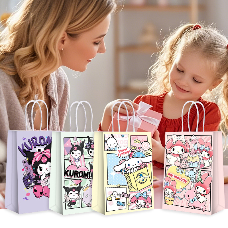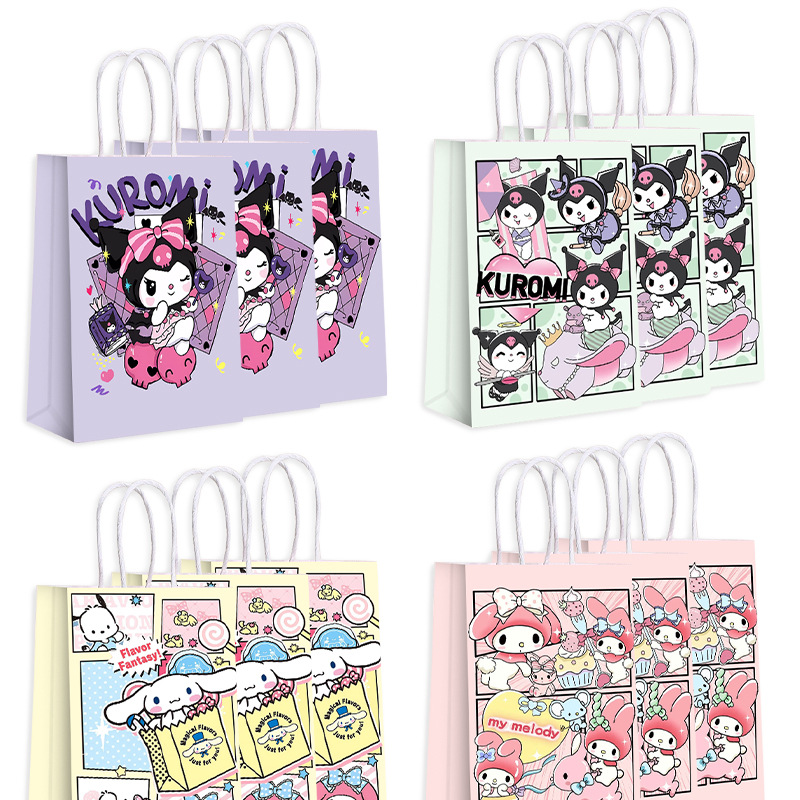 산리오 쿠로미 컬러 프린트 선물 가방 어린이 기념품 토트백 생일 파티 쿠키 사탕 포장 가방