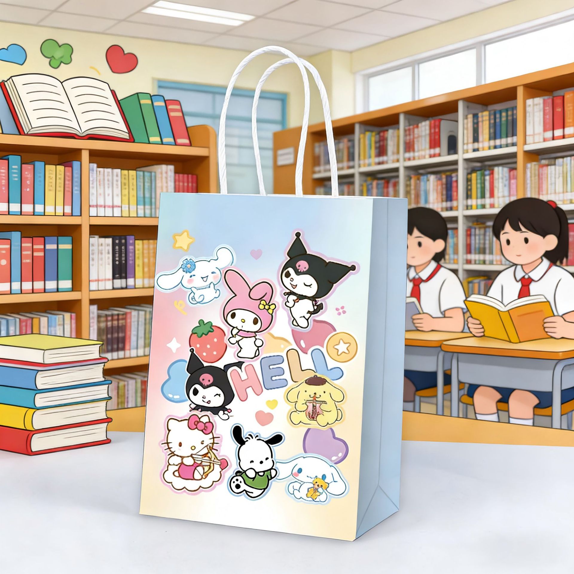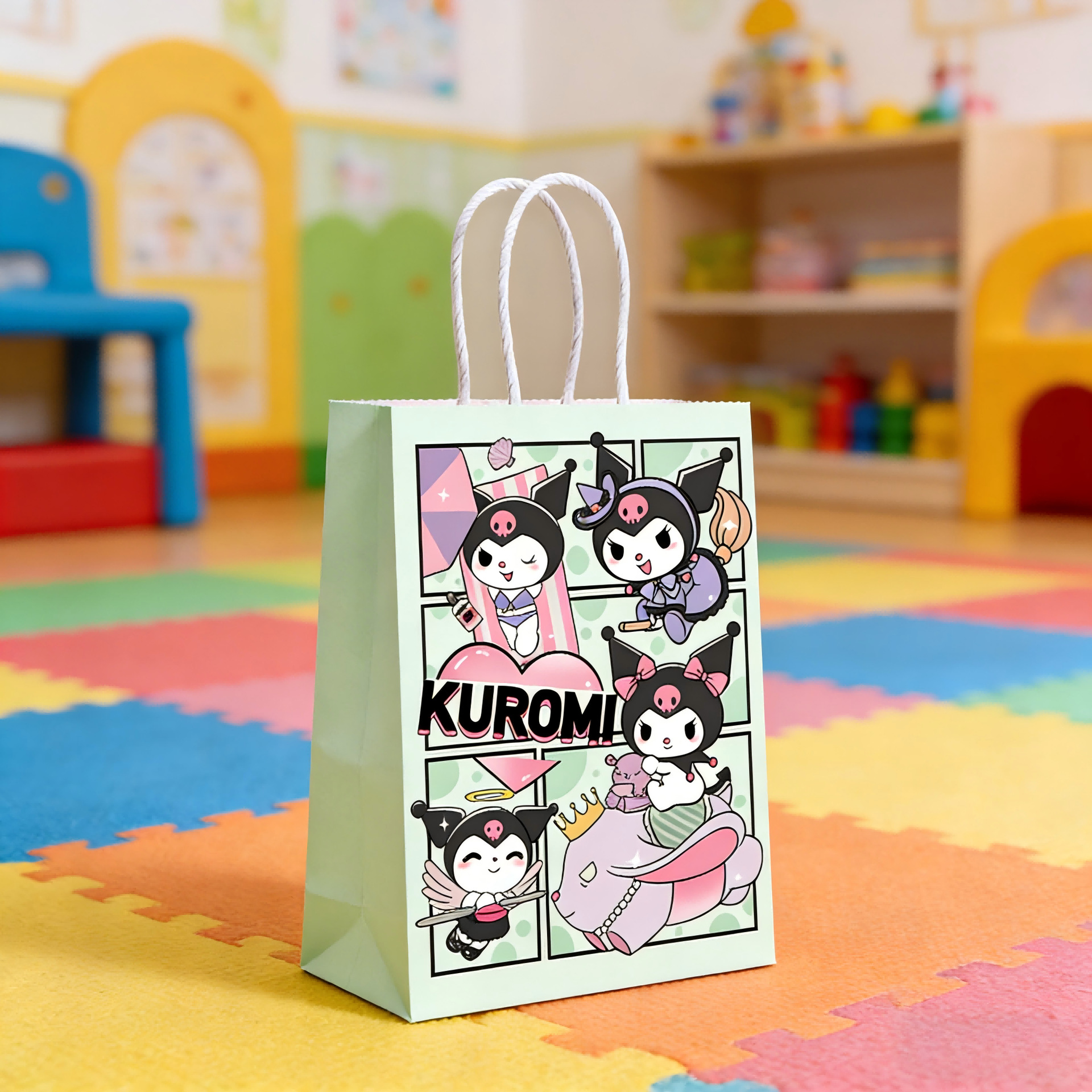 산리오 쿠로미 컬러 프린트 선물 가방 어린이 기념품 토트백 생일 파티 쿠키 사탕 포장 가방스토어 가기