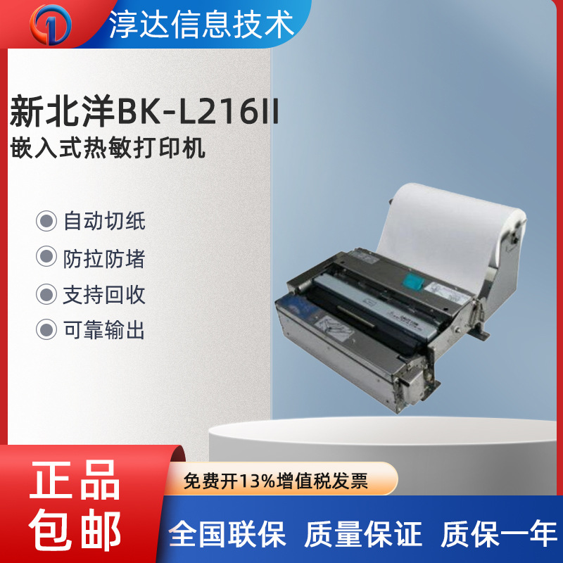 BK-L216II是一款A4幅面高端嵌入式热敏打印机,该款产品配有容纸机构(PRESENTER)和自动切刀,具有防拉、防堵功能,同时提供多种打印状态监控机制,保证打印信息可靠输出,是交易清单等宽幅面高靠性。