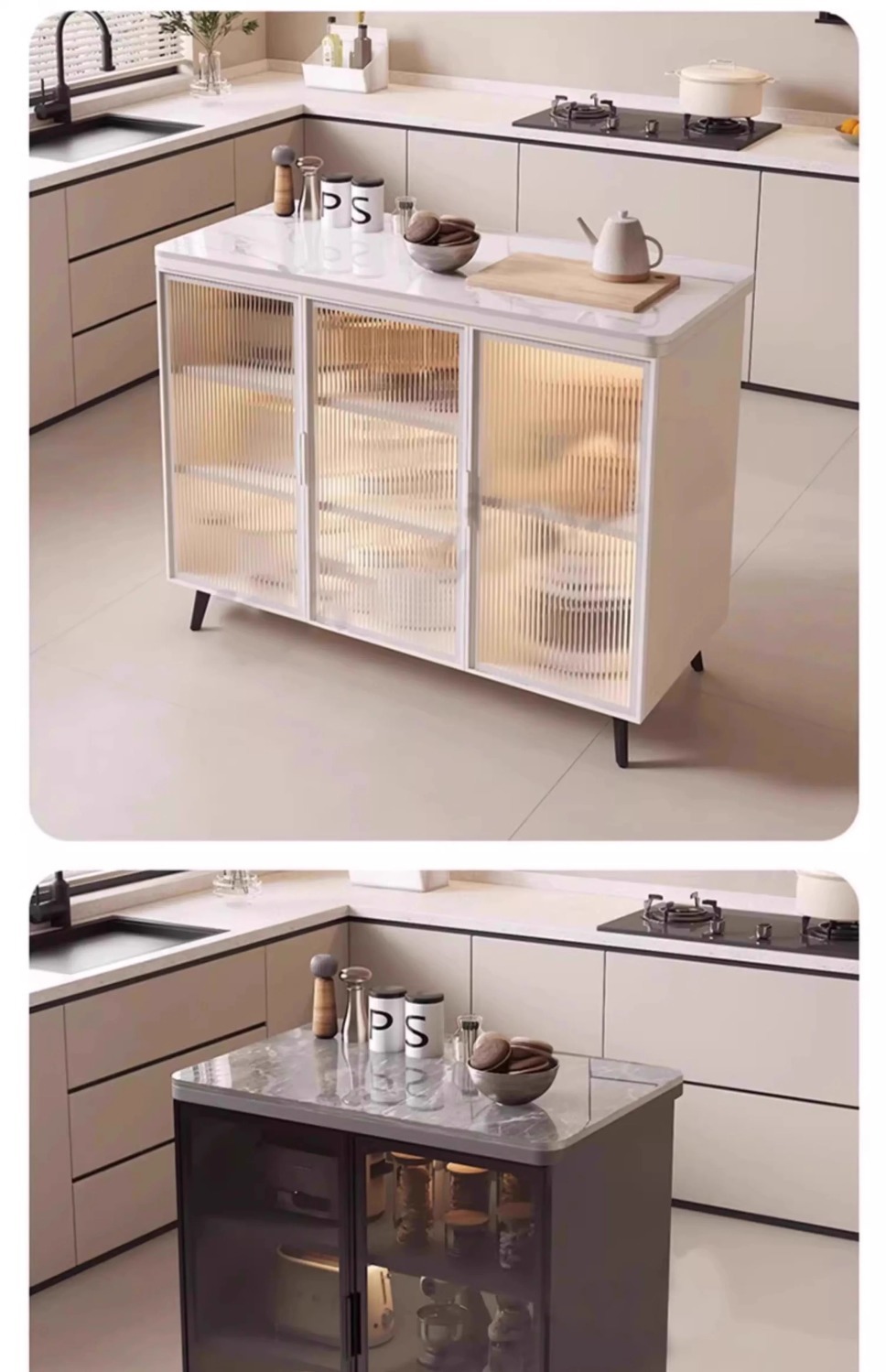 록 보드 사이드 보드 캐비닛 스토리지 캐비닛 다기능 주방 커팅 테이블 콘솔 다층 아일랜드 테이블 이동식 스토리지 캐비닛스토어 가기