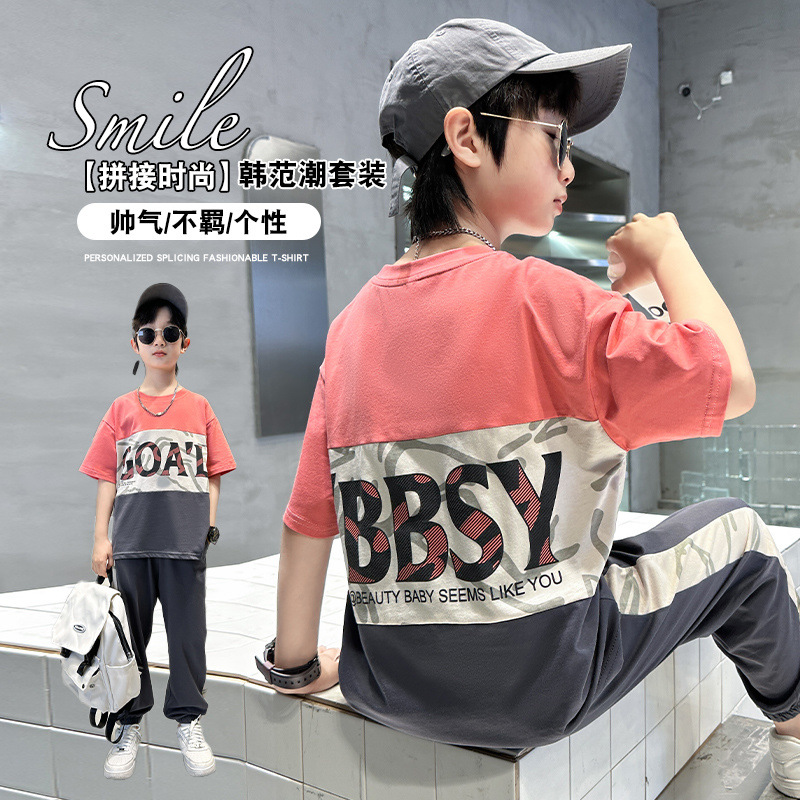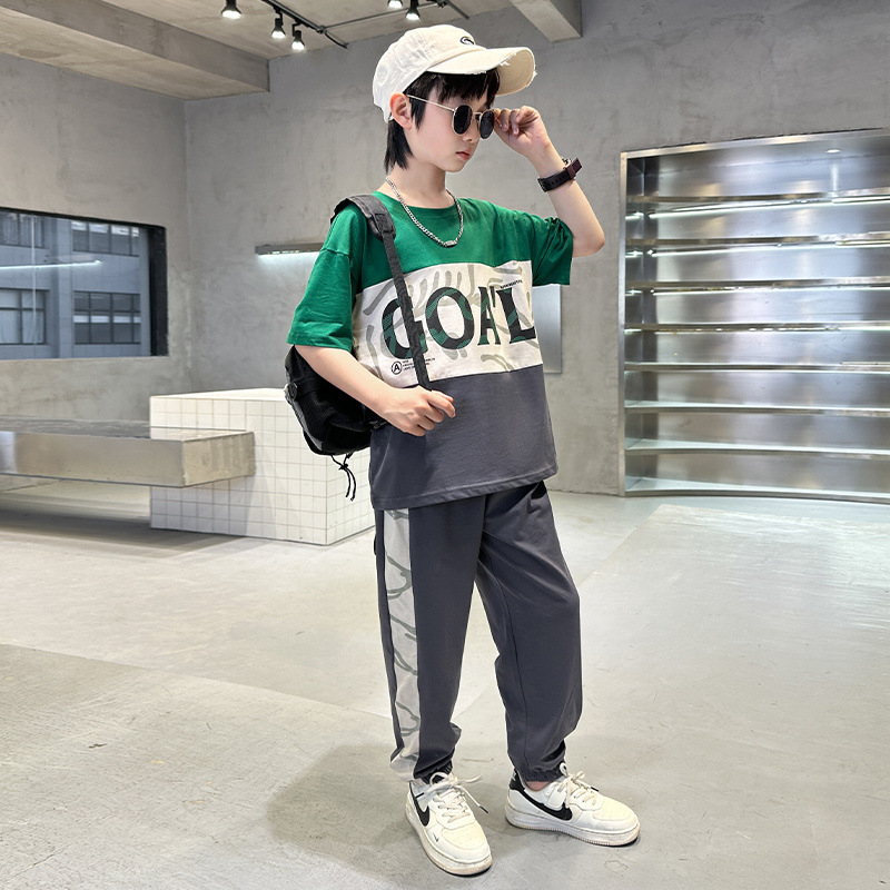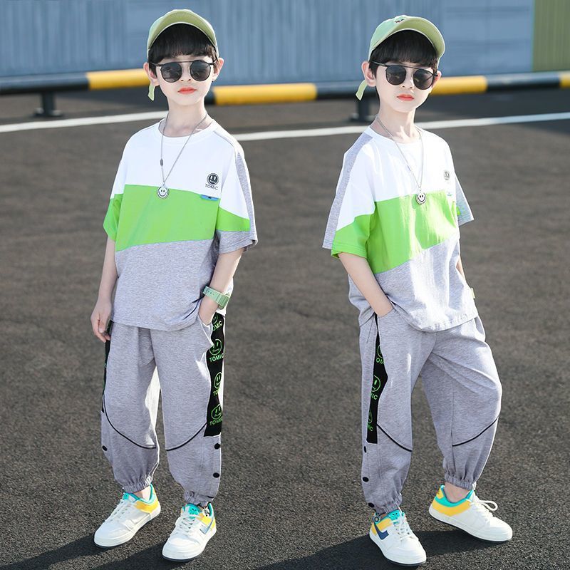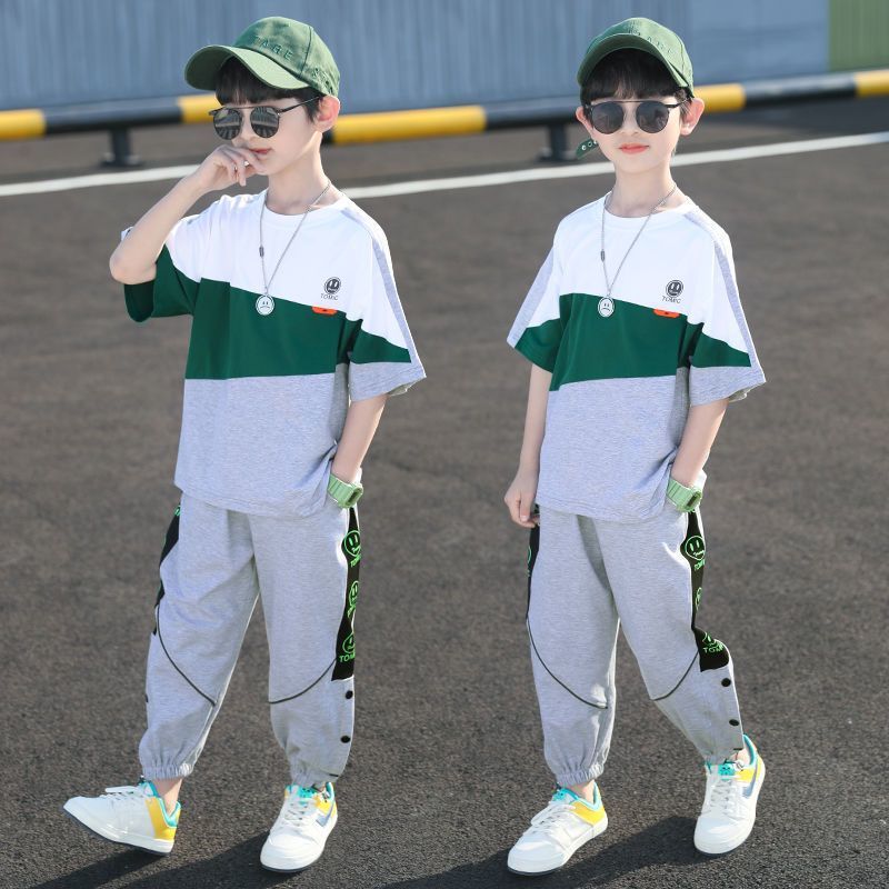 남자들의 여름 세트 새로운 여름 미드 빅 키즈 잘 생긴 반팔 어린이 스포츠 의류 트렌디스토어 가기