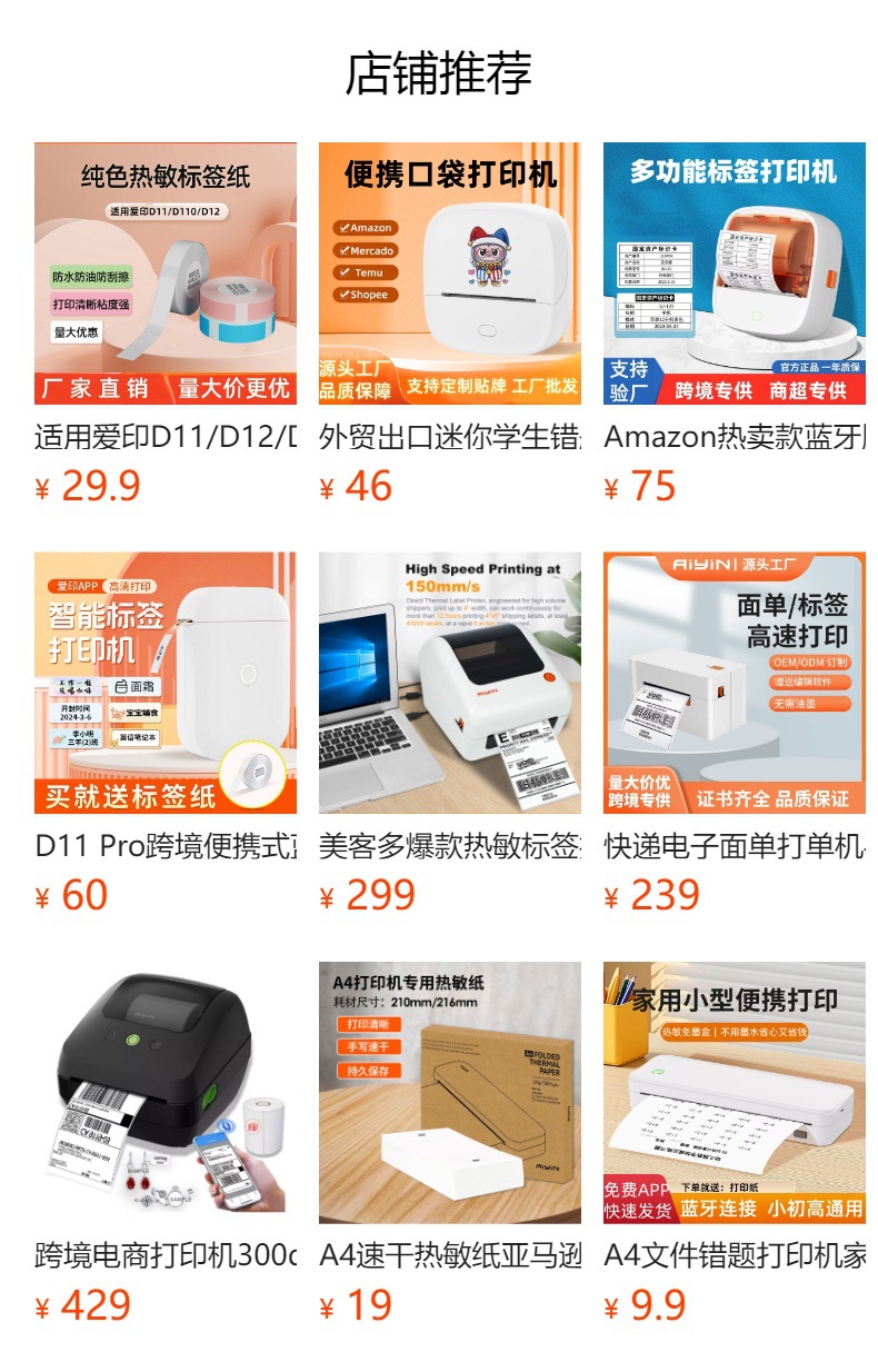 出厂标配:主机+充电线+说明书+打印纸1卷
