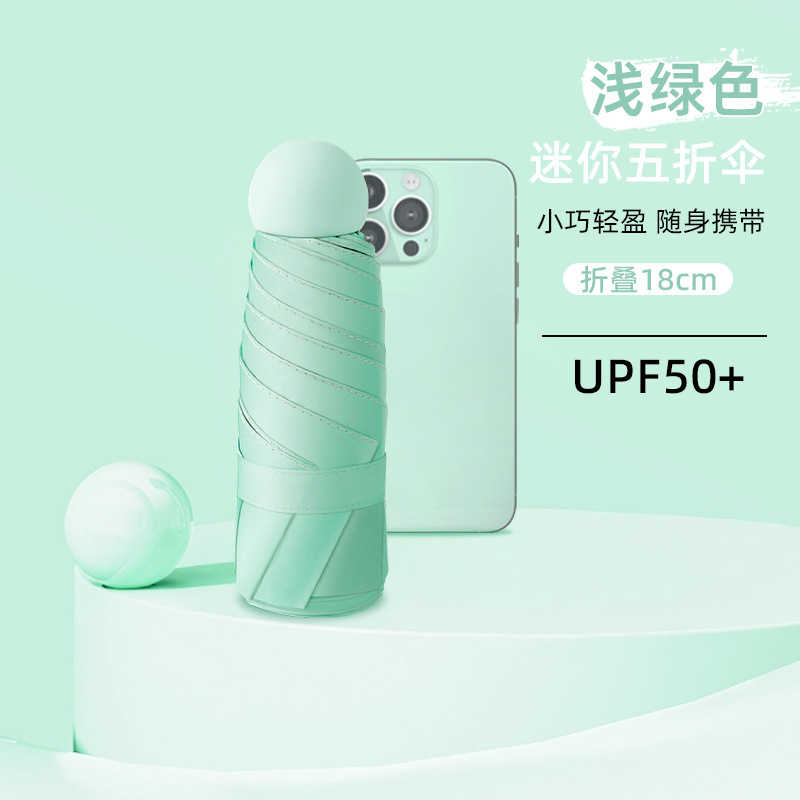 선 스크린 50% 접힌 8 뼈 우산 포켓 캡슐 블랙 고무 접는 태양 우산 작은 맑은 햇빛 우산 광고 우산