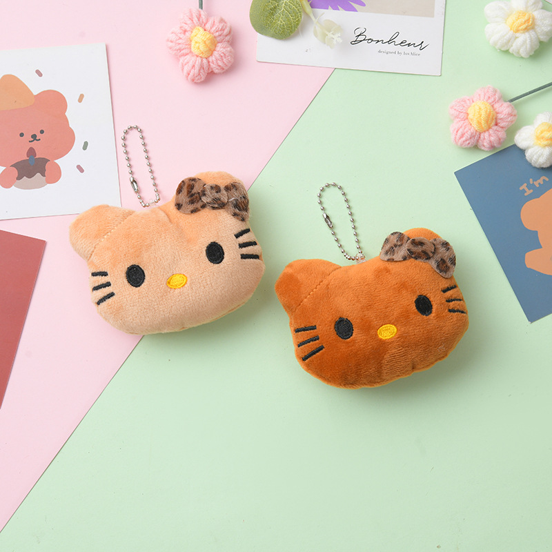 새로운 키티 고양이 키 체인 만화 귀여운 레오파드 무늬 고양이 가방 펜던트 다크 브라운 봉제 고양이 펜던트스토어 가기