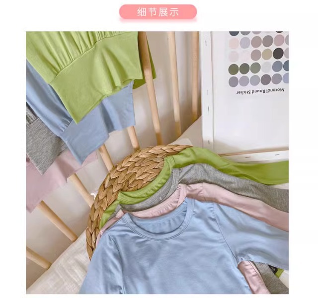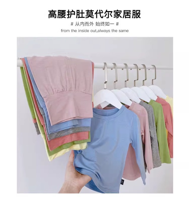 아동 가을 옷과 긴 바지, 하이웨이스트 배 보호 가정복, 유아용 잠옷, 모달 봄, 가을 남아 및 여아 속옷 세트, 얇은스토어 가기
