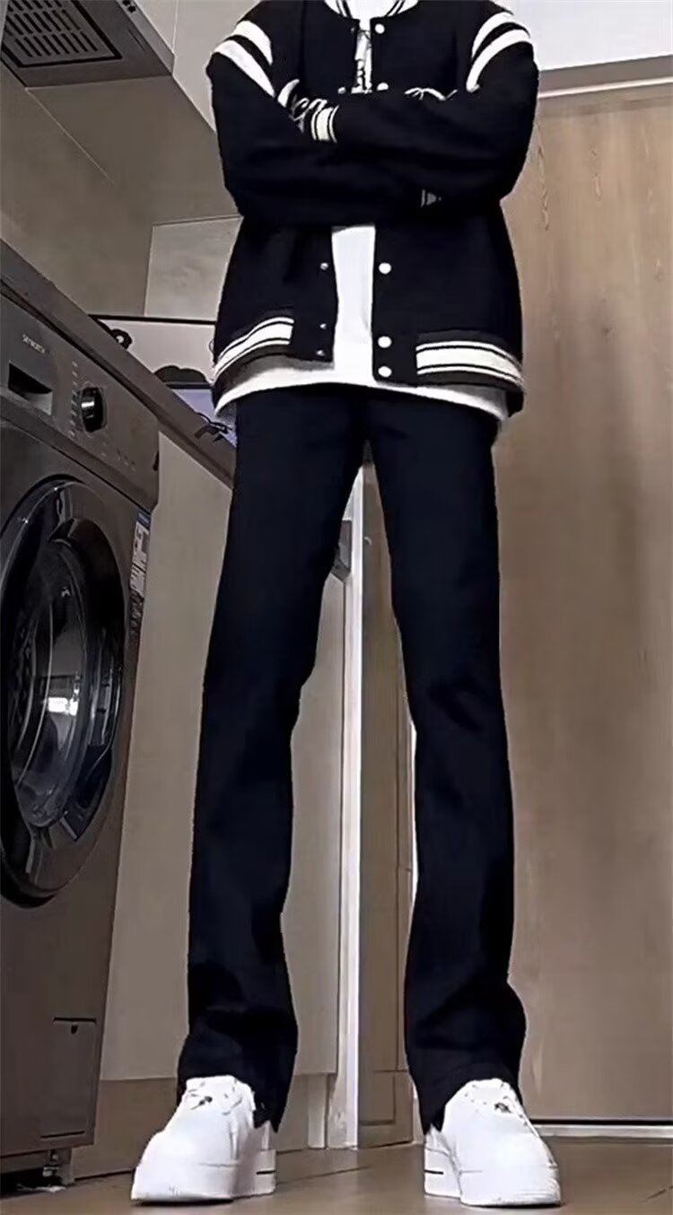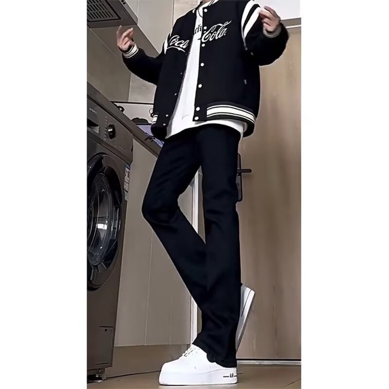 순수한 검은 청바지 여름 새로운 하이 스트리트 슬리밍 캐주얼 스트레이트 세척 긴 바지 남자 느슨한 올 매치 트렌디스토어 가기