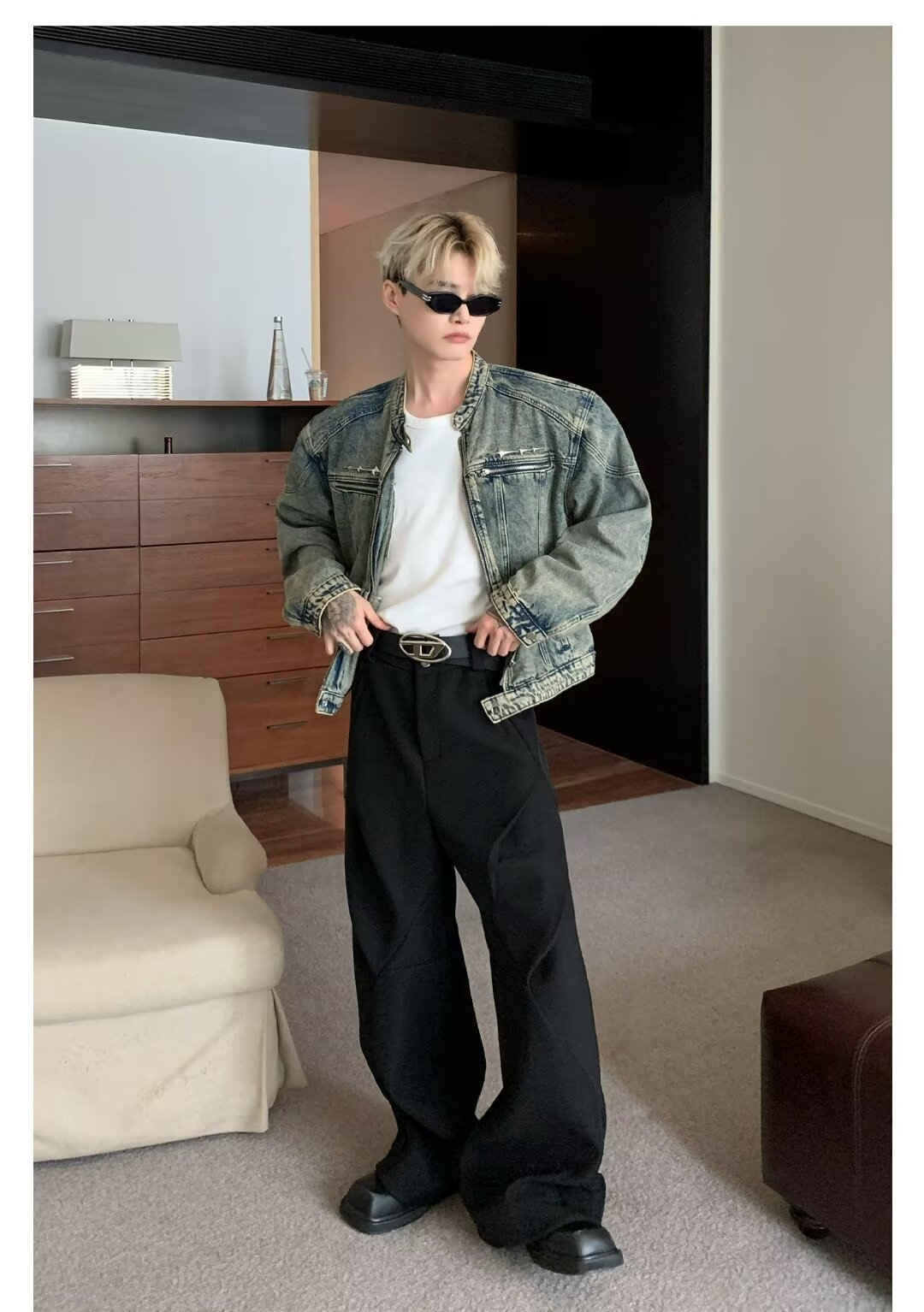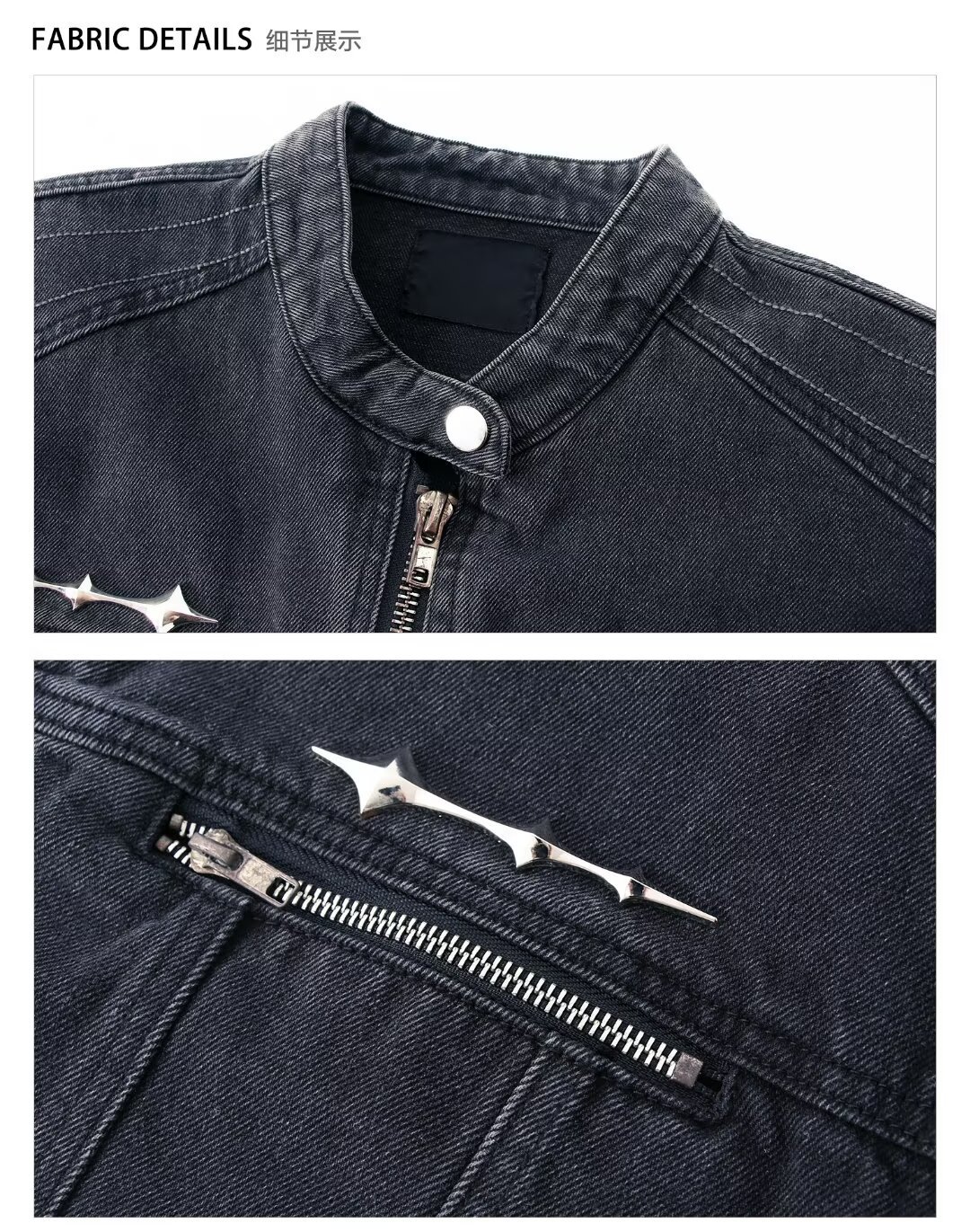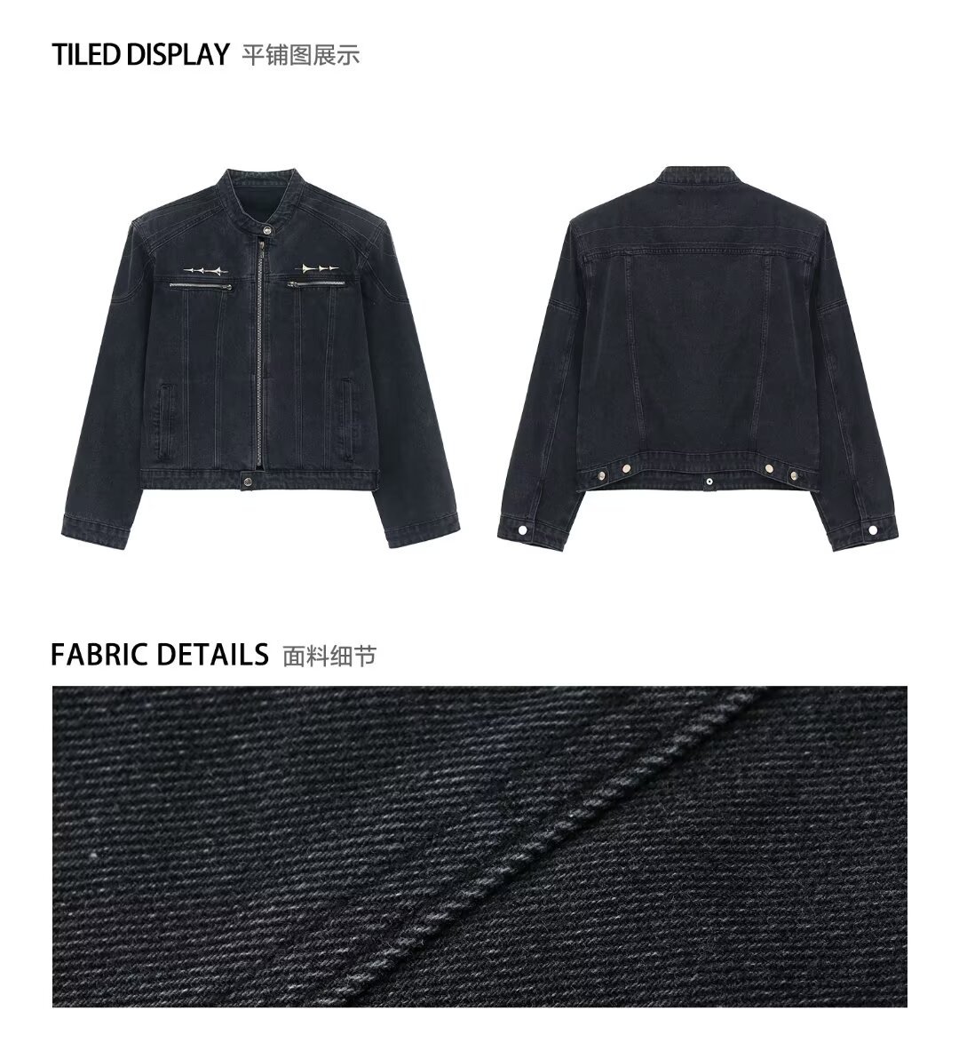 미국 스타일의 복고풍 남성과 여성을위한 오래된 데님 자켓 봄과 가을 틈새 지퍼 디자인 고급 칼라 짧은 자켓