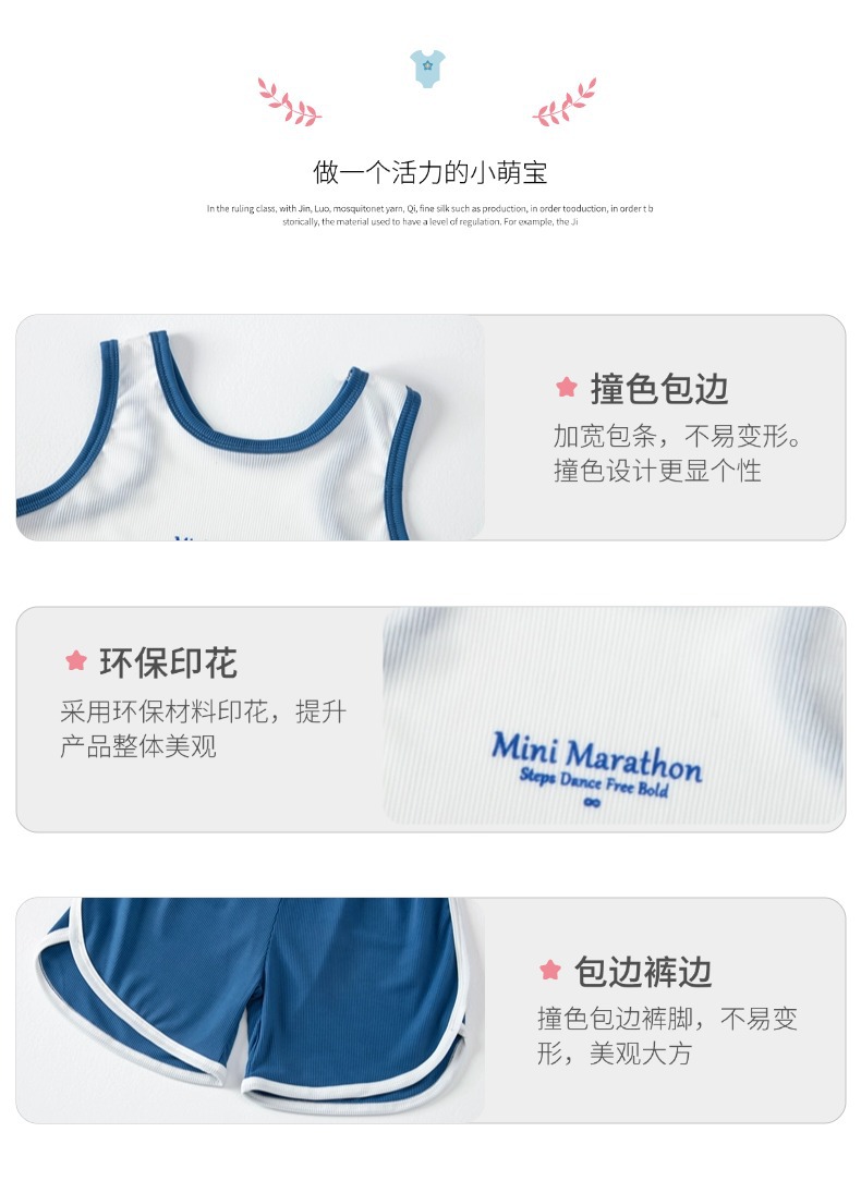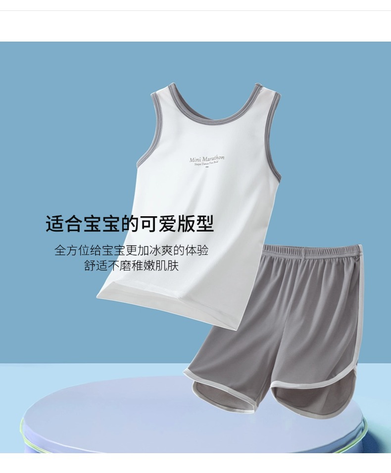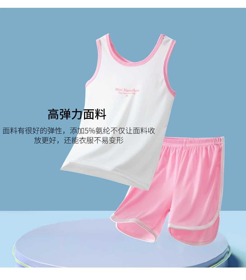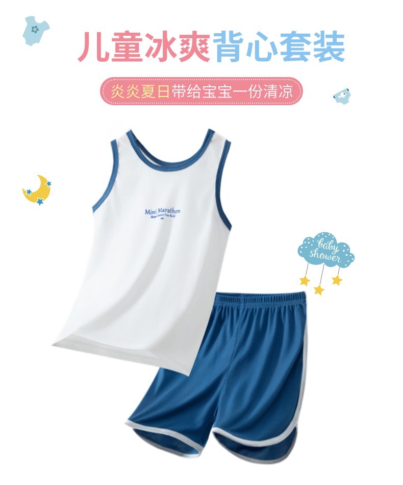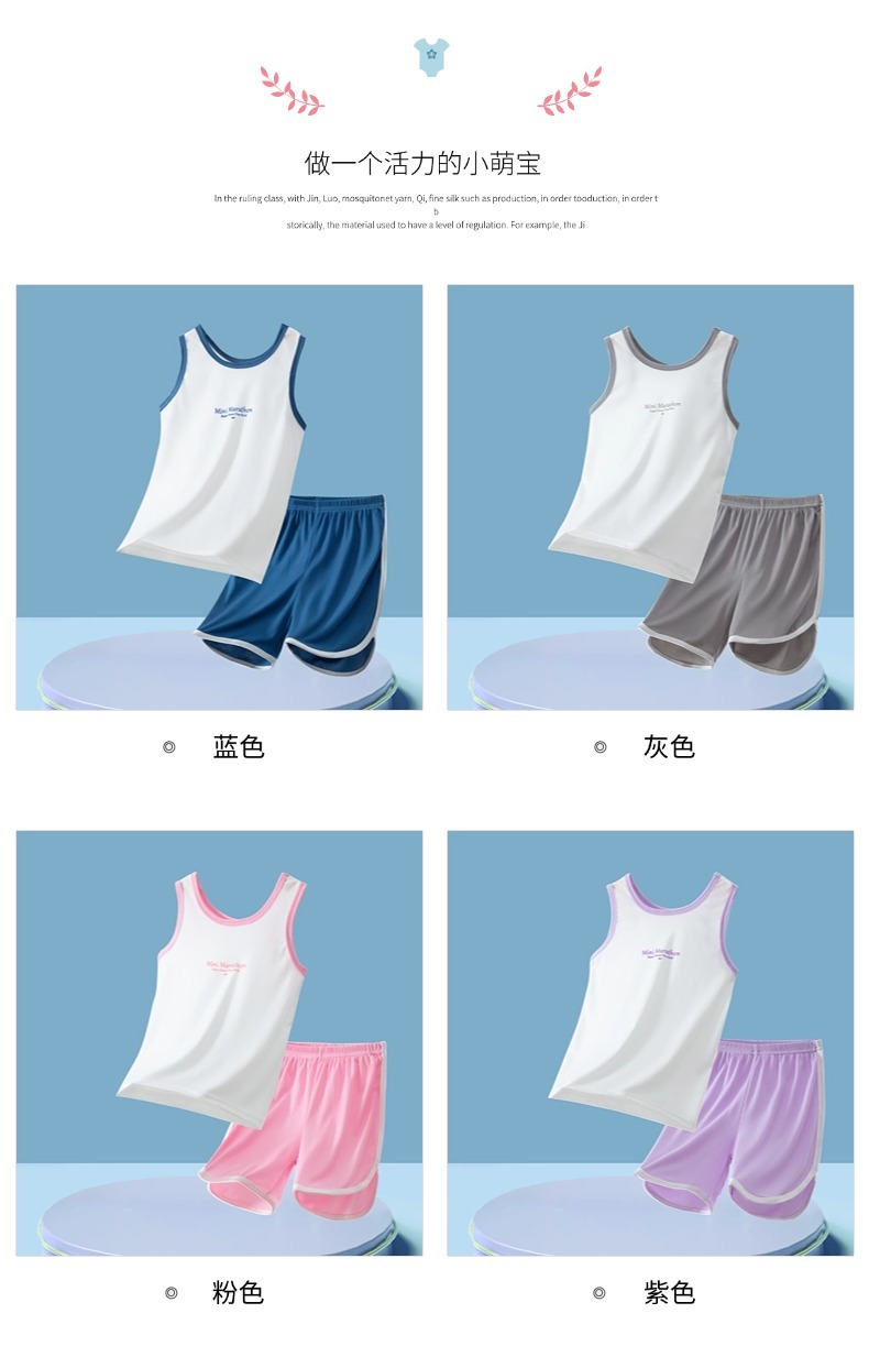 어린이 아이스 실크 조끼 세트 여름 새로운 컬러 블록 인쇄 조끼 세트 남학생과 여자를위한 민소매 통기성 홈 옷스토어 가기