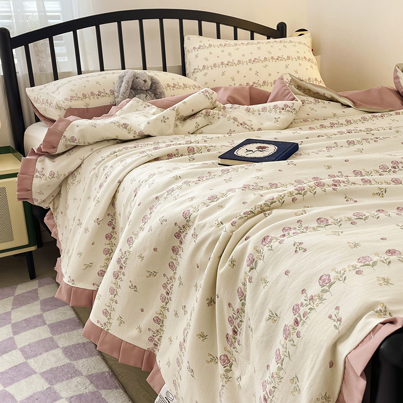 2025 클래스 A 니트 코튼 더블 레이어 원사 여름 쿨 퀼트 신강 에어컨 이불 여름 쿨 퀼트 4 피스 세트