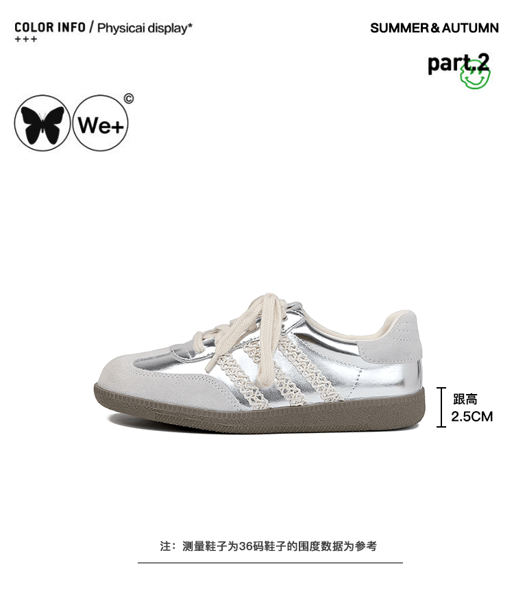 정품 가죽 ~ 실버 운동화 여성 2025 년 새 봄과 가을 증가 레이스 가장자리 학생 보드 신발 플랫 캐주얼 신발스토어 가기