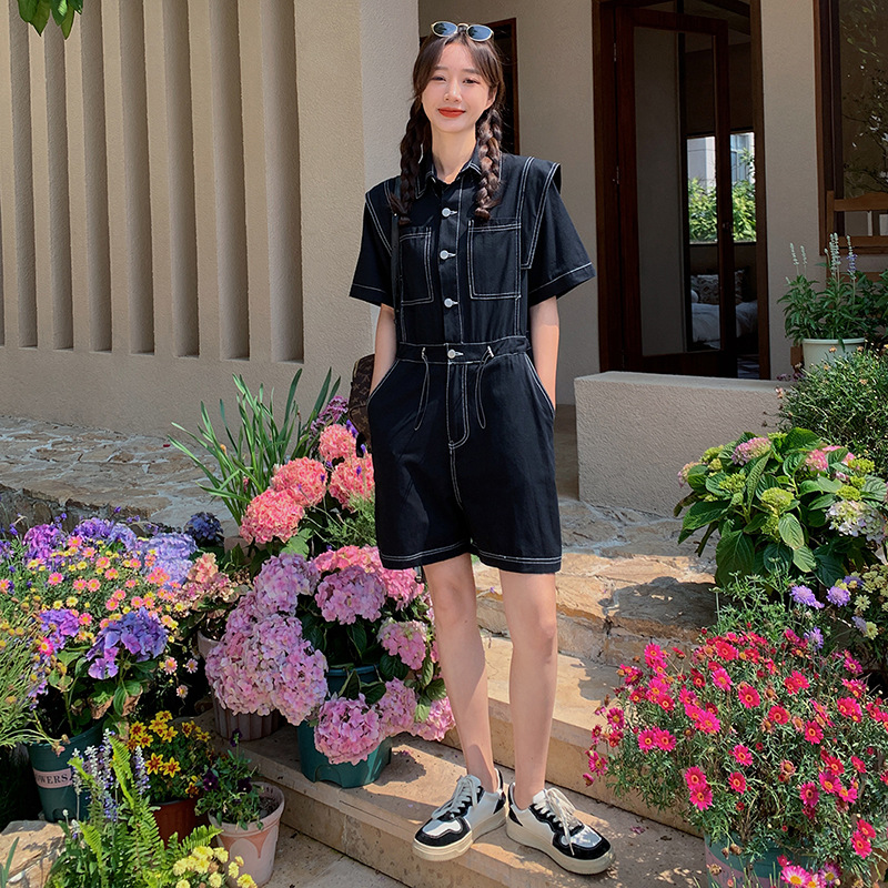 리얼 샷 패셔너블 웨스턴 스타일 툴링 점프 수트 2025 새로운 허리 슬리밍 틈새 프랑스 패션 점프 수트 반바지