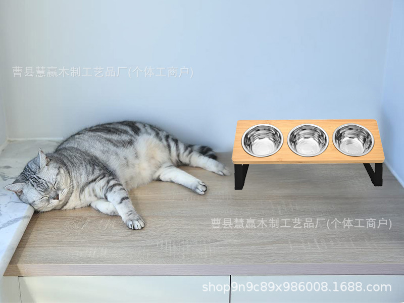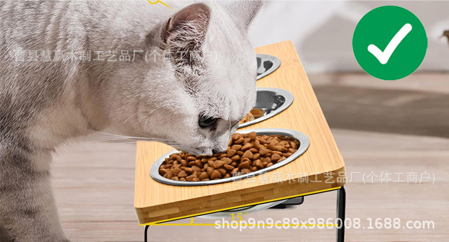 목재 고양이 밥그릇 받침대(그릇 포함), 목 보호 고양이 밥그릇, 강아지 밥그릇, 넘어짐 방지 목재 애완동물 급식대스토어 가기