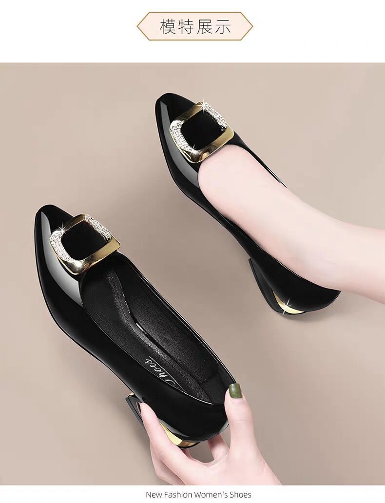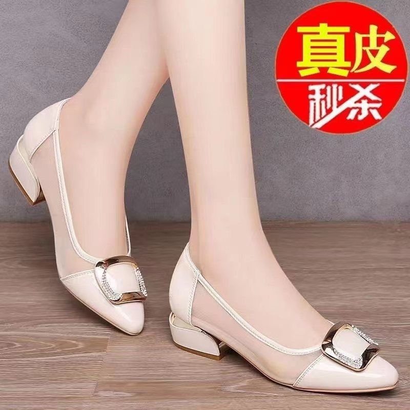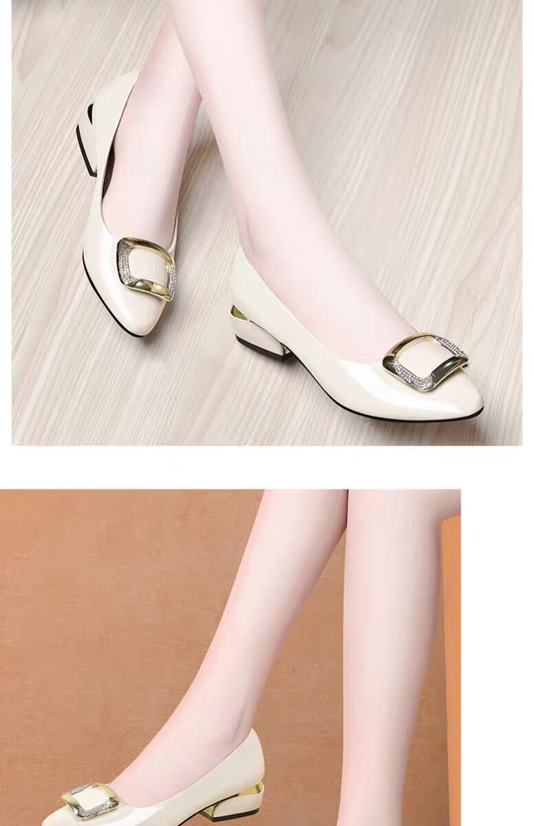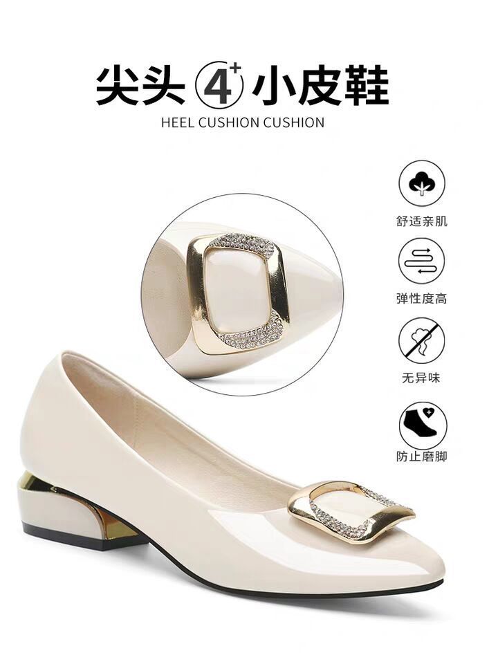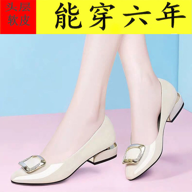 도매 부드러운 가죽 작업화 여성용 신상 사계절 다용도 중굽 단화 굽이 두꺼운 얕은 구두 여성용 직업용 엄마 가죽 신발스토어 가기