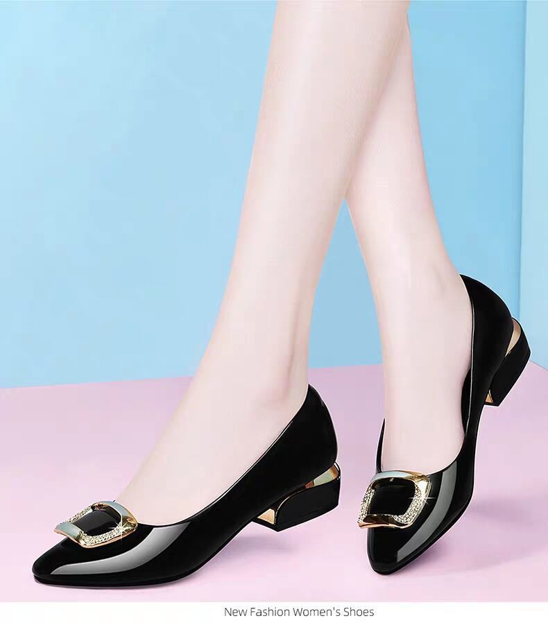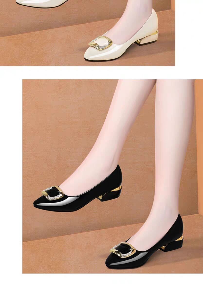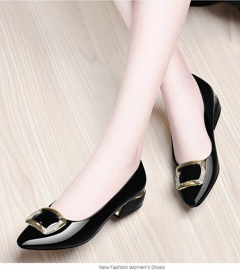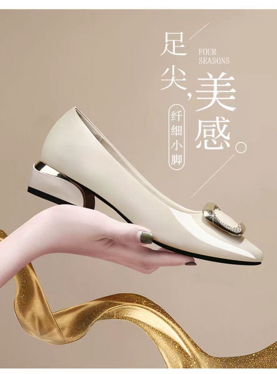 도매 부드러운 가죽 작업화 여성용 신상 사계절 다용도 중굽 단화 굽이 두꺼운 얕은 구두 여성용 직업용 엄마 가죽 신발스토어 가기