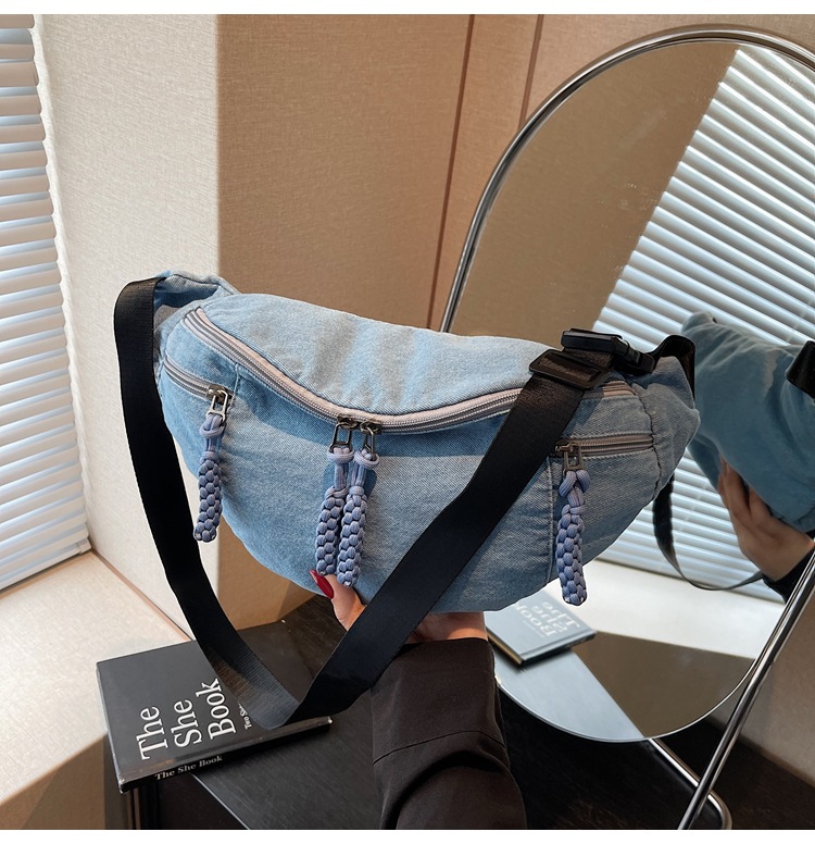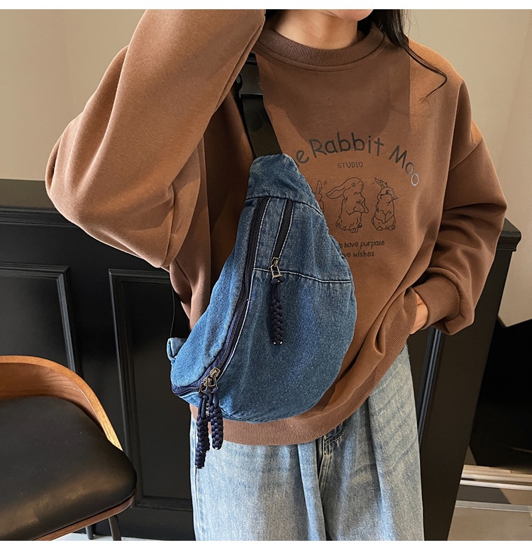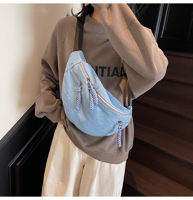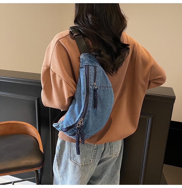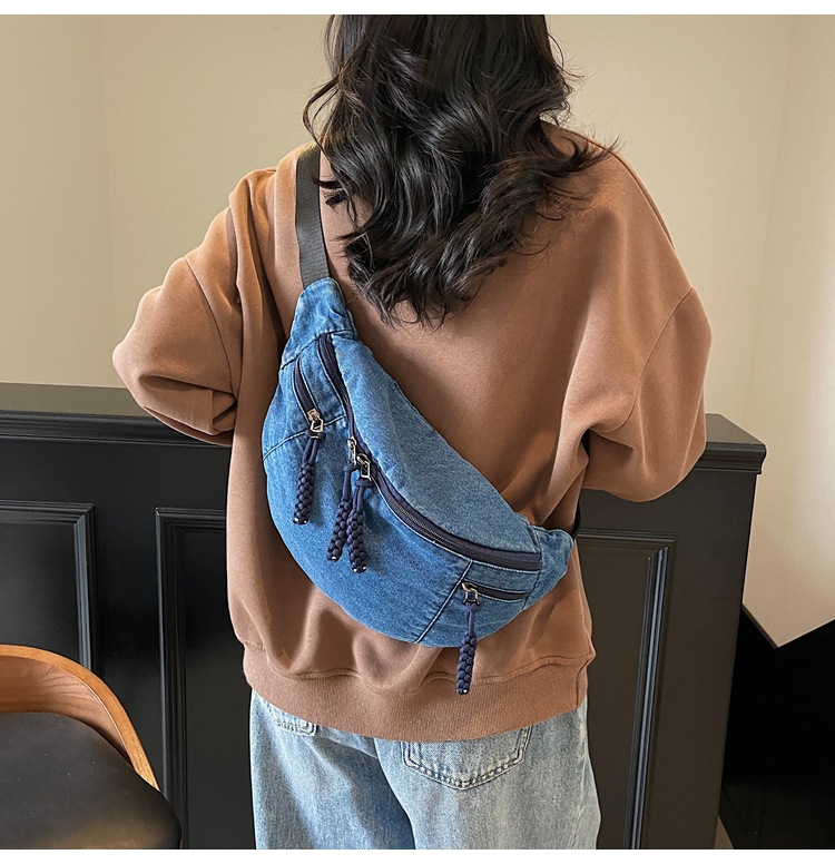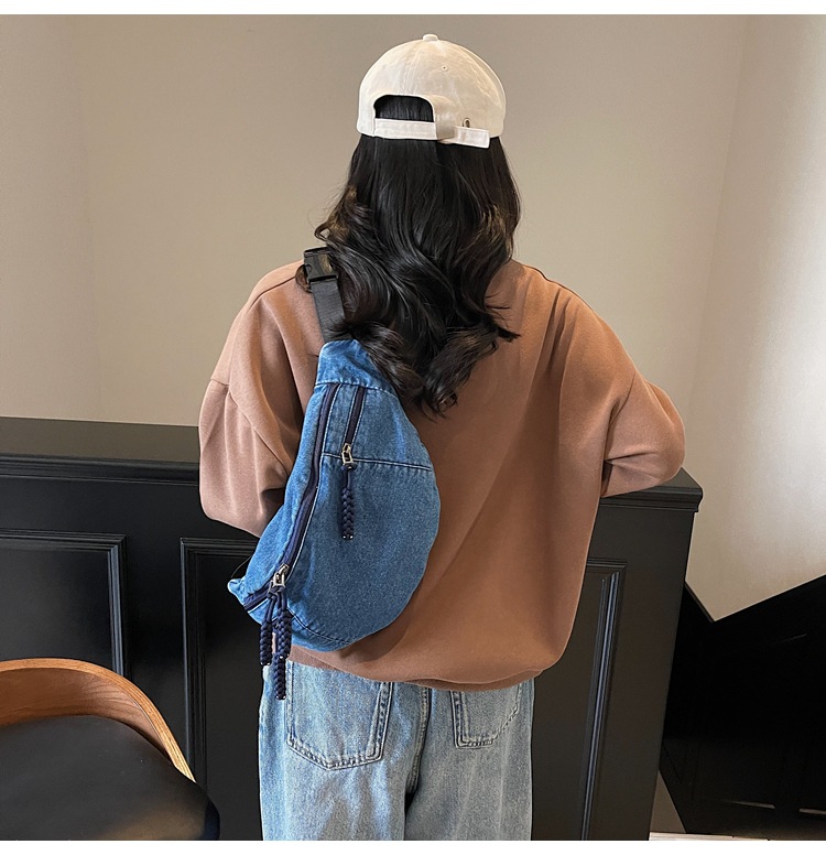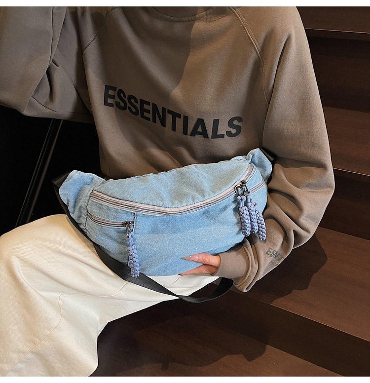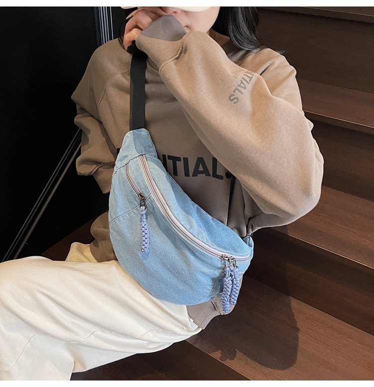 가슴 가방 여자 슈퍼 핫 올 매치 데님 크로스 바디 백 소년 패션 브랜드 허리 가방 스포츠 승마 캐주얼 어깨 가방스토어 가기
