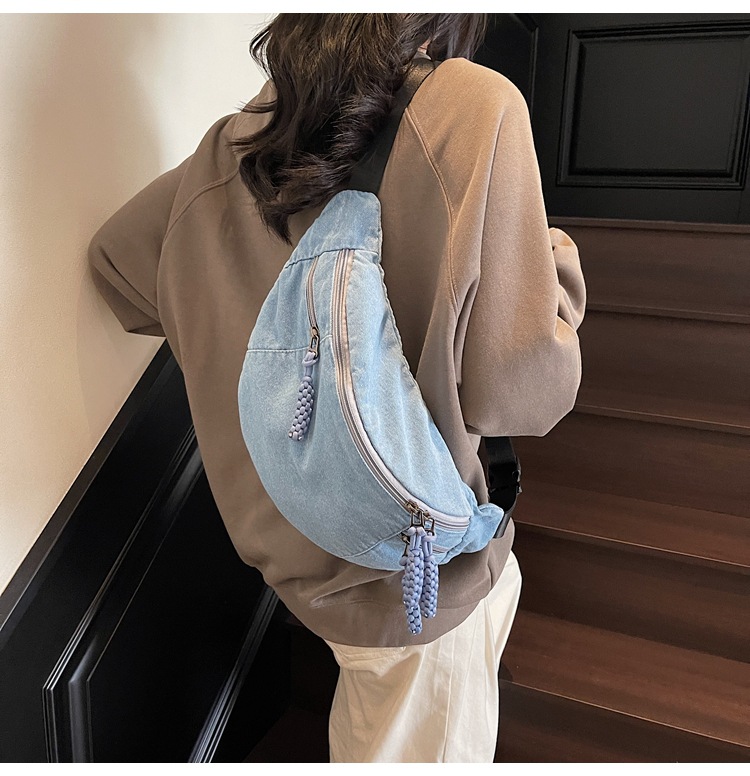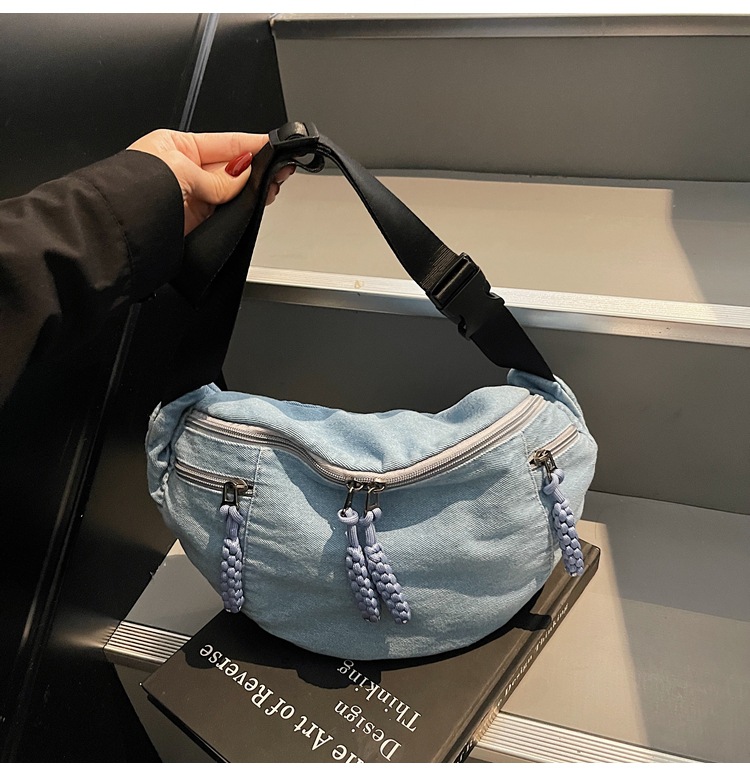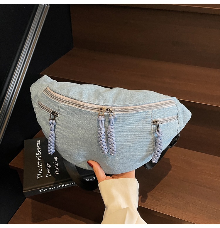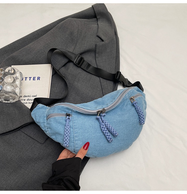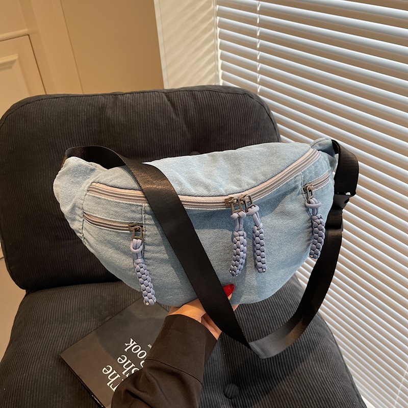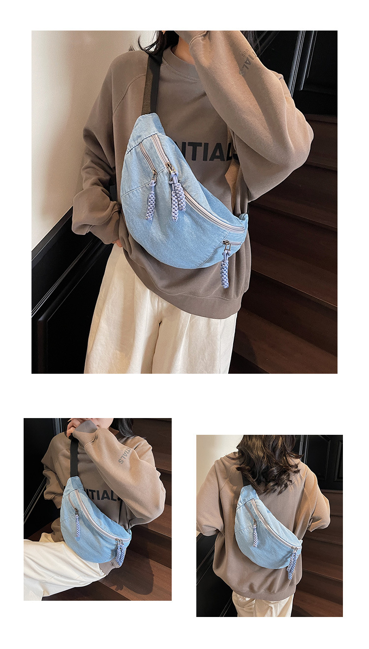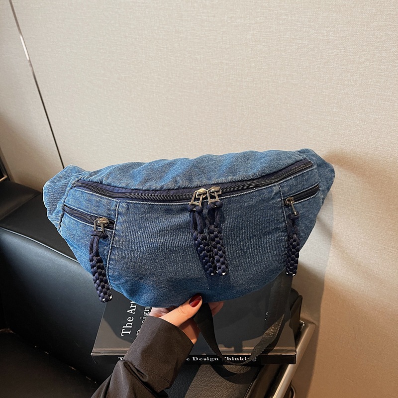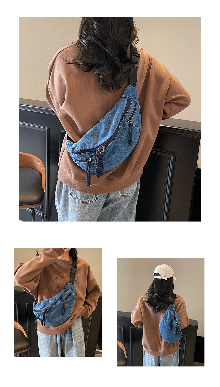 가슴 가방 여자 슈퍼 핫 올 매치 데님 크로스 바디 백 소년 패션 브랜드 허리 가방 스포츠 승마 캐주얼 어깨 가방스토어 가기