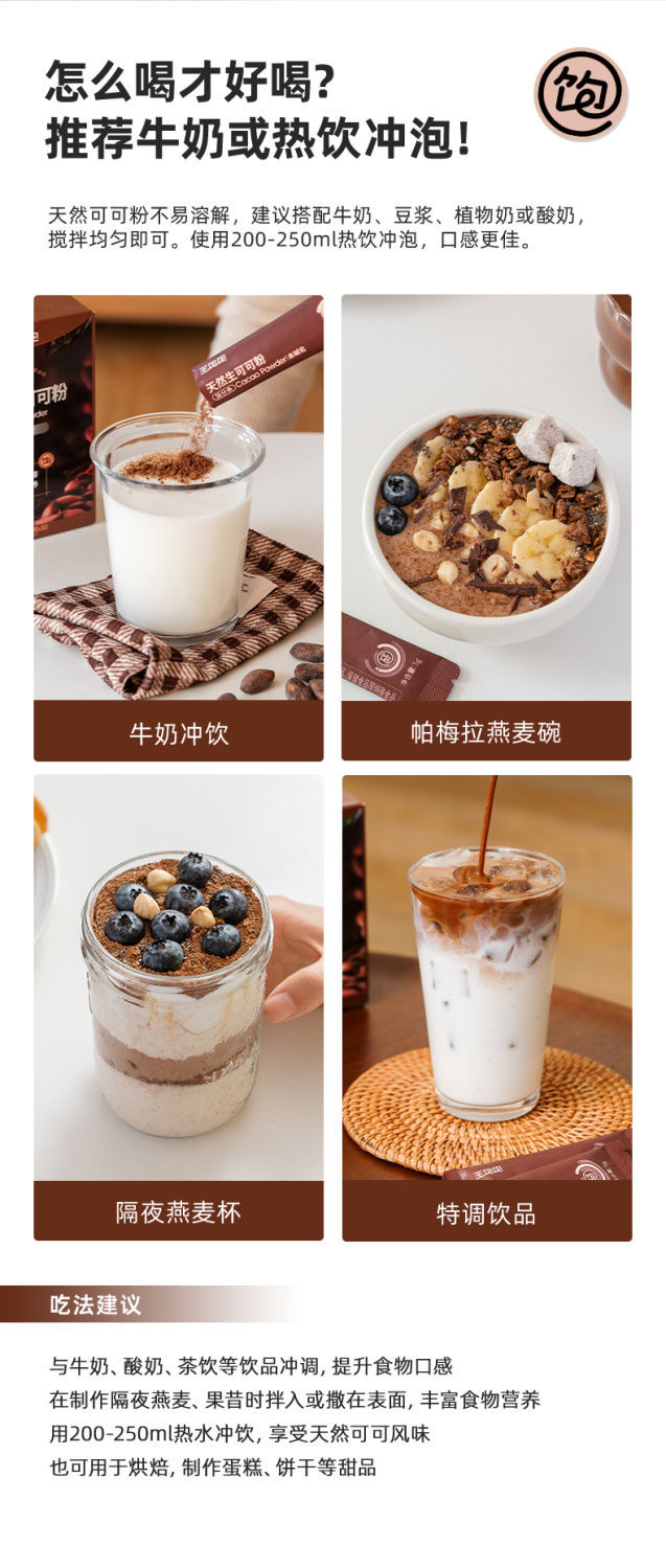왕 전체 천연 생 코코아 파우더 10 봉지 개별적으로 포장 된 무 알칼리화 코코아 파우더 아침 식사 동반자 공식 정품스토어 가기