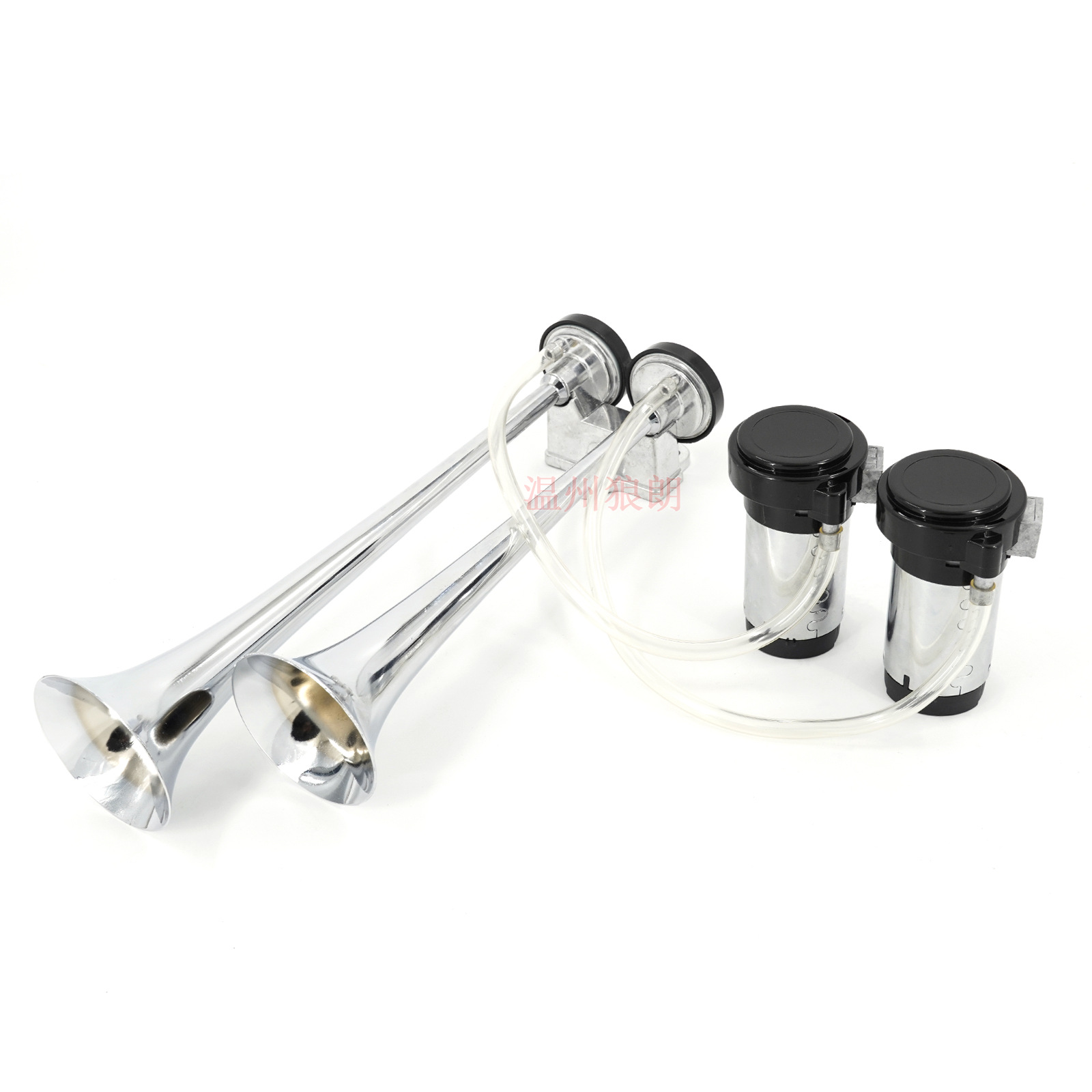 12V 금속 도금 실버 2 튜브 에어 혼 더블 모터 슈퍼 사이렌 자동차 픽업 트럭 수정스토어 가기