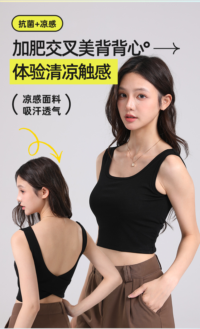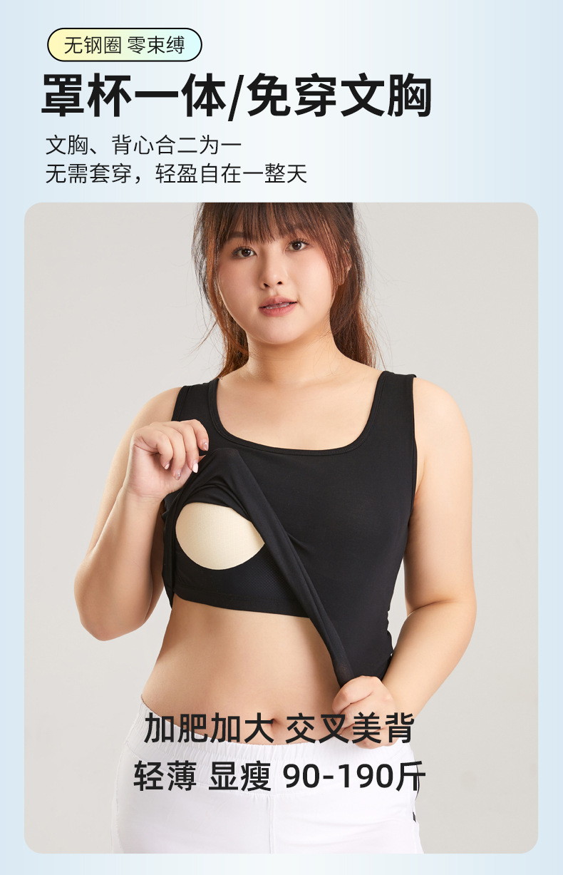 Lyocell 멋진 뷰티 백 플러스 뚱뚱한 플러스 사이즈 가슴 패드와 고정 통합 크로스 백리스 카미 솔 조끼스토어 가기