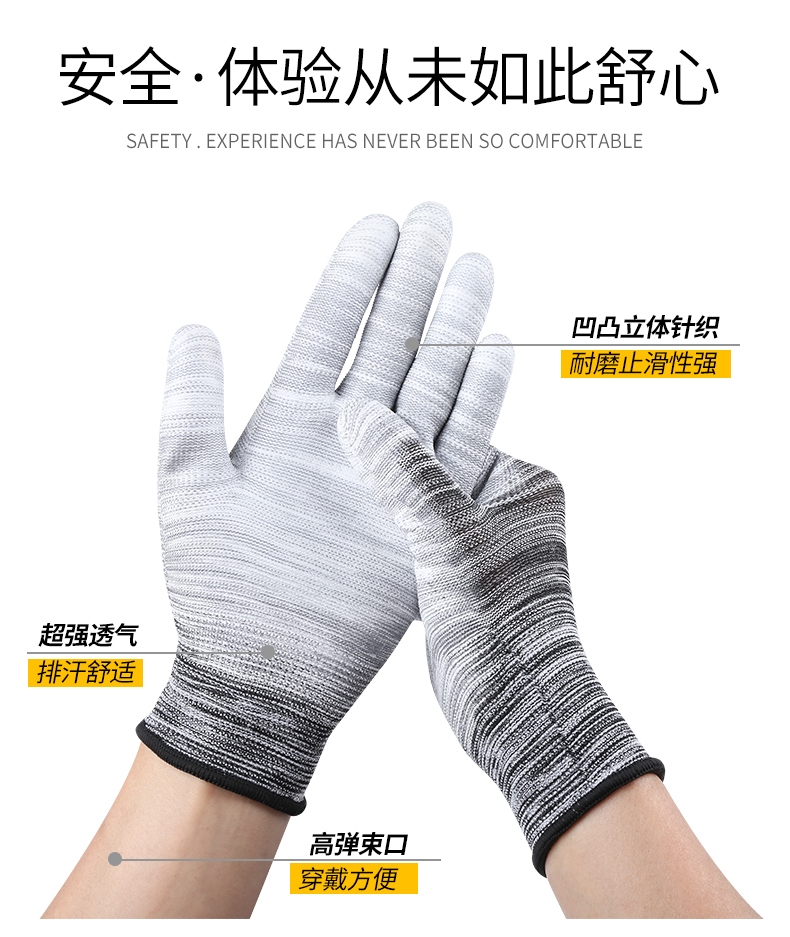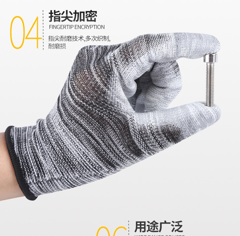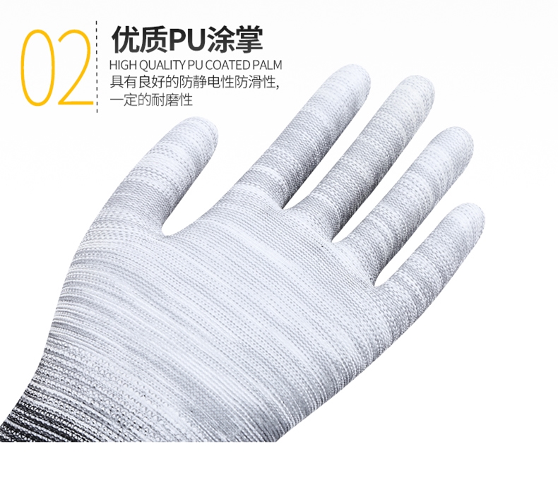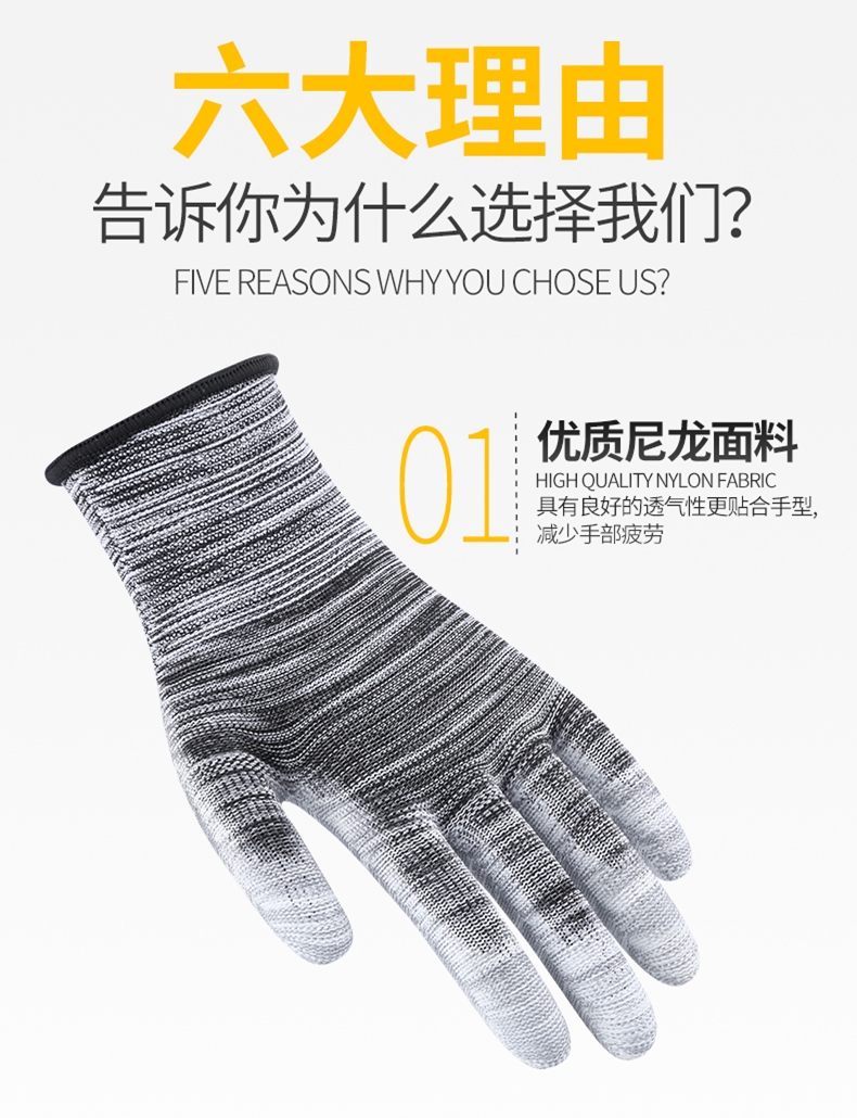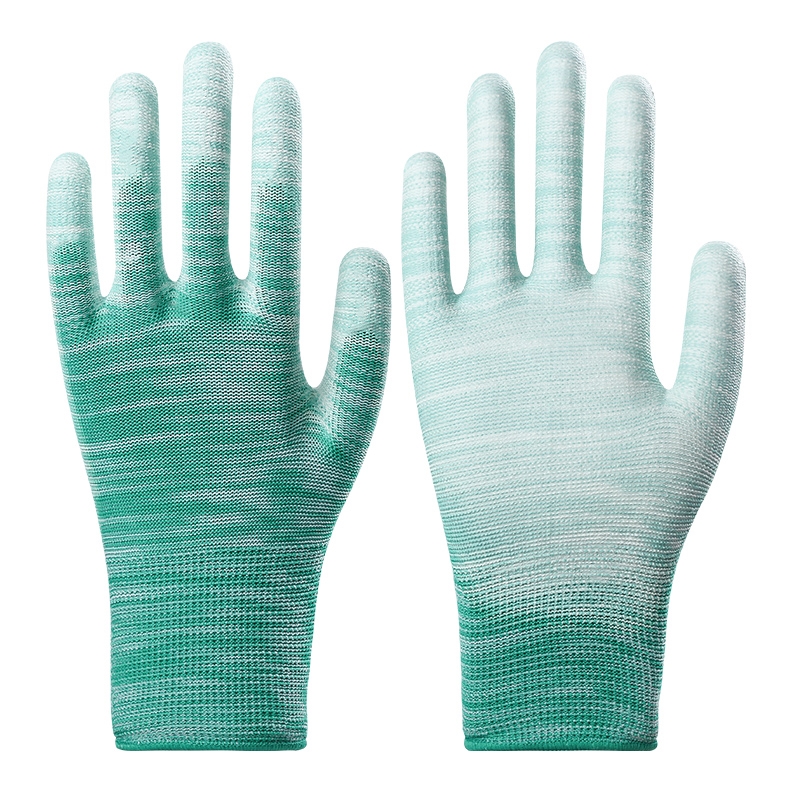PU 함침 플라스틱 손가락 코팅 나일론 장갑 노동 보호 작업 내마모성 미끄럼 통기성 작업 포장 얇은 고무