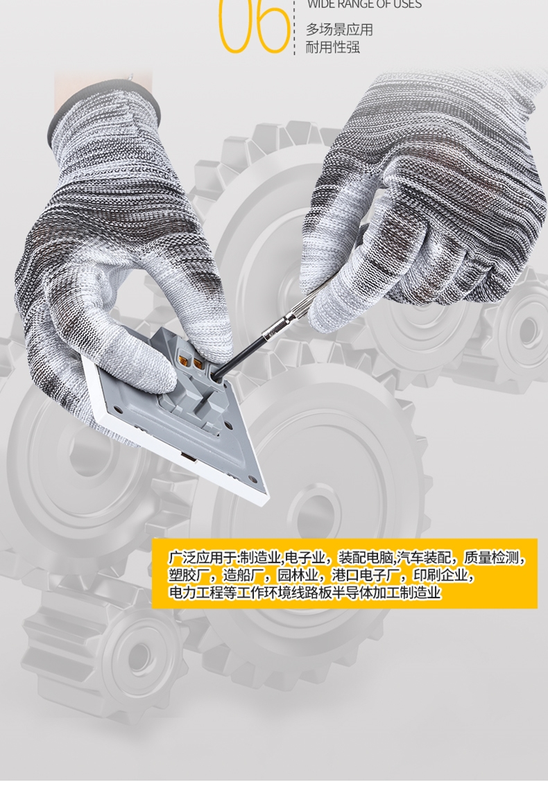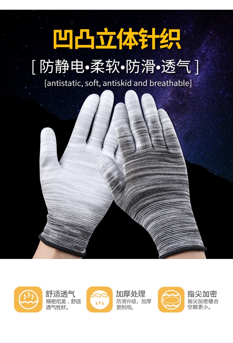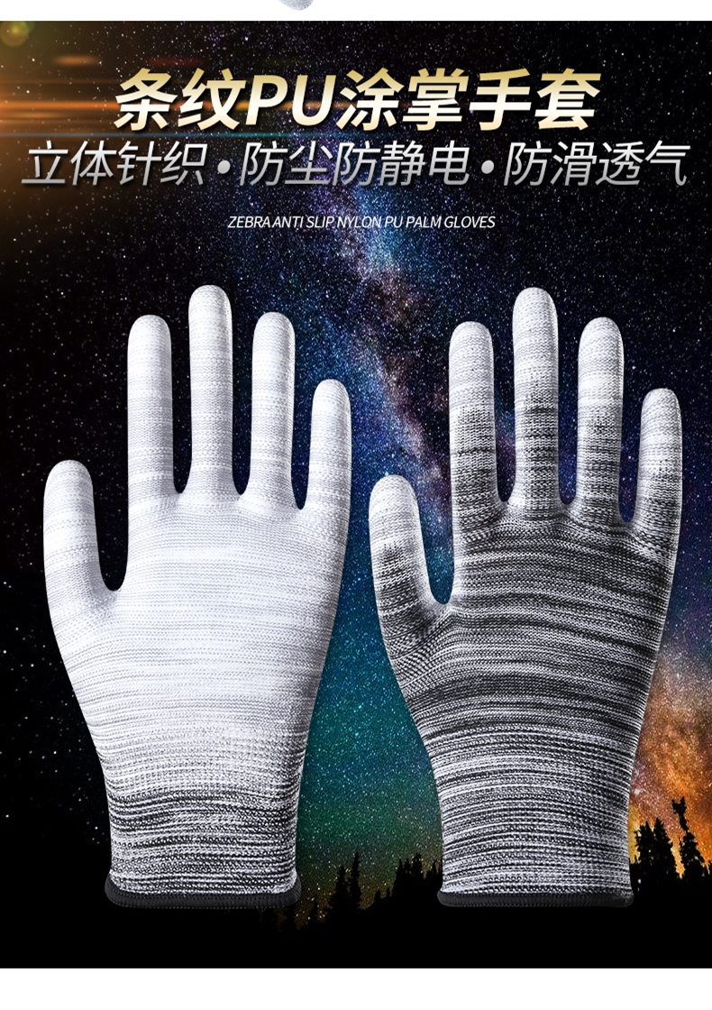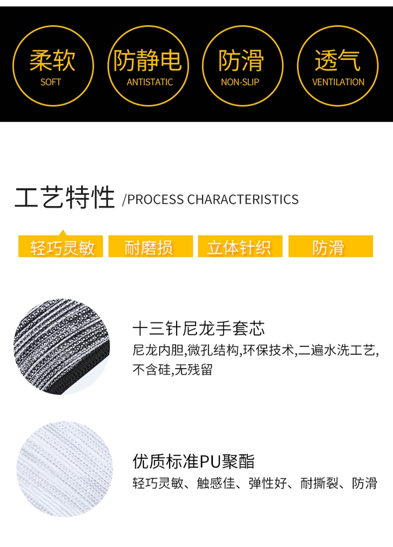 PU 함침 플라스틱 손가락 코팅 나일론 장갑 노동 보호 작업 내마모성 미끄럼 통기성 작업 포장 얇은 고무