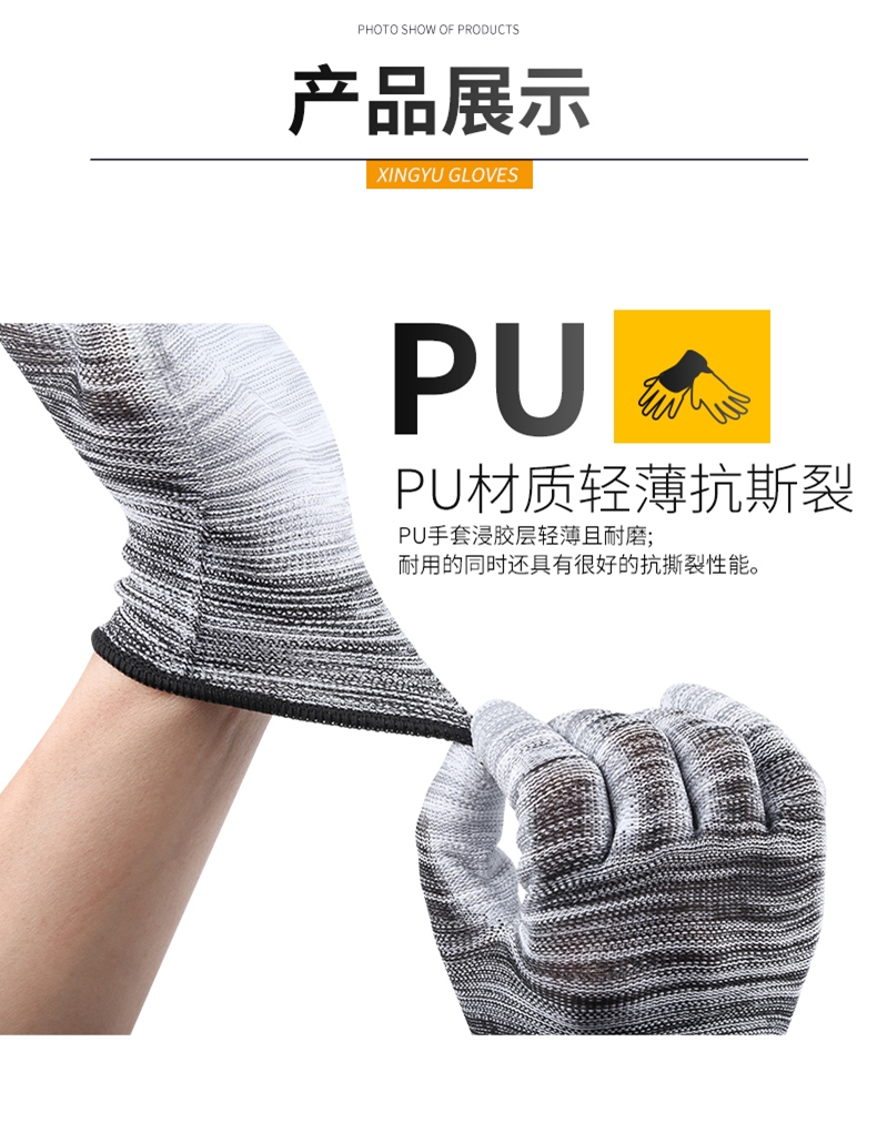 PU 함침 플라스틱 손가락 코팅 나일론 장갑 노동 보호 작업 내마모성 미끄럼 통기성 작업 포장 얇은 고무스토어 가기