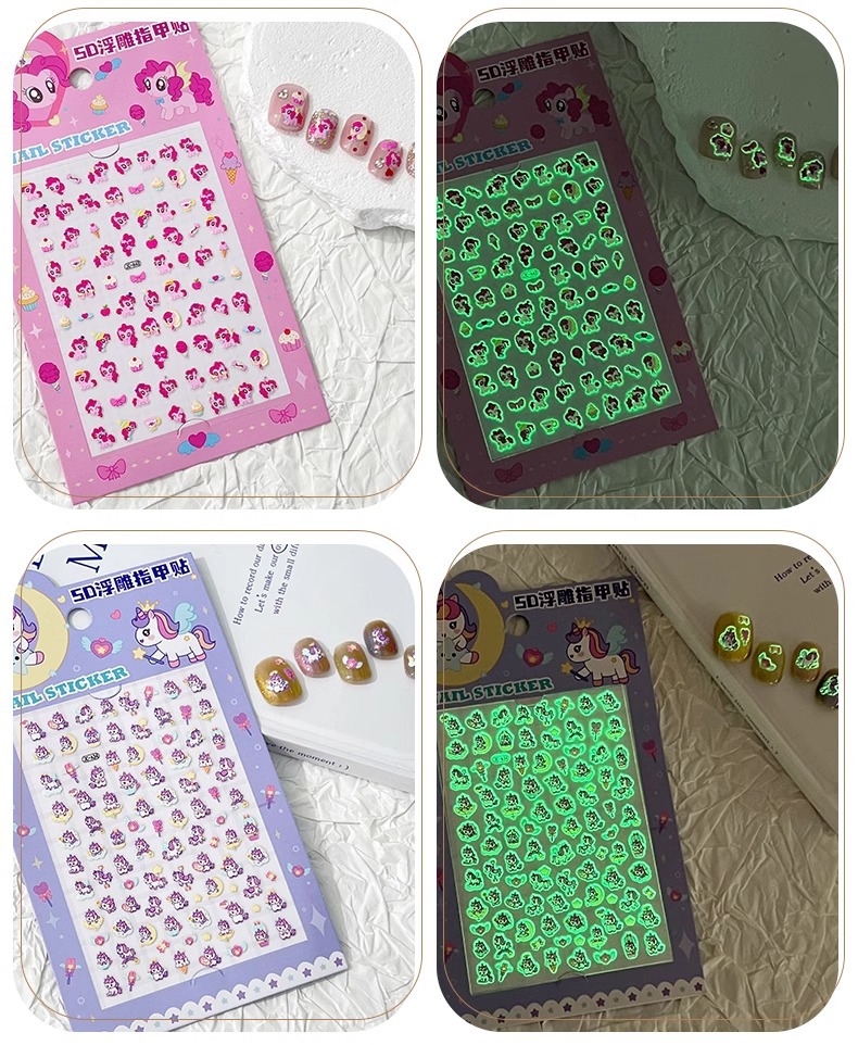 새로운 포니 폴리 스테레오 양각 손 계정 네일 스티커 귀여운 어린이 소녀 만화 장식 방수 네일 아트스토어 가기