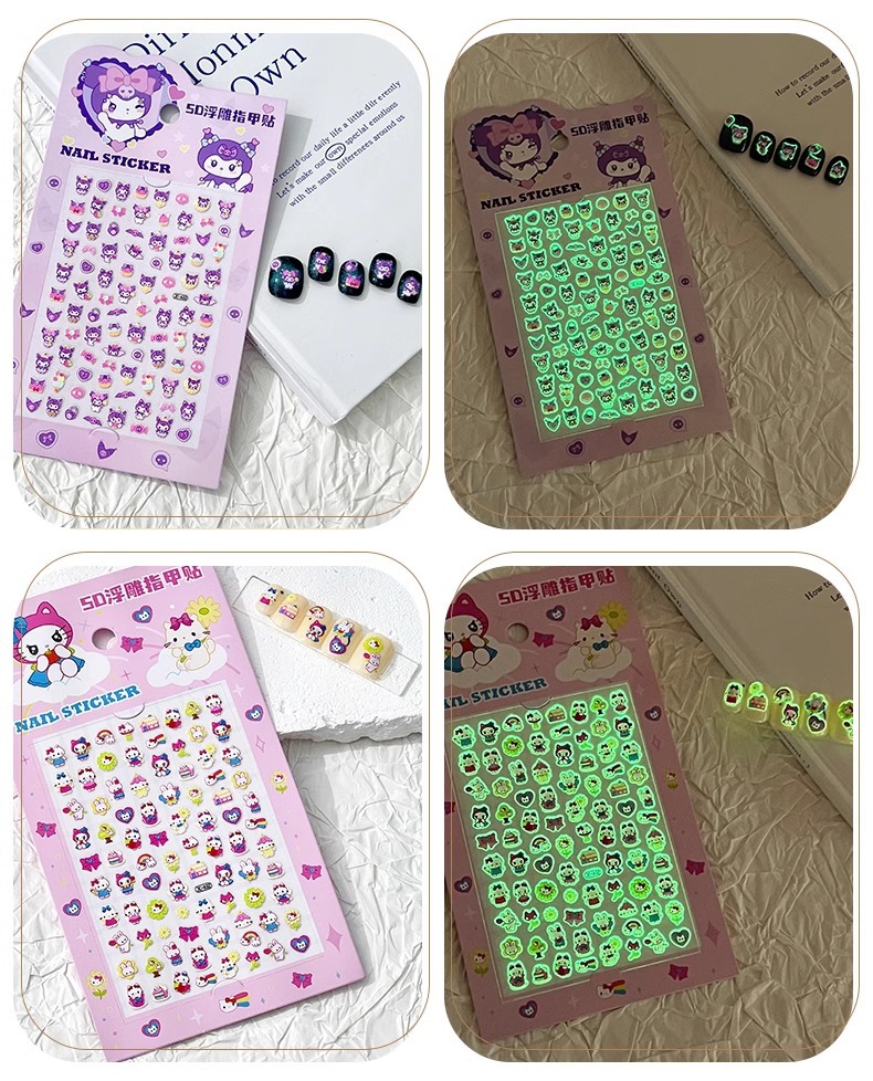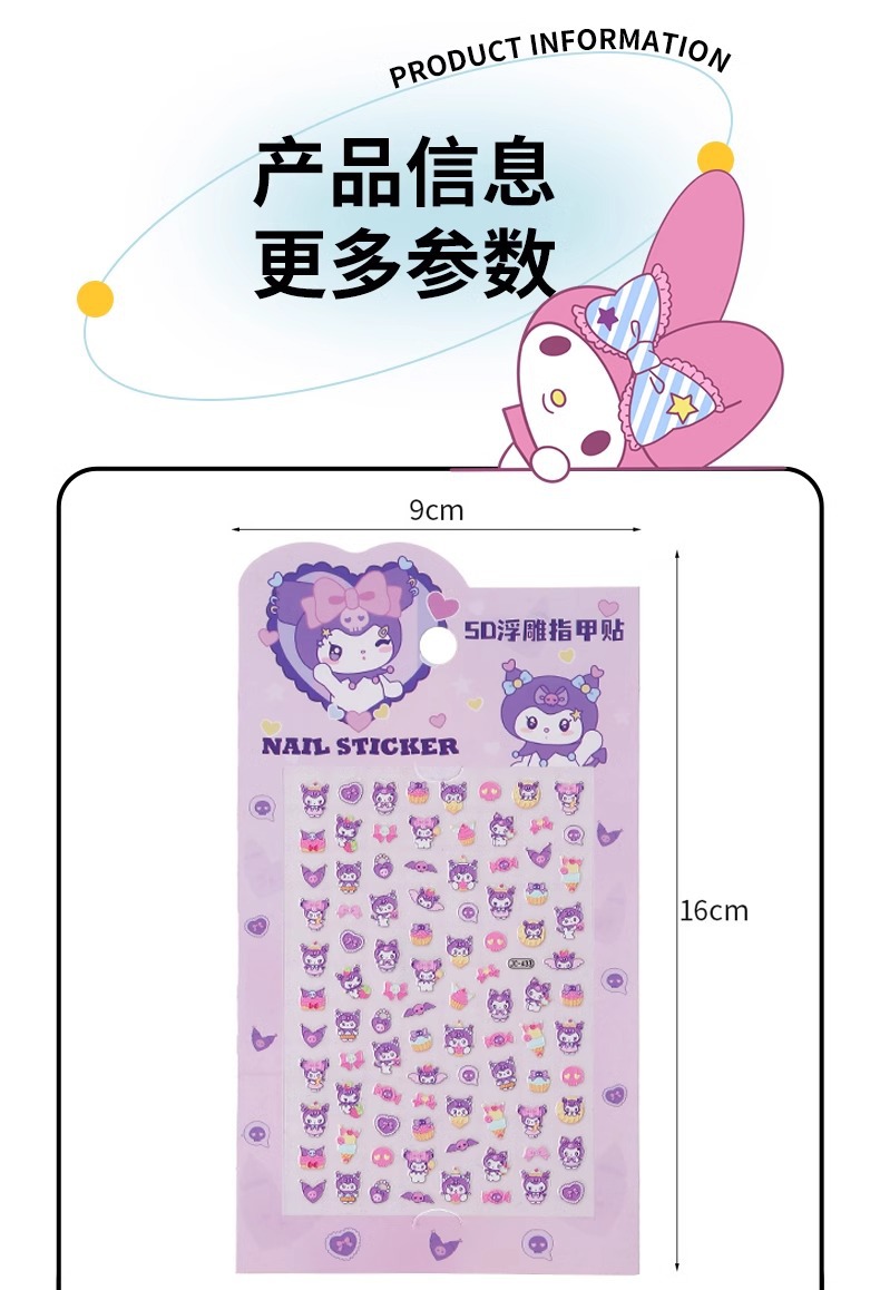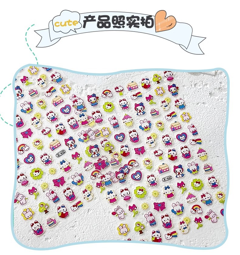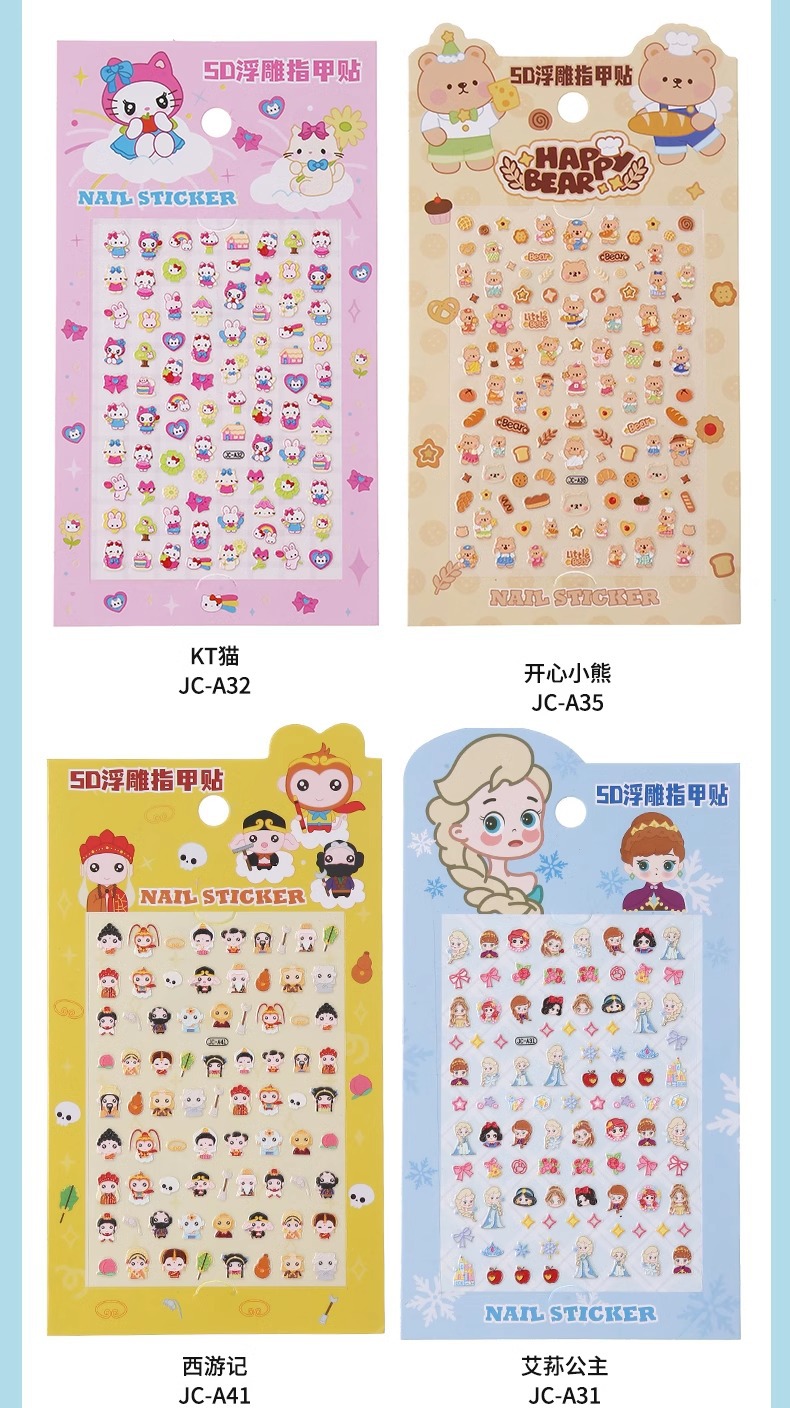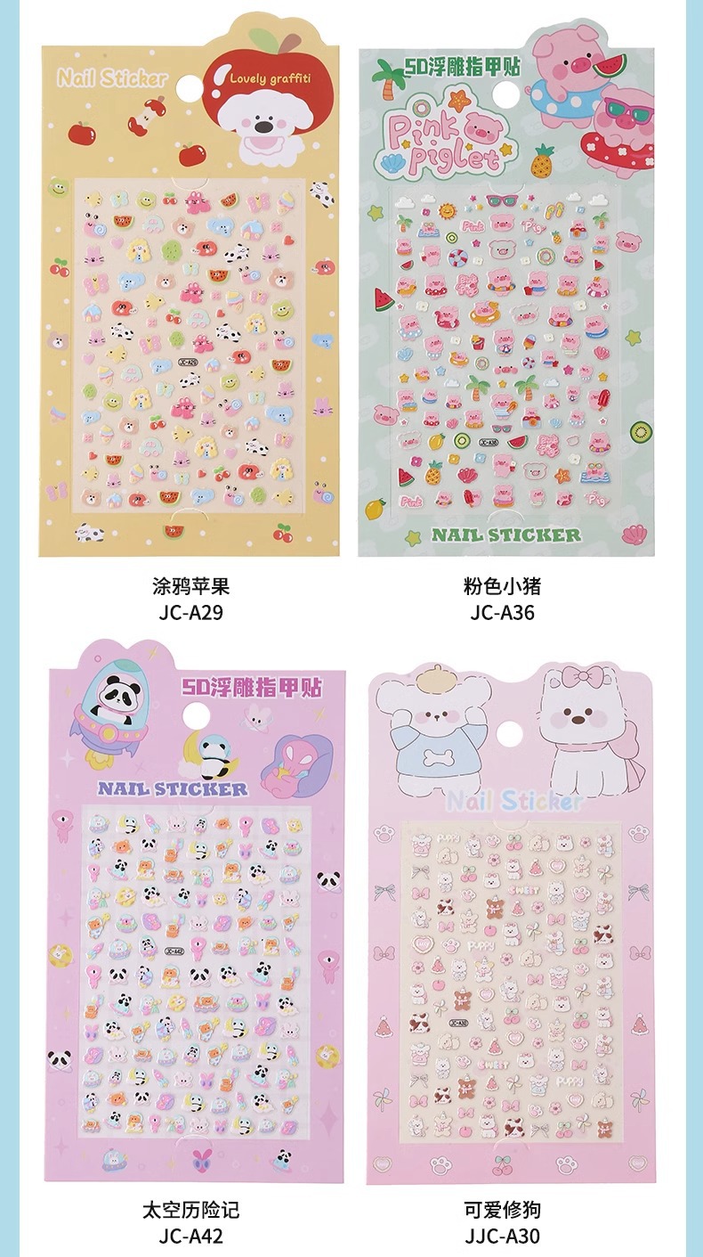 새로운 포니 폴리 스테레오 양각 손 계정 네일 스티커 귀여운 어린이 소녀 만화 장식 방수 네일 아트