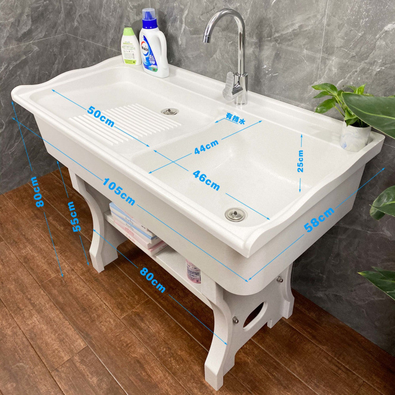 세탁조와 빨래판이 있는 발코니용 가정용 대리석 두꺼운 일체형 석영석 세탁조, 마당용 수조 공장스토어 가기