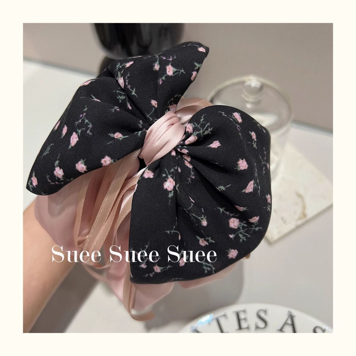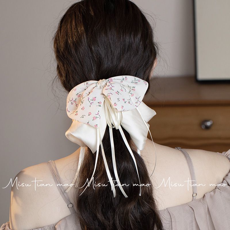 한국 핑크 소녀 꽃 리본 활 파깅 인쇄 프랑스 우아한 높은 포니 테일 클립 한국 스타일 헤어핀스토어 가기