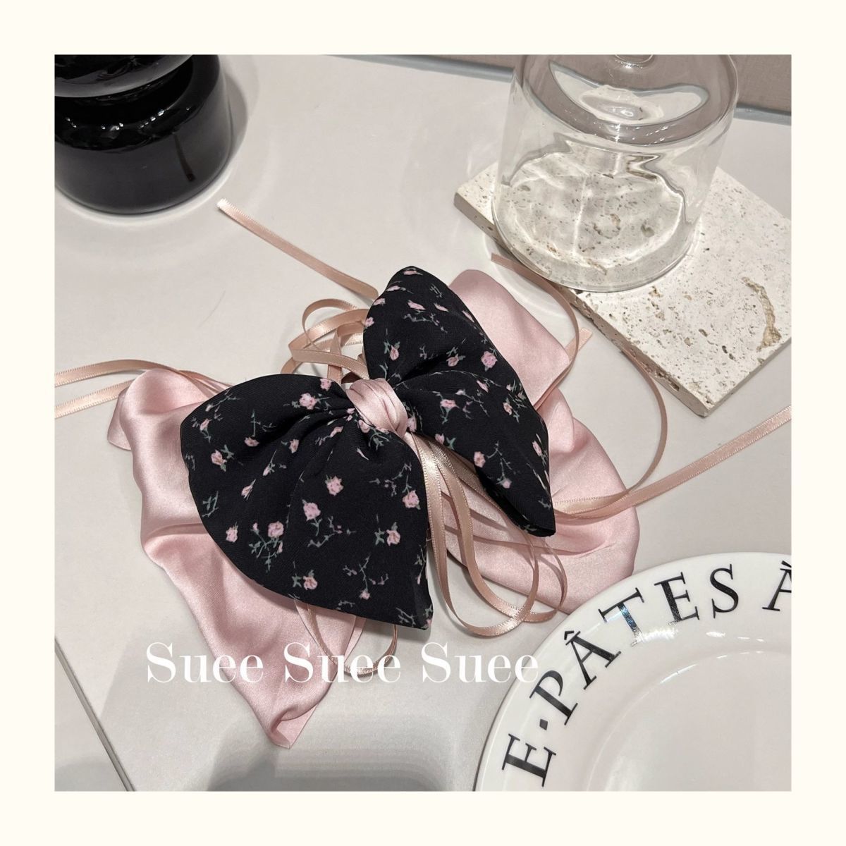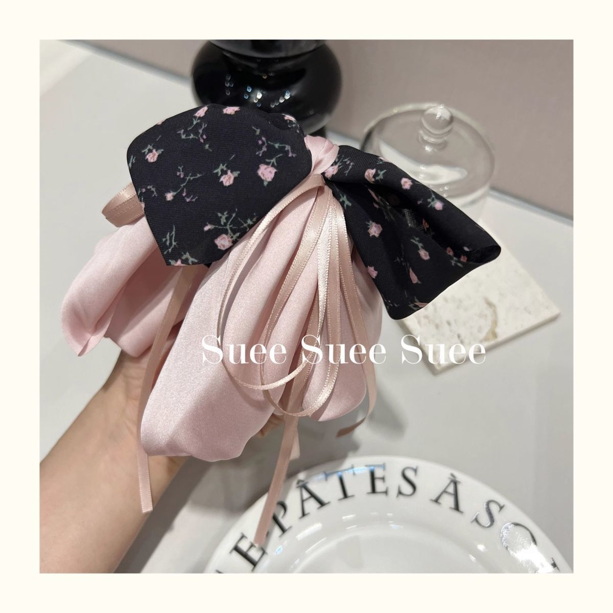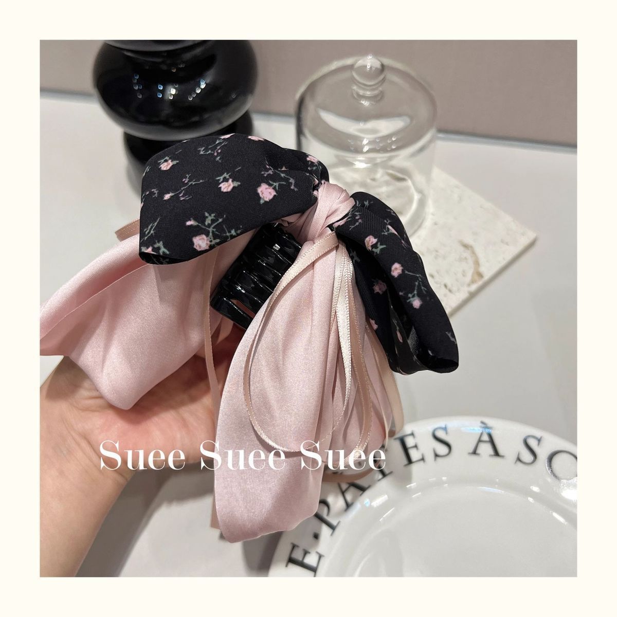 한국 핑크 소녀 꽃 리본 활 파깅 인쇄 프랑스 우아한 높은 포니 테일 클립 한국 스타일 헤어핀