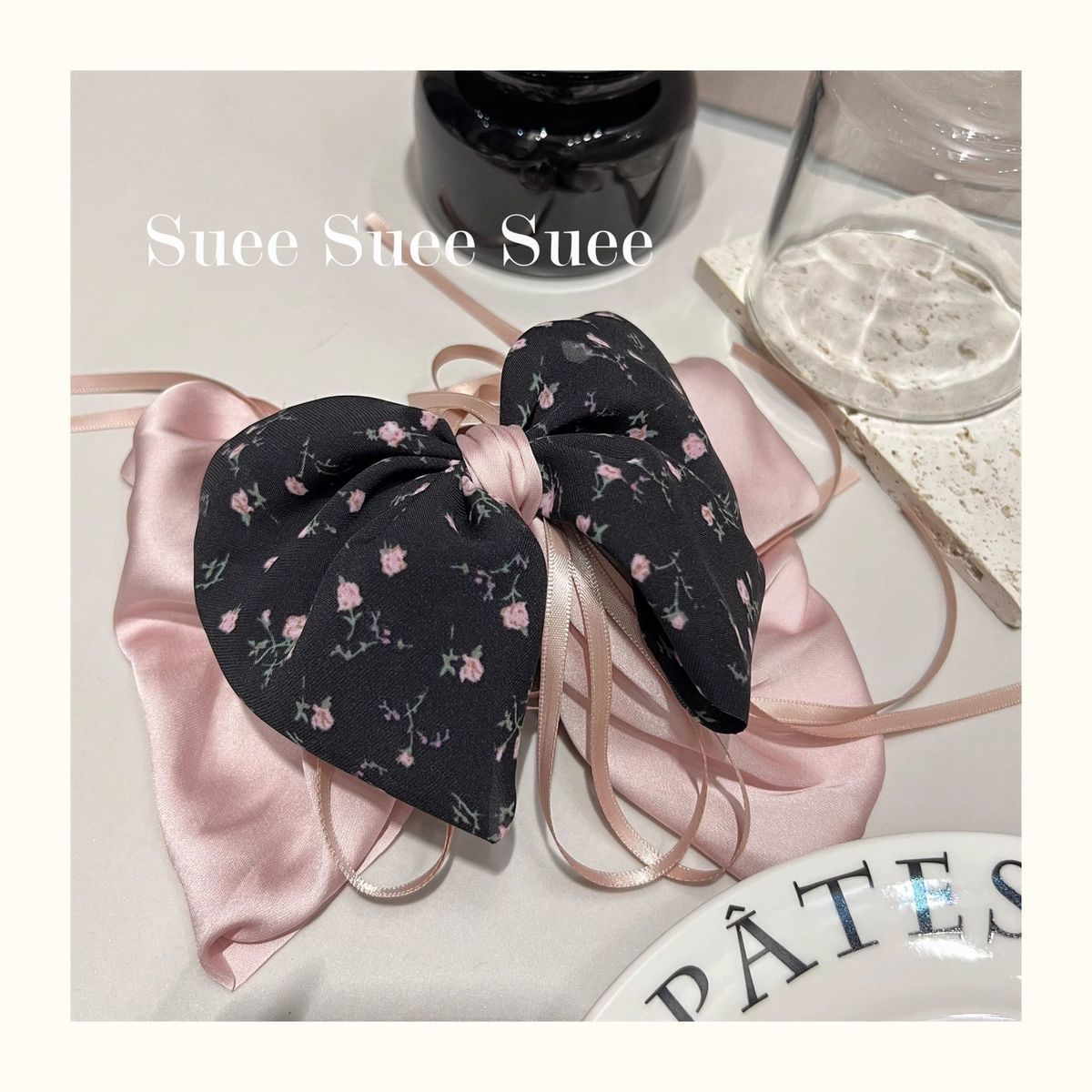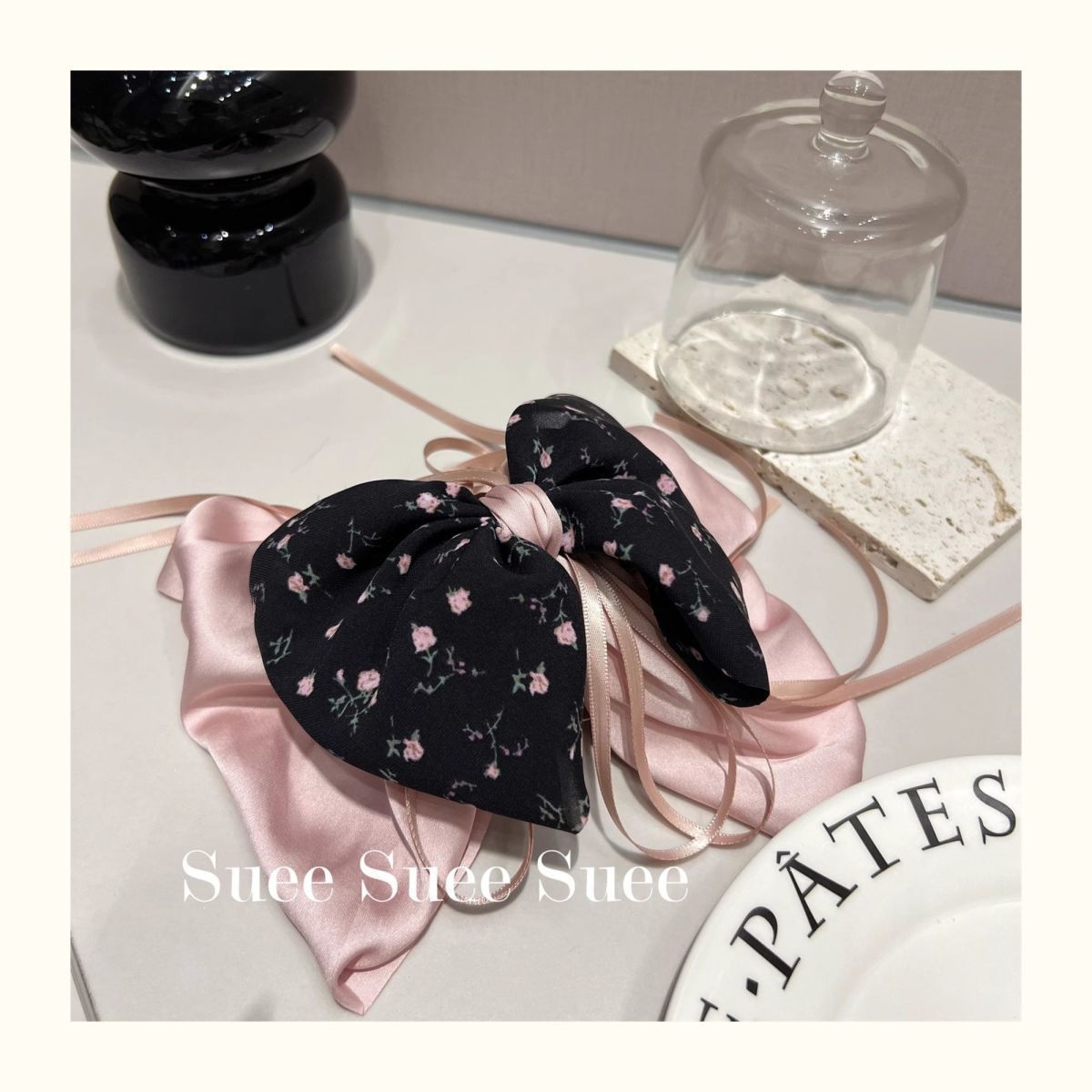• 암흑 핑크 시장 - 블랙 바텀 크러쉬드 플라워 포니테일 클립