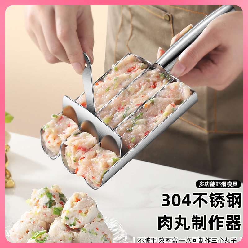 ✅ 304 스테인레스 스틸 미트볼 제조기, 가정용 생선볼 및 새우 슬라이드 몰드, 주먹밥 및 고기 필링 조리용 스쿠프스토어 가기