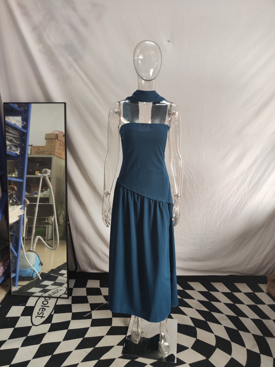 스팟 2025 가을 겨울 국경 여성 의류 새로운 패션 기질 라운드 넥 긴팔 슬림 피트 힙 포옹 스플 라이스 드레스