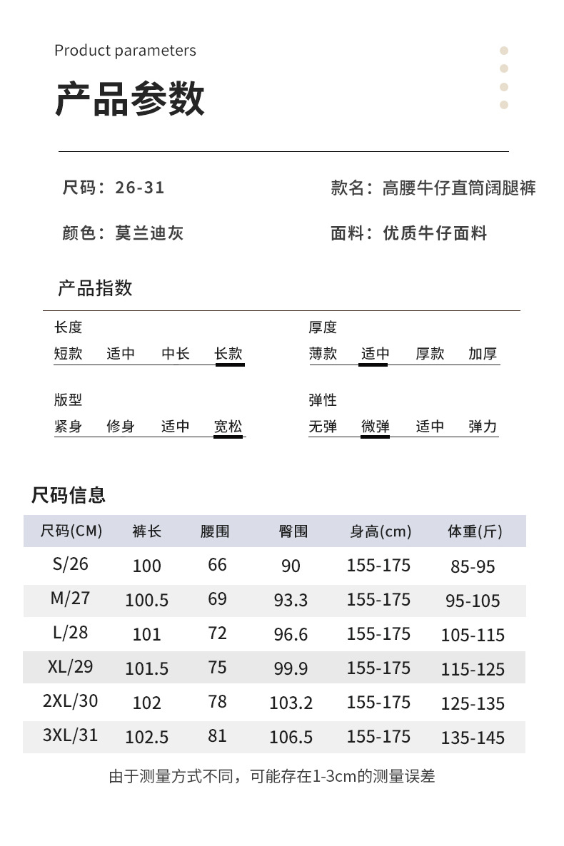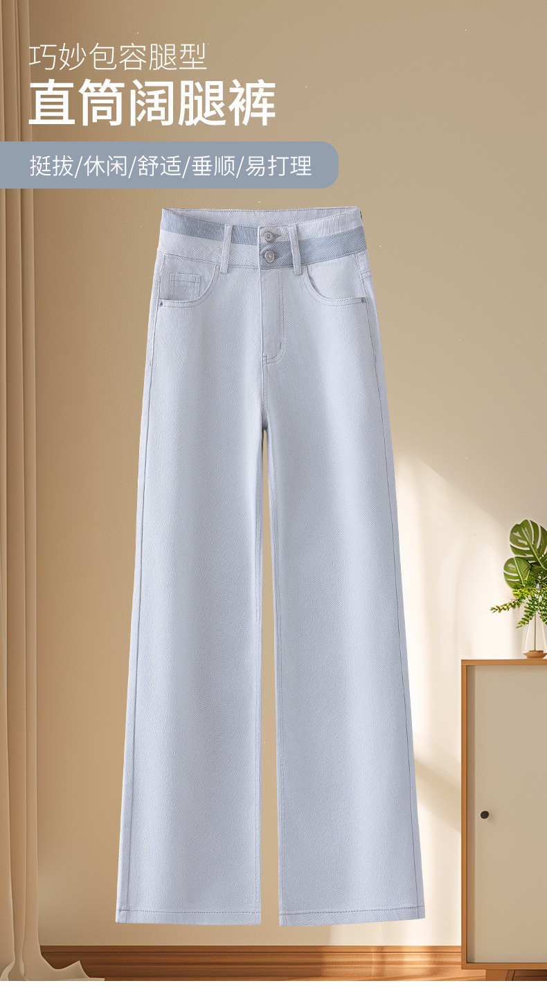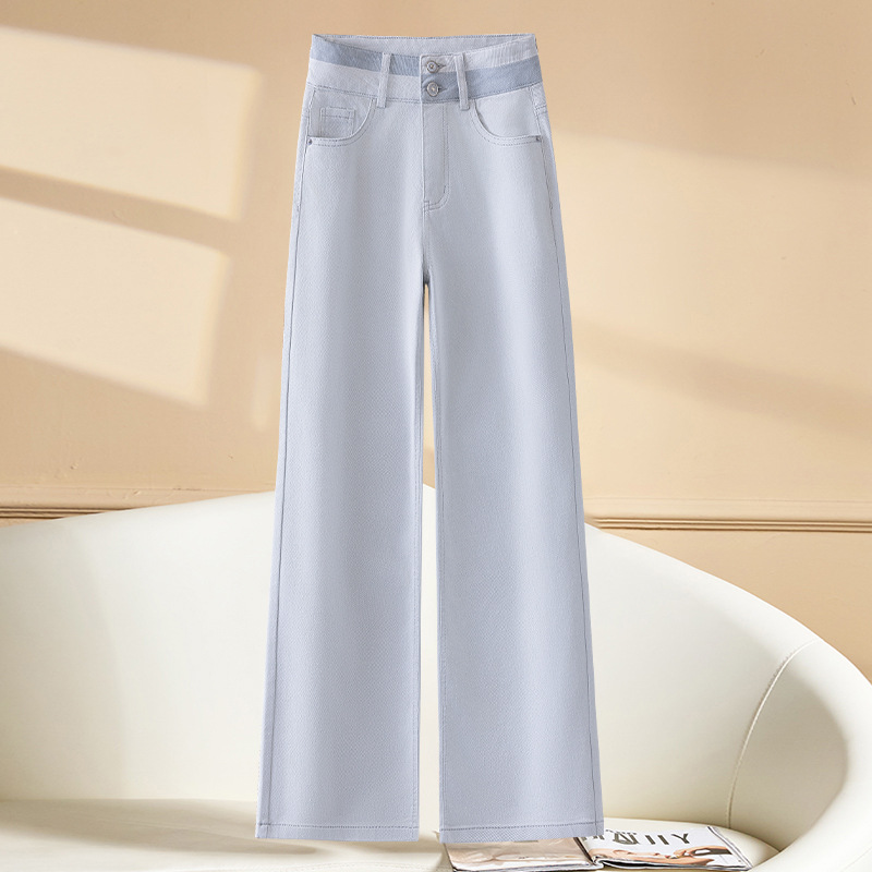 모란디 그레이 슬림핏 와이드 레그 청바지 여성용 2026 봄/가을 신상 하이웨이스트 슬림핏 다용도 캐주얼 스트레이트 팬츠