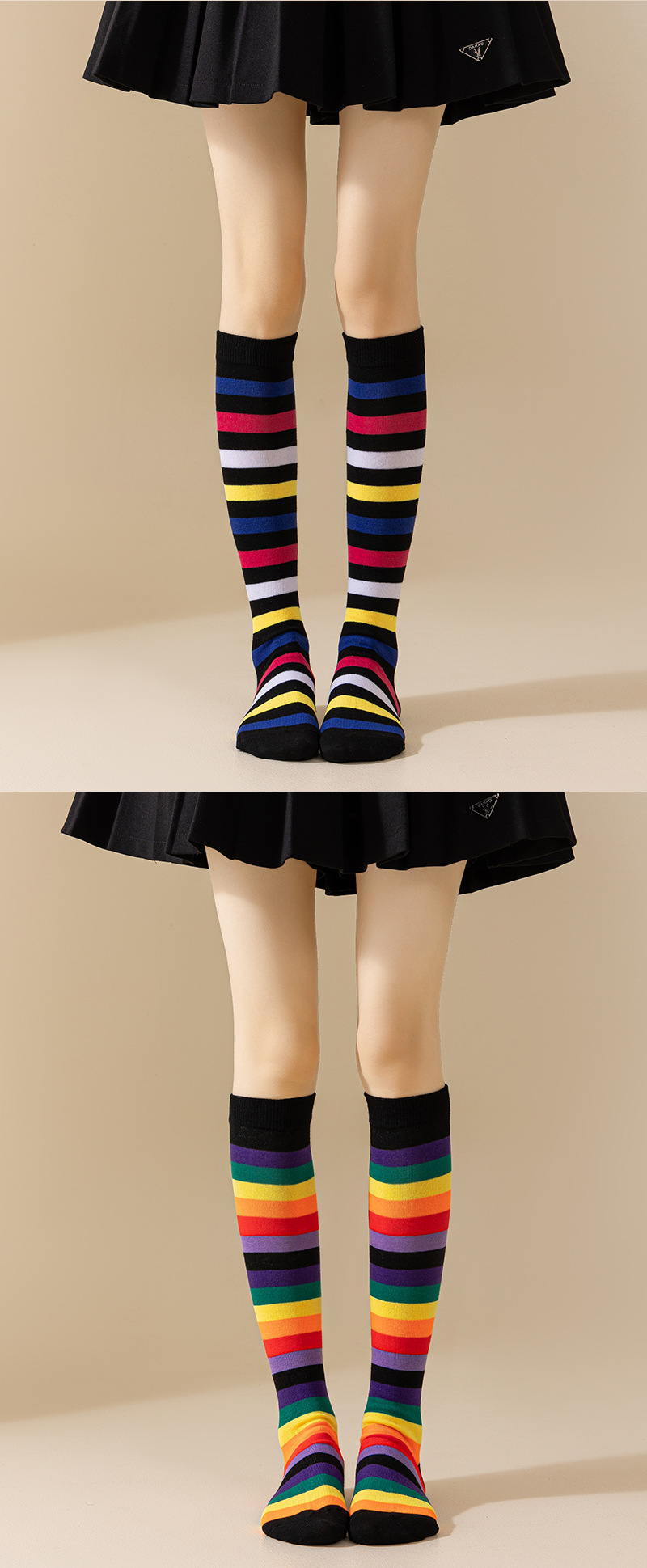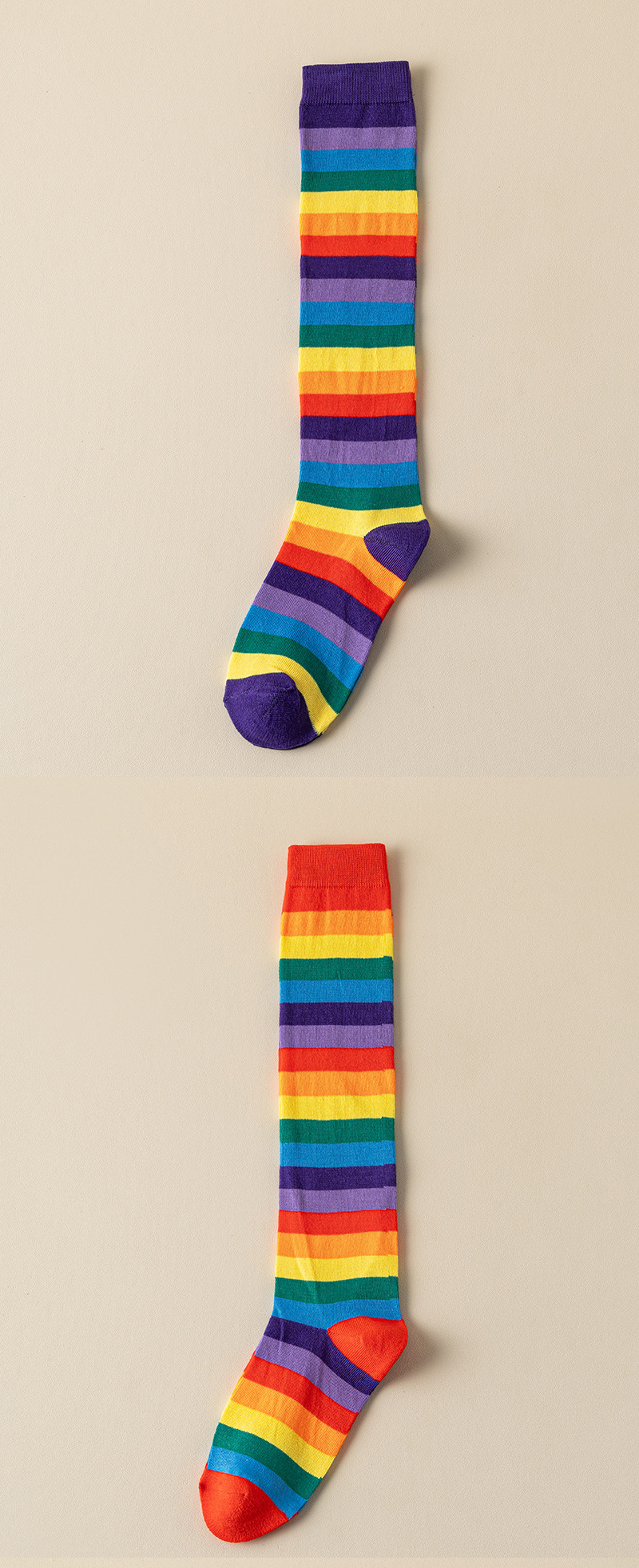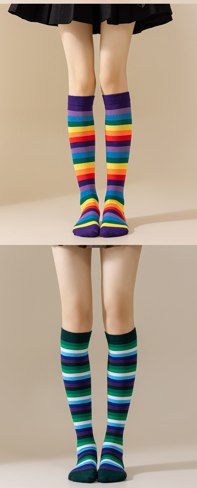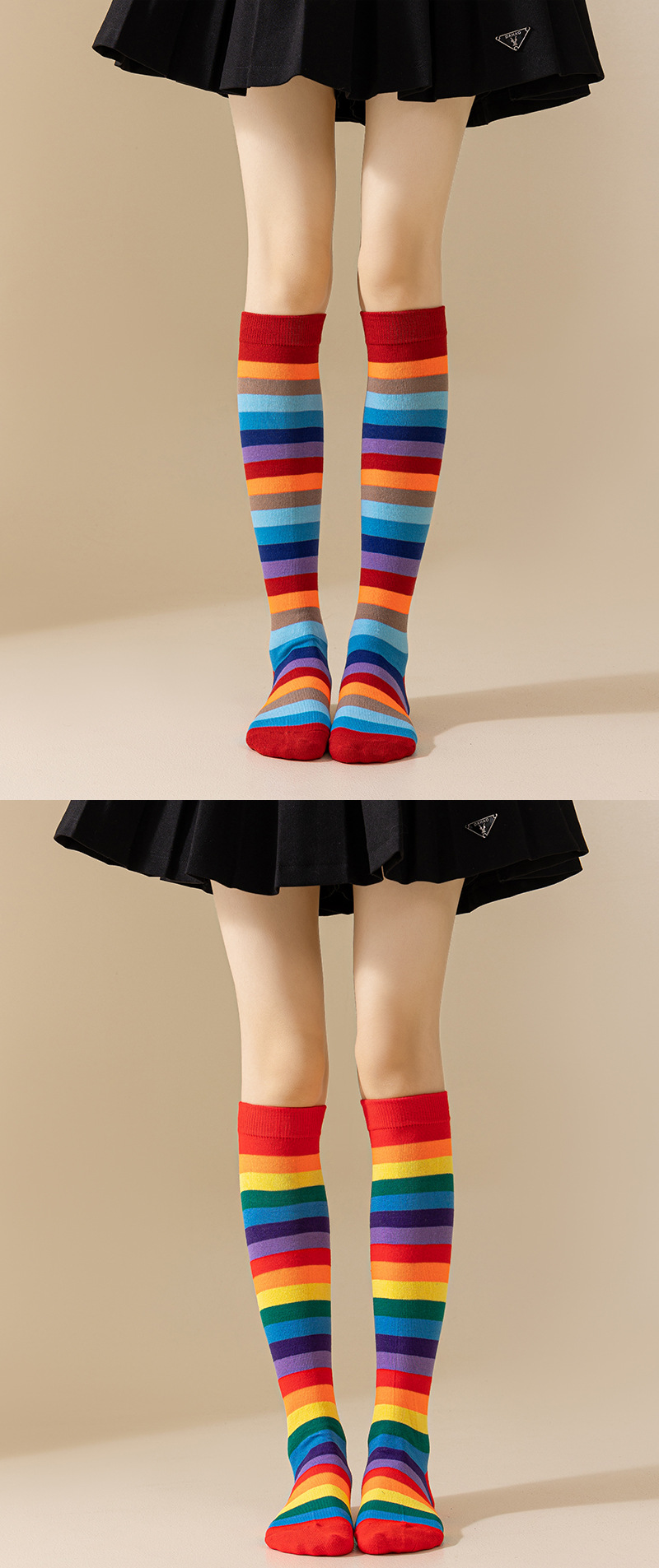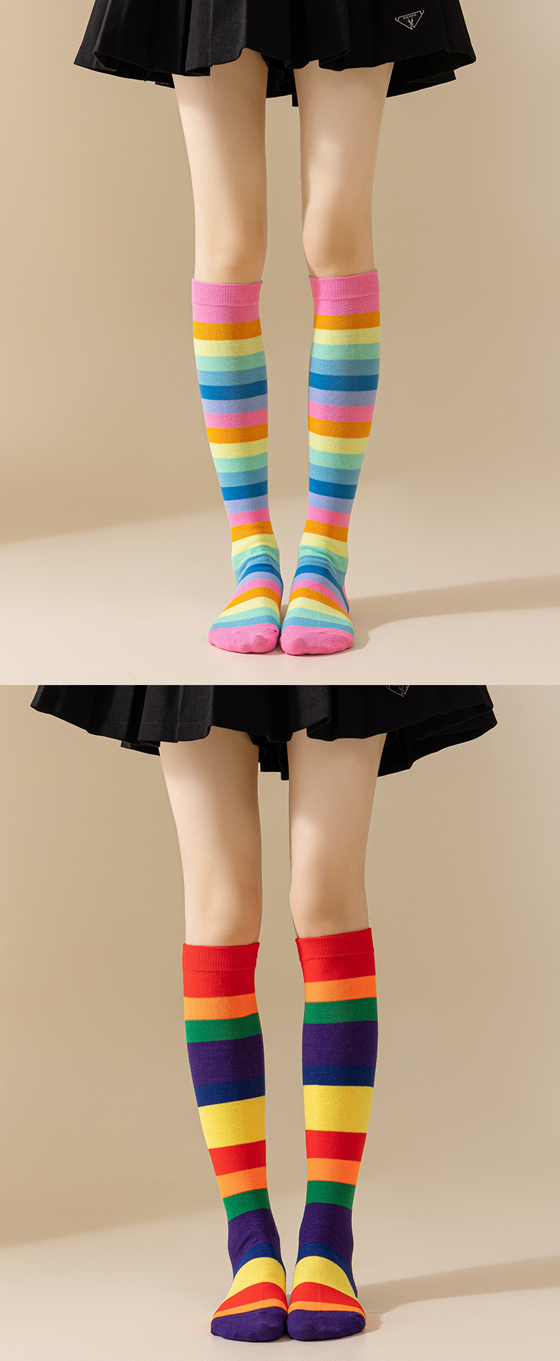 국경 간 무지개 줄무늬 유럽과 미국 양말 여자 긴 배럴 파티 공연 할로윈 코스프레 신 다리 양말스토어 가기