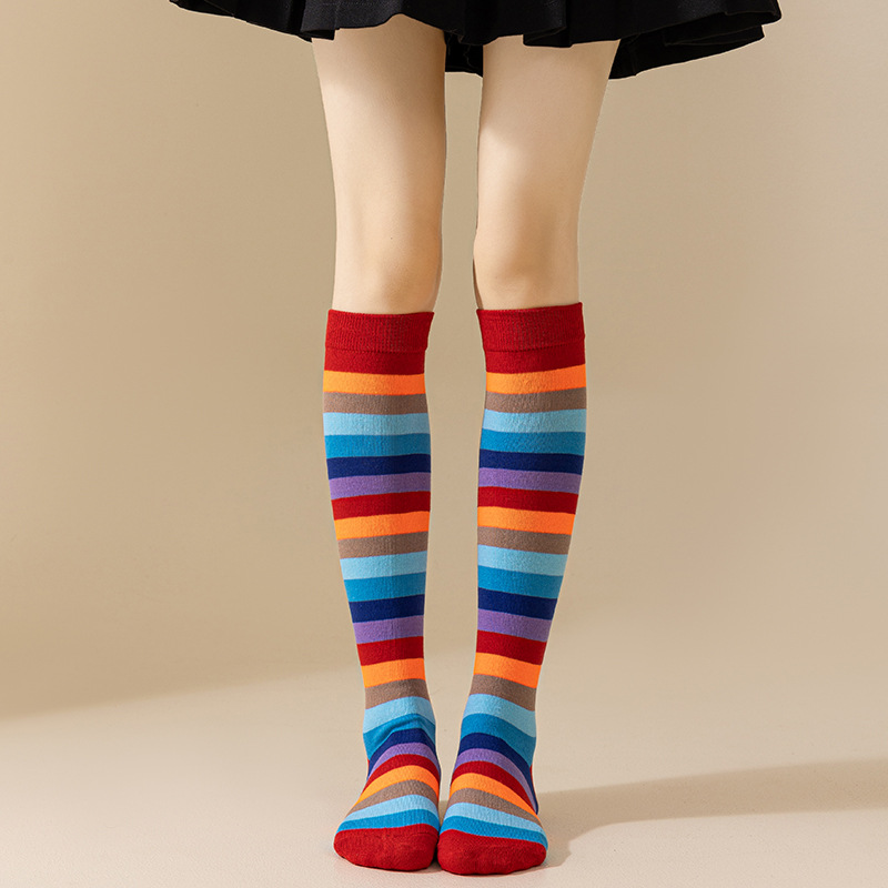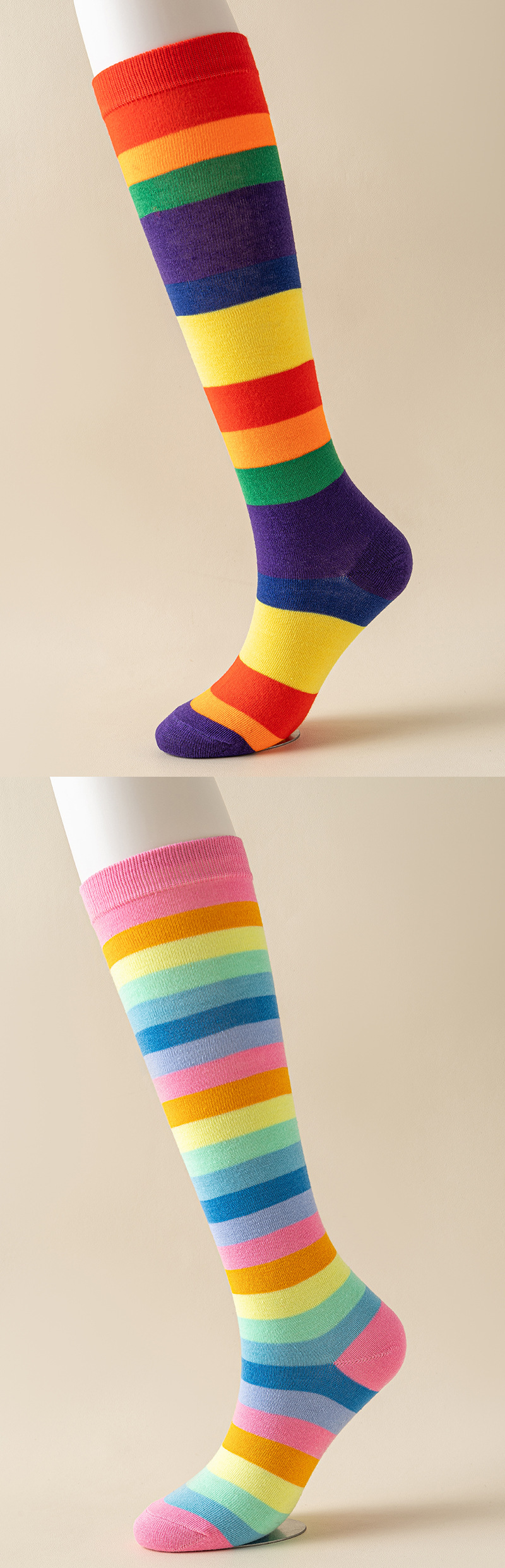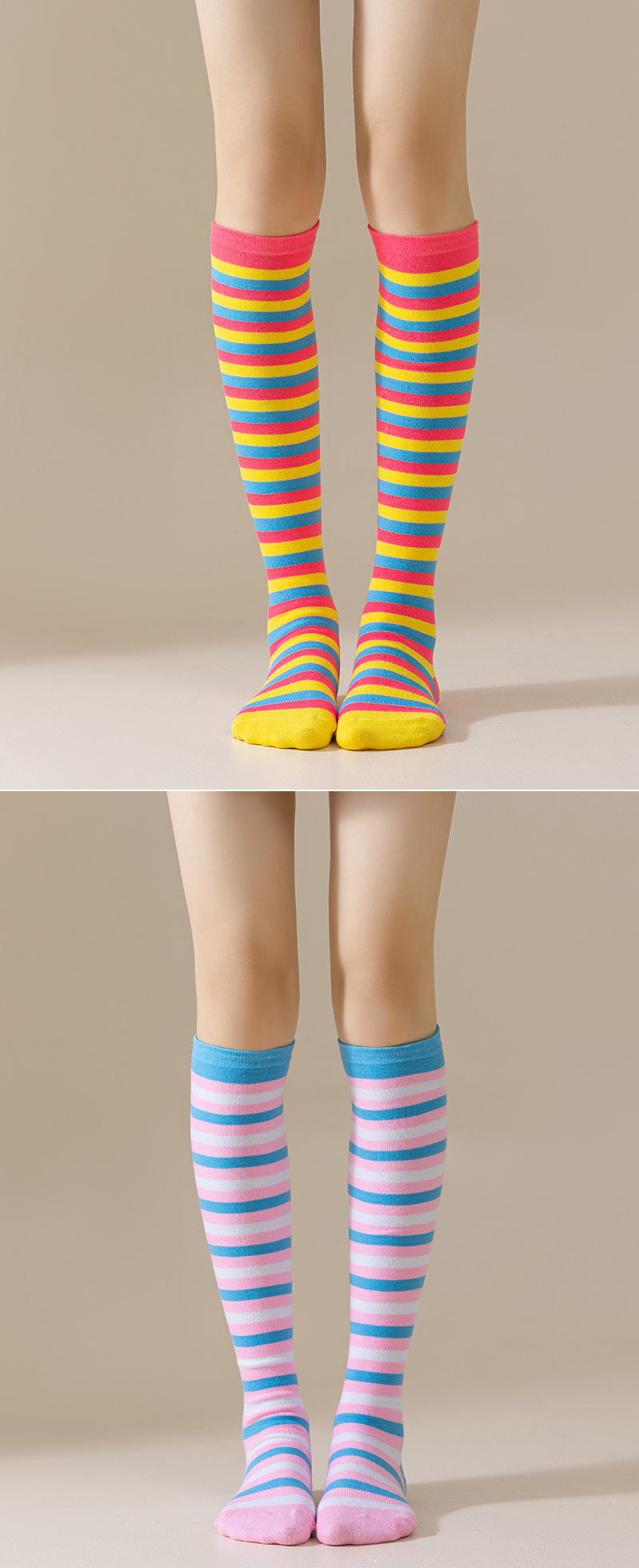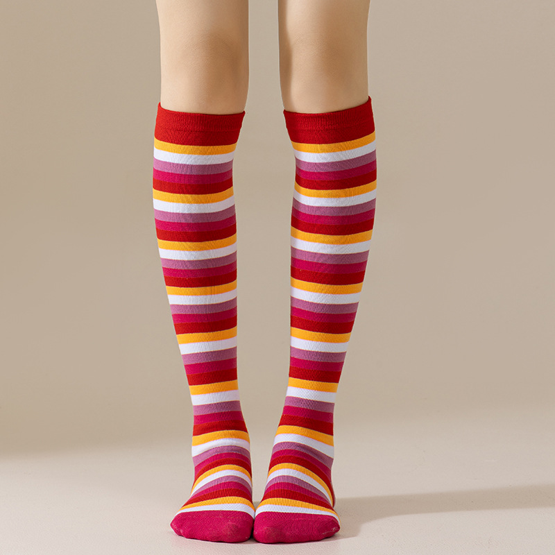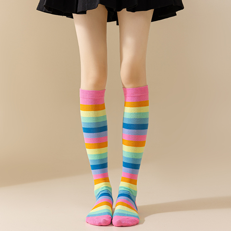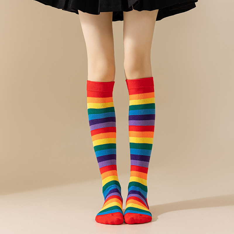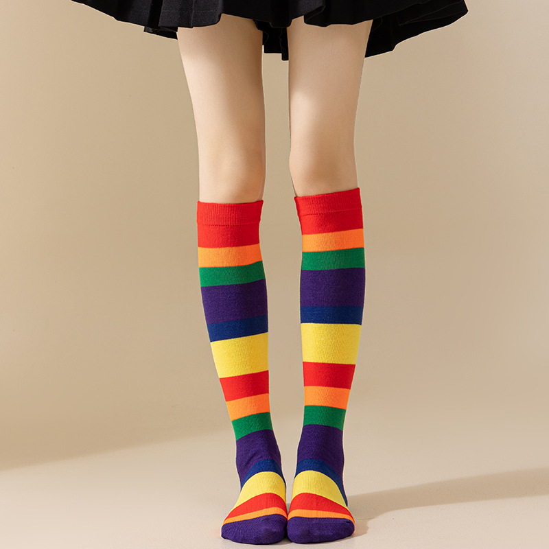 국경 간 무지개 줄무늬 유럽과 미국 양말 여자 긴 배럴 파티 공연 할로윈 코스프레 신 다리 양말스토어 가기