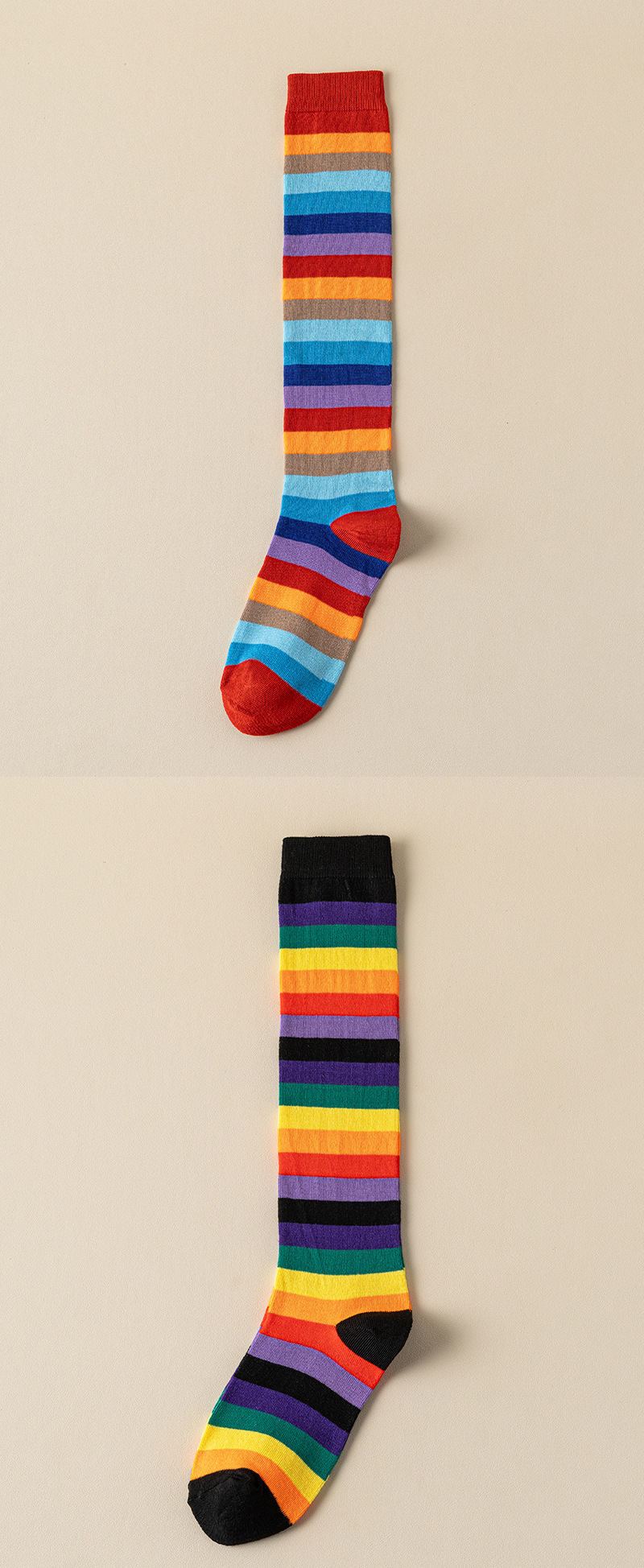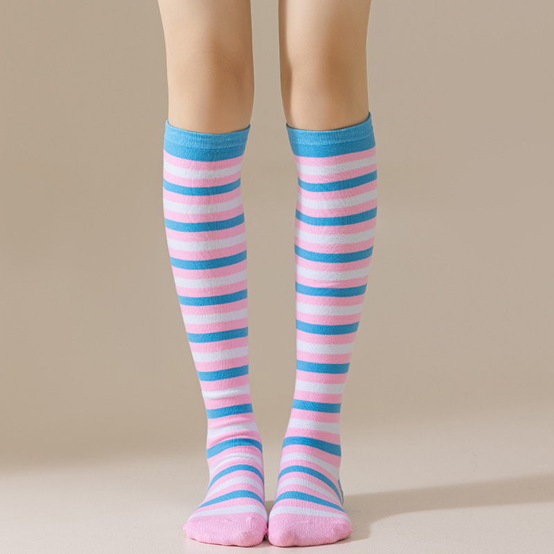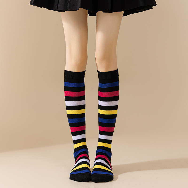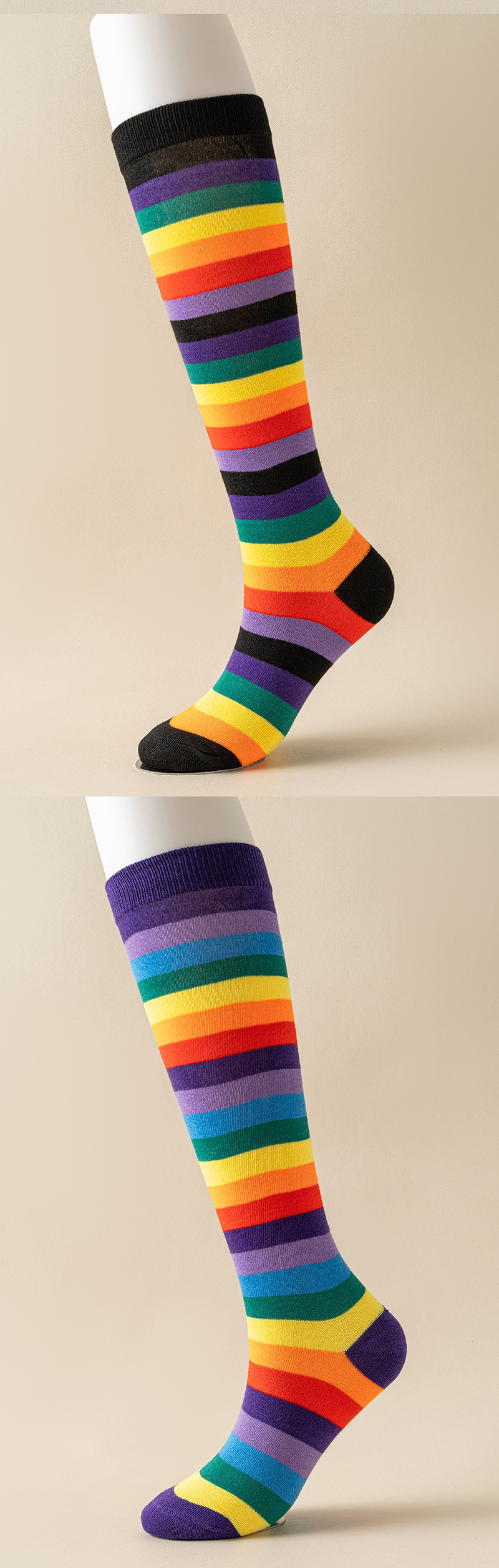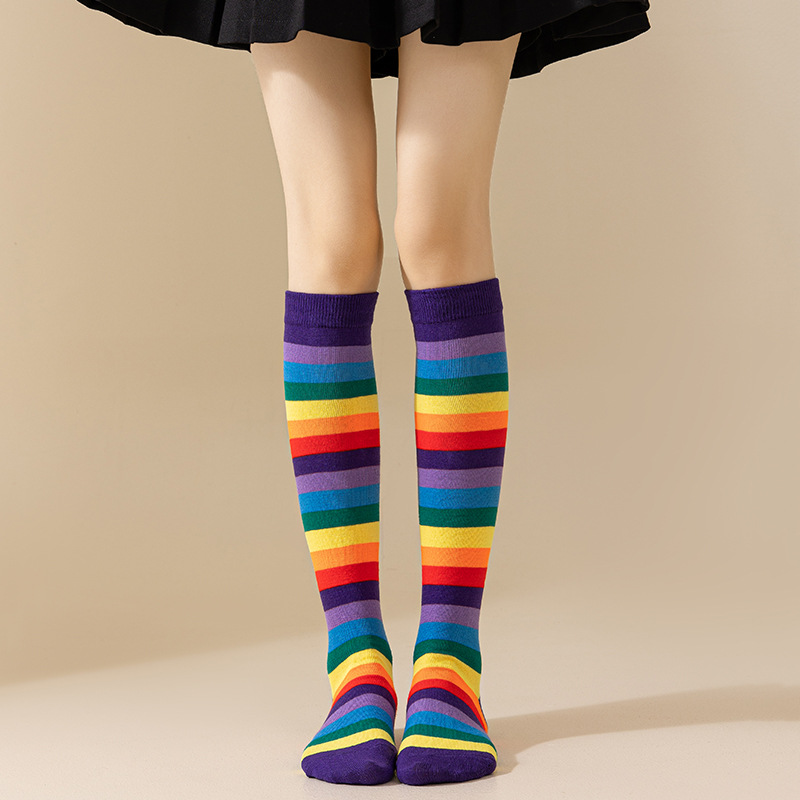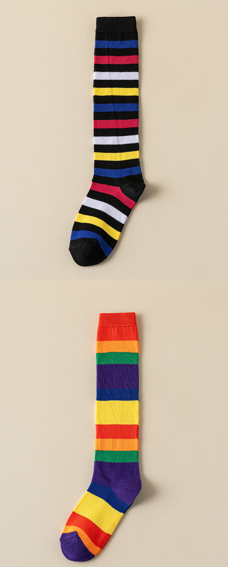 국경 간 무지개 줄무늬 유럽과 미국 양말 여자 긴 배럴 파티 공연 할로윈 코스프레 신 다리 양말스토어 가기